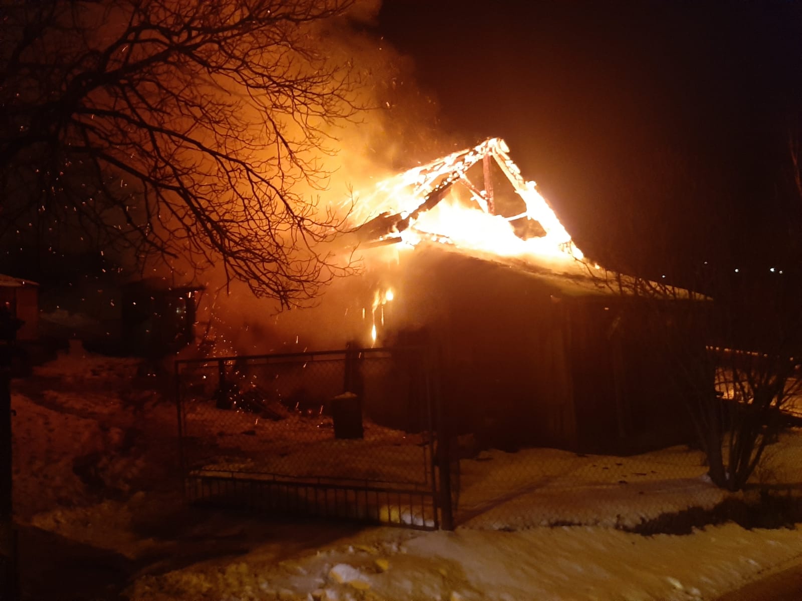 16 lutego około godziny 18.39 zastępy z JRG nr 1 w Nowym Sączu oraz OSP Mystków zadysponowane zostały do działań w Nowym Sączu na ulicy Lipowej. Po przybyciu na miejsce zdarzenia ustalono, że palił się drewniany budynek gospodarczy wraz z przyległym blaszanym garażem. Budynek objęty był pożarem w całej swojej objętości. W odległości około 10 m od palącego się obiektu znajdował się budynek mieszkalny. Działania strażaków polegały na zabezpieczeniu miejsca zdarzenia oraz podaniu prądów wody na palący się budynek. Stworzono zasilanie wodne z hydrantu znajdującego się w odległości około 150m od miejsca zdarzenia. Dodatkowo zadysponowano na miejsce pożaru cysternę z JRG nr 1 Nowy Sącz. Po przygaszeniu płomieni przystąpiono do rozbiórki budynku oraz wynoszenia zalegającego w środku siana. Obecny na miejscu właściciel poinformował o możliwości sprowadzenia na miejsca zdarzenia koparki w celu pomocy przy rozbiórce. Po przybyciu koparki dokonano całkowitej rozbiórki budynku oraz dokładnie przelano wszystkie elementy. Działania strażaków trwały cztery godziny. Przyczyna pożaru jest nieustalona.