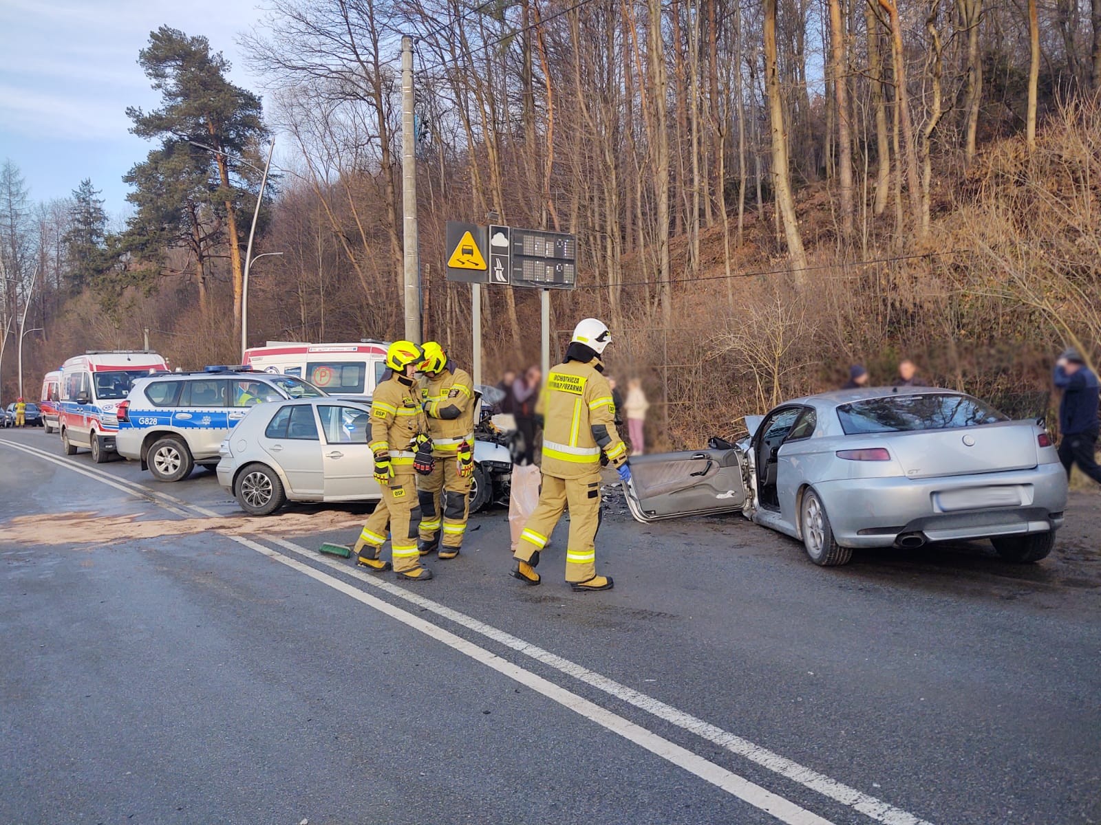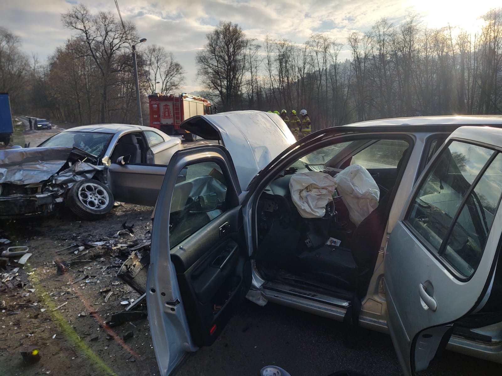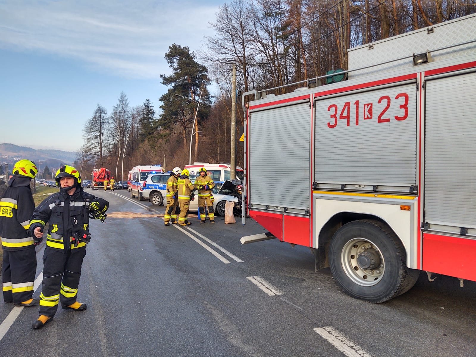 30 grudnia o godzinie 13.20 zastępy z JRG nr 1 w Nowym Sączu, OSP Paszyn oraz OSP Mystków zadysponowane zostały do działań w Nowym Sączu na ulicę Lwowską. Po przybyciu na miejsce zdarzenia stwierdzono, doszło do zderzenia trzech samochodów osobowych, którymi podróżowało łącznie sześć osób. Dwie osoby pozostawały w samochodach. Ruch na drodze krajowej był całkowicie wstrzymany. Na miejscu zdarzenia była Policja oraz karetka Pogotowia ratunkowego. Zanim dotarły kolejne karetki strażacy udzielili pomocy jednej osobie poszkodowanej. Cztery osoby poszkodowane zostały zabrane do szpitala.