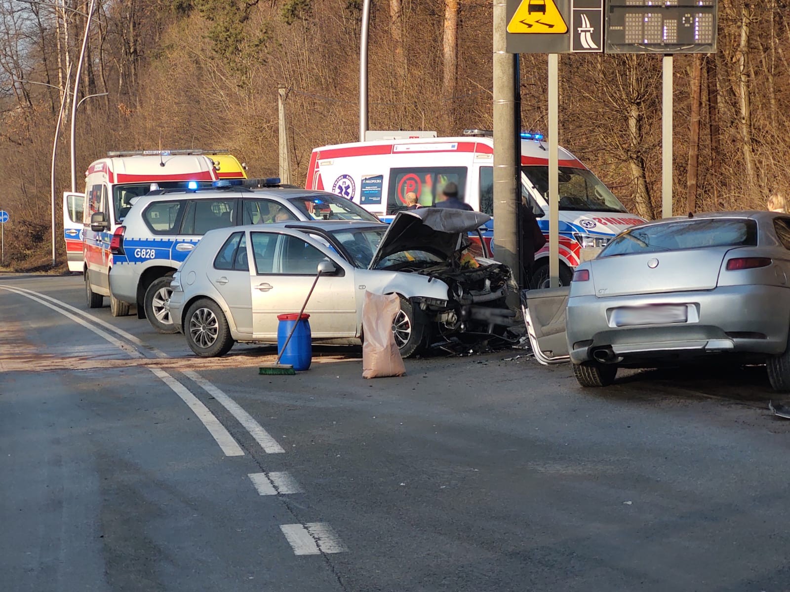 Nowy Sącz, ul Lwowska- zderzenie trzech samochodów osobowych