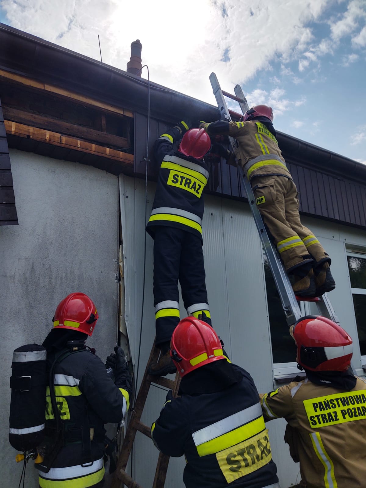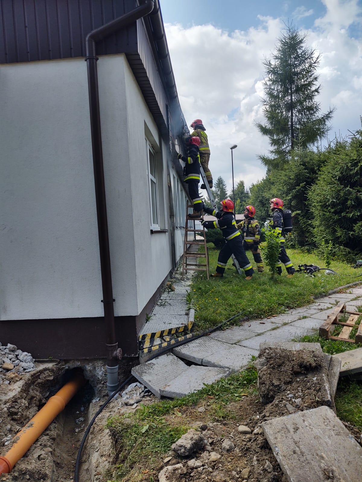 22 lipca o godzinie 9.44 zastępy z JRG nr 1 w Nowym Sączu zadysponowane zostały do działań w Nowym Sączu na ulice Magazynową. Po przybyciu na miejsce zdarzenia ustalono, że w budynku Zespołu Szkół Specjalistycznych nr 5 doszło do zapalenia się konstrukcji szkieletowej budynku. Pożar został wstępnie przygaszony gaśnicą proszkową przez pracowników budowy. W budynku nie odbywały się żadne zajęcia dydaktyczne i nie znajdowały się żadne osoby. Działania zastępów PSP polegały na zabezpieczeniu miejsca zdarzenia, podaniu jednego prądu gaśniczego wody, wykonaniu prac rozbiórkowych, usunięciu nadpalonych elementów konstrukcyjnych oraz usunięciu ocieplenia. Usunięte elementy oraz konstrukcje ponownie przelano wodą i sprawdzono kamerą termowizyjna, która nie wskazała zarzewi ognia. Przewietrzono wszystkie pomieszczenia, a następnie sprawdzono je miernikiem wielogazowym - urządzenie nie wskazało nieprawidłowości. Działania strażaków trwały ponad godzinę. Prawdopodobną przyczyną powstania pożaru była nieostrożność osób dorosłych przy prowadzeniu prac pożarowo-niebezpiecznych.