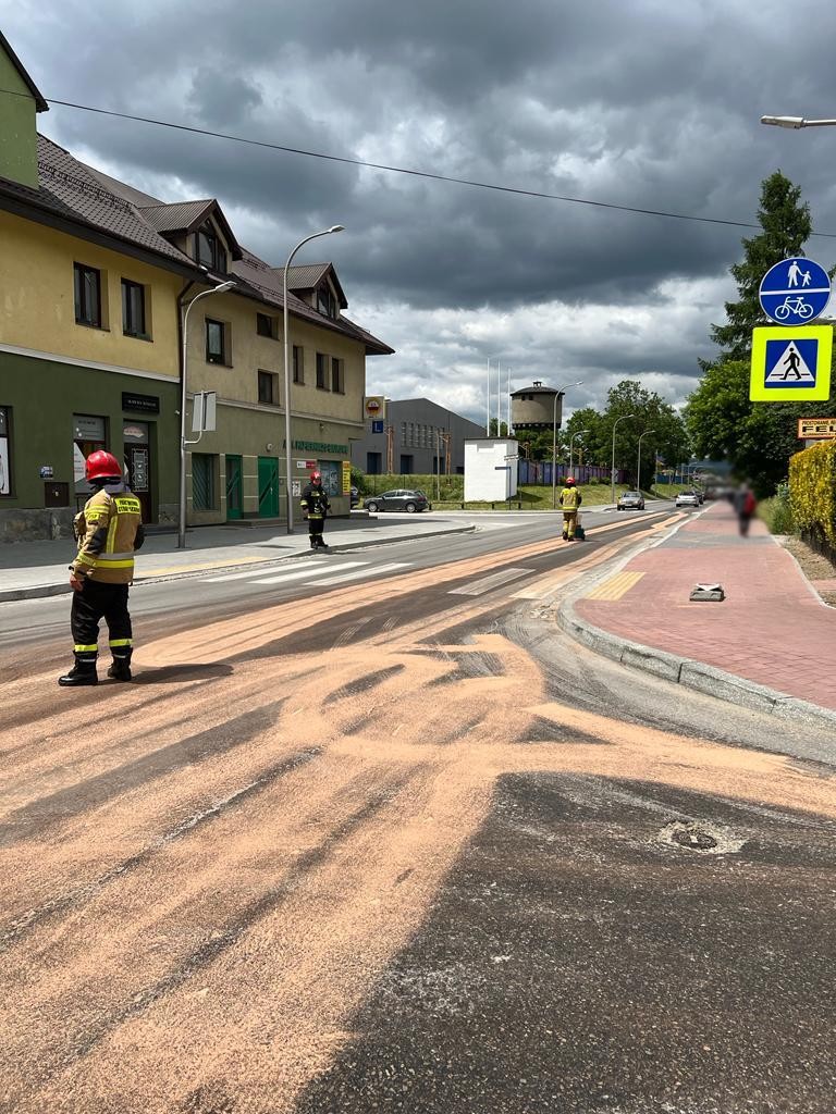 12 czerwca o godzinie 12.31 zastępy z JRG nr 1 w Nowym Sączu oraz OSP Biegonice zadysponowane zostały do działań na ulicę Nawojowską w Nowym Sączu. Po przybyciu na miejsce zdarzenia ustalono, że na ulicy Nawojowskiej na jezdni rozlane były płyny eksploatacyjne. Plama była długości około 2000 m i szerokości 2 m. Działania strażaków polegały na zabezpieczeniu miejsca zdarzenia, kierowaniu ruchem wahadłowo oraz zasypaniu plamy sorbentem. Działania strażaków trwały prawie półtorej godziny.