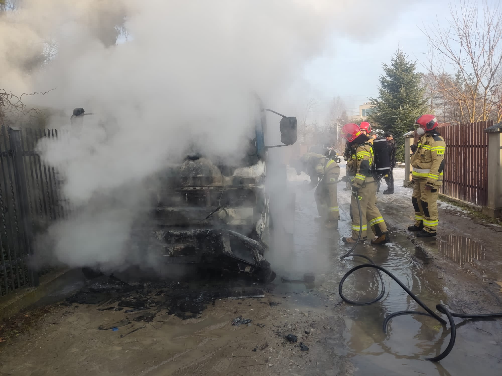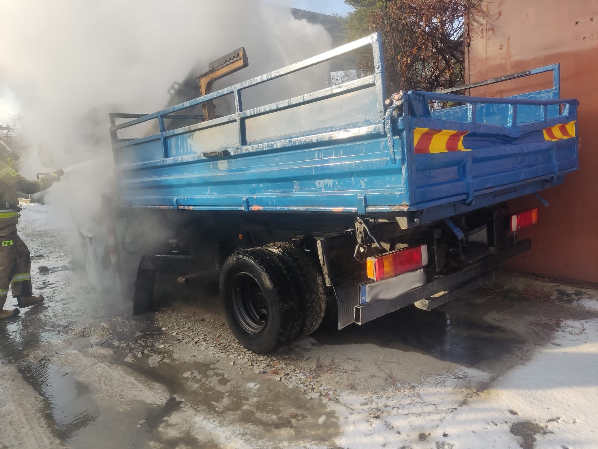 Nowy Sącz, ul. Nawojowska - pożar samochodu ciężarowego