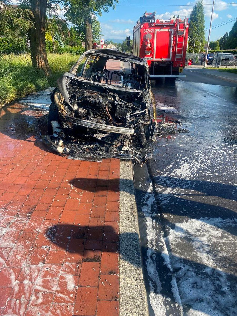 Nowy Sącz, ul. Nawojowska - pożar samochodu osobowego