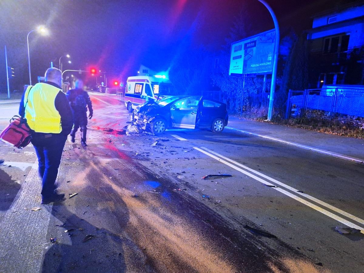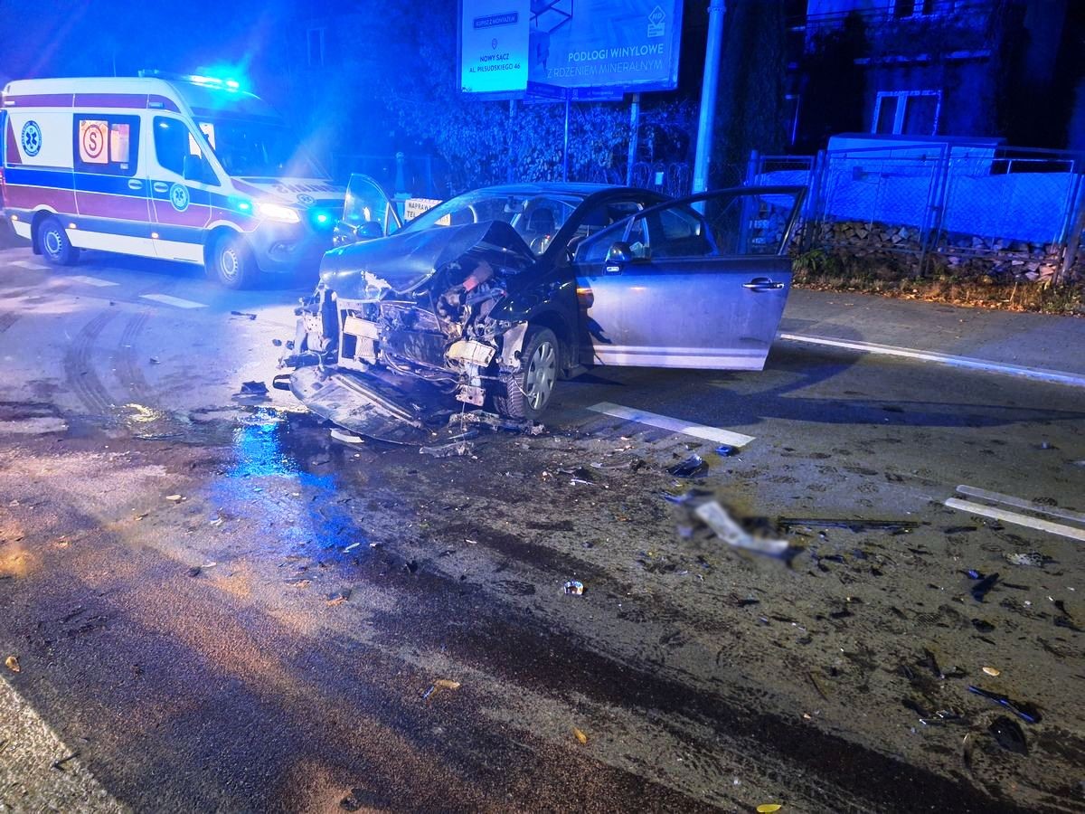 Nowy Sącz, ul. Nawojowska - zderzenie dwóch samochodów osobowych