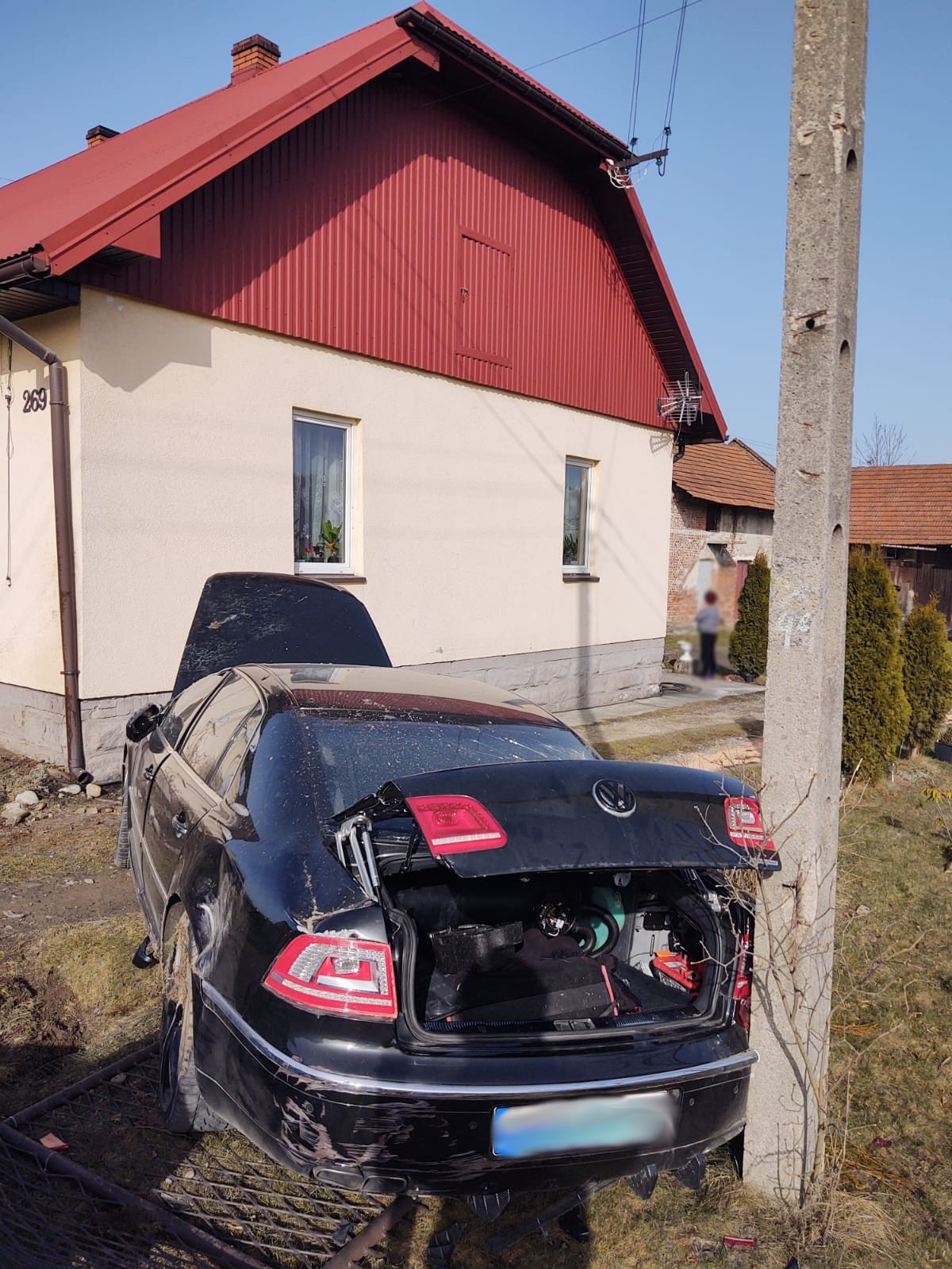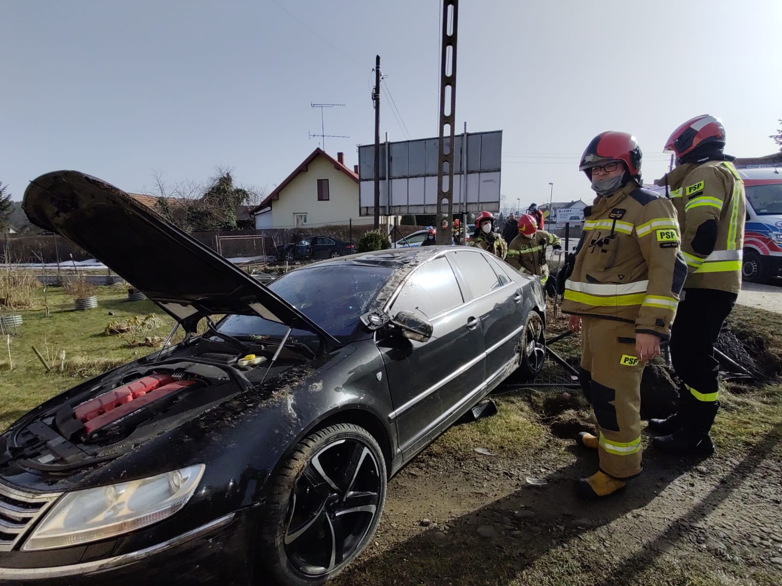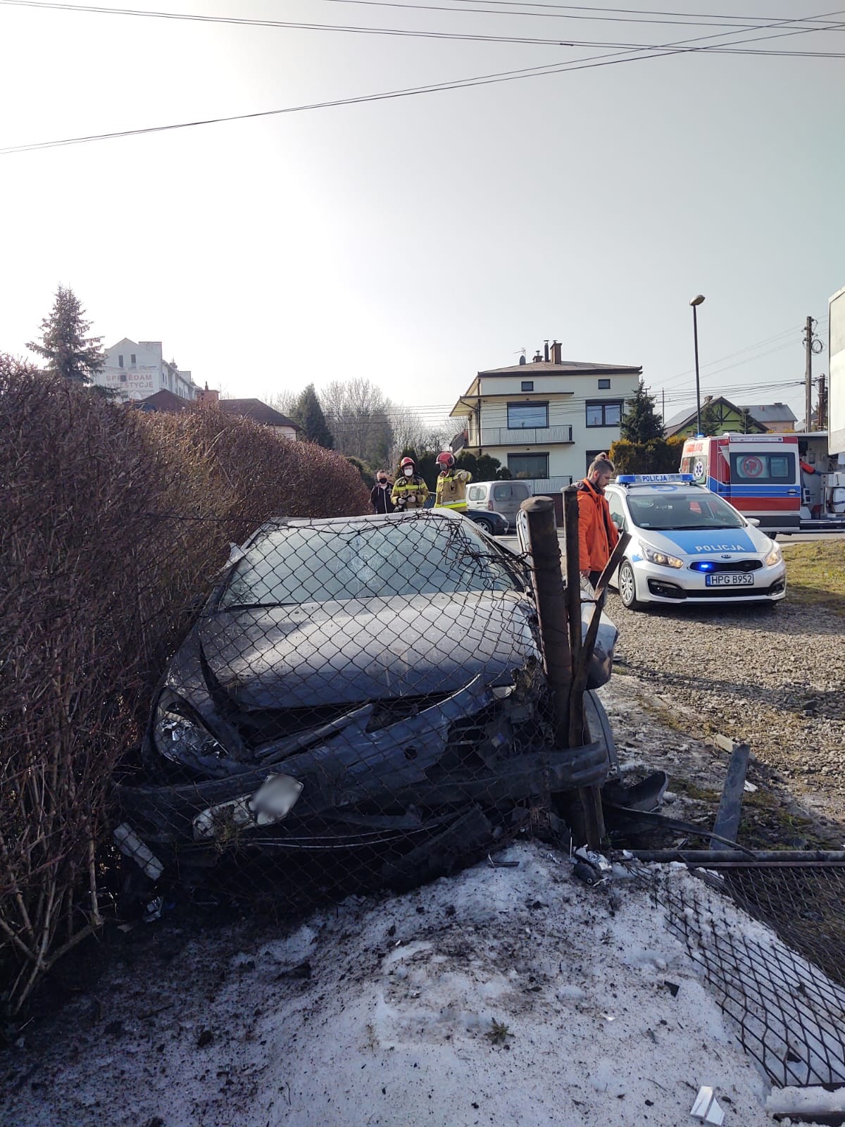 25 lutego około godziny 13.04 zastępy z JRG nr 1 w Nowym Sączu zadysponowane zostały do działań w Nowym Sączu na ulicę Nawojowską. Po przybyciu na miejsce zdarzenia ustalono że doszło do zderzenia dwóch pojazdów marki VW Python oraz Peugeot 607. VW wypadł z drogi i znajdował się na posesji uderzając przy tym w ogrodzenie posesji, pokrywę studni oraz słup energetyczny. Peugeot wypadł z drogi i znajdował się na drodze wjazdowej do firmy uszkadzając bramę wjazdową ogrodzenie firmy oraz uszkodził również elewację budynku. Na miejscu była karetka Pogotowia Ratunkowego. Samochodami podróżowali sami kierujący, którzy opuścili pojazdy o własnych siłach. Jeden z nich znajdował się w karetce Pogotowia ratunkowego. Obydwa pojazdy wyposażone były w instalacje LPG. Z jednego pojazdu wylały się płyny eksploatacyjne. Działania zastępów straży polegały na zabezpieczeniu miejsca zdarzenia, odłączeniu akumulatorów w pojazdach, zakręceniu butli LPG w pojeździe Peugeot, użyciu nożyc hydraulicznych do otworzenia bagażnika w celu zakręcenia butli LPG oraz wykonaniu sorpcji płynów eksploatacyjnych. Jeden z kierujących zabrany został do szpitala.