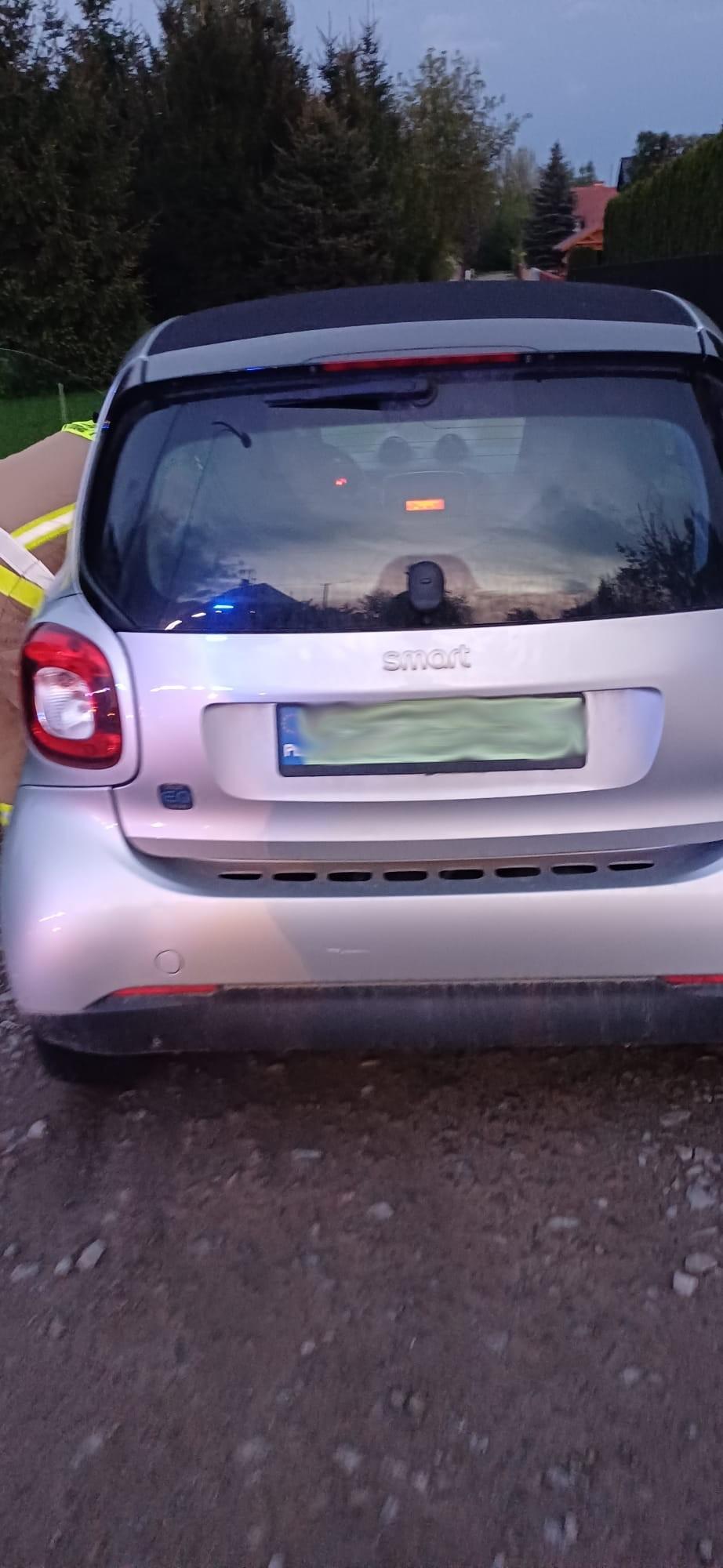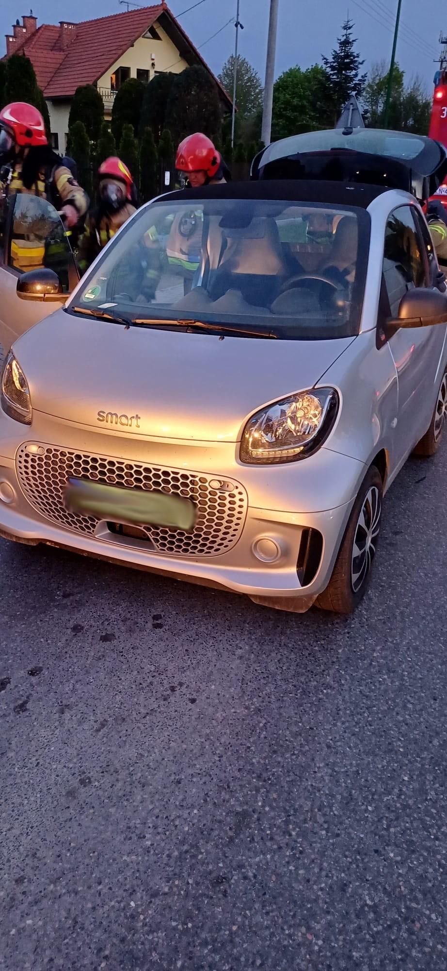 Nowy Sącz, ul. Papieska- zadymienie w samochodzie elektrycznym