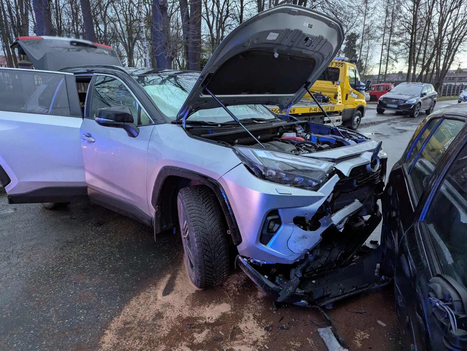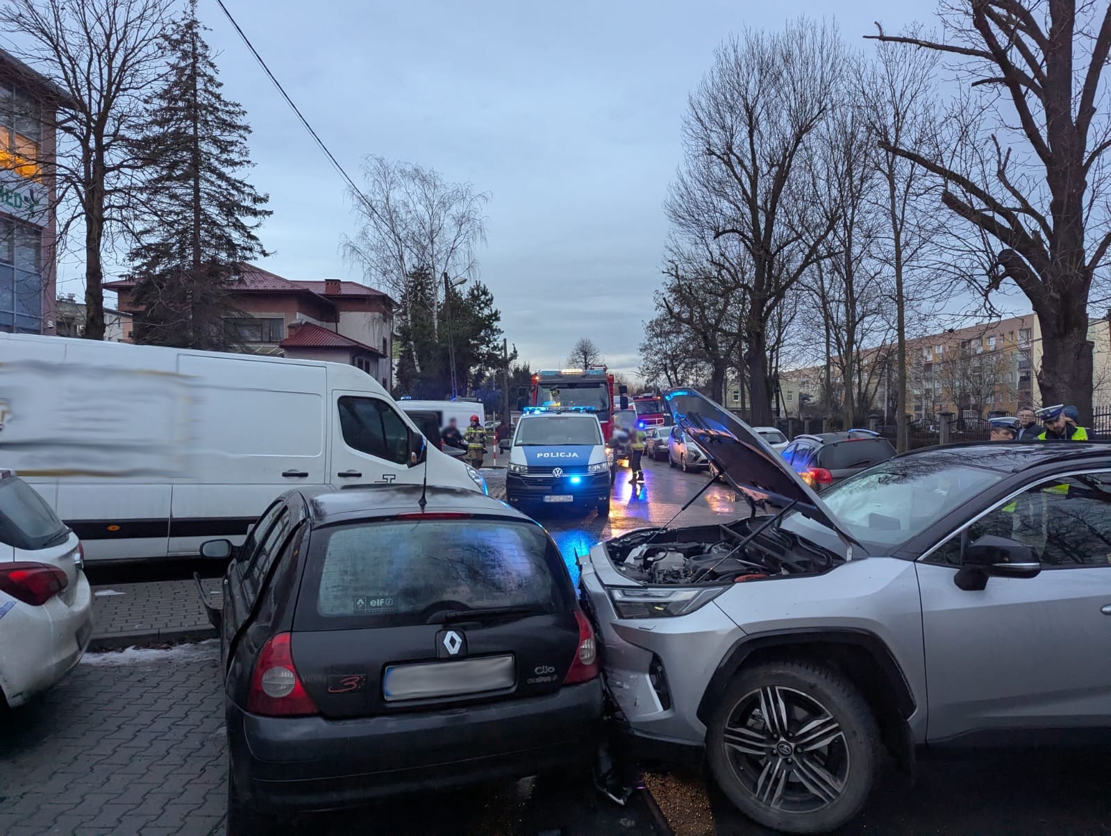 9 stycznia o godzinie 7.20 zastępy z JRG nr 1 i 2 w Nowym Sączu zadysponowane zostały do działań w Nowym Sączu na ulicę Poniatowskiego. Po przybyciu na miejsce zdarzenia ustalono, że doszło do zderzenia dwóch pojazdów. W zdarzeniu udział brały trzy osoby. Dwóm osobom pomocy udzielali ratownicy Pogotowia Ratunkowego. Ulica była zablokowana przez pojazdy uczestniczące w zdarzeniu. Działania zastępów straży polegały na zabezpieczeniu miejsca zdarzenia, rozłączeniu akumulatora w samochodzie Renault oraz posypaniu sorbentem wyciekłych płynów eksploatacyjnych. Dokonano rozłączenia akumulatora hybrydowego w samochodzie Toyota oraz akumulatora standardowego pojazdu. Jedna osoba została przewieziona do szpitala. Dalsze działania strażaków polegały na sprawdzeniu kamerą termowizyjną elementów przylegających do baterii trakcyjnej. Usunięto pojazdy na parking w celu udrożnienia drogi oraz usunięto pozostałości po kolizji. Działania strażaków trwały ponad półtorej godziny.