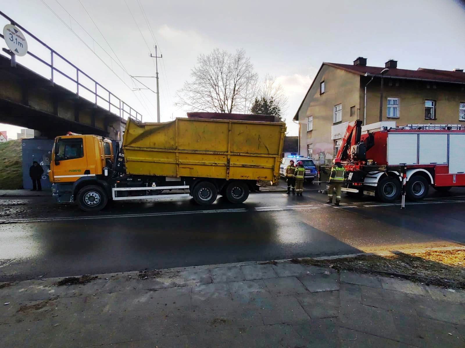 Nowy Sącz, ul. św. Kunegundy samochód ciężarowy nie zmieścił się pod wiaduktem
