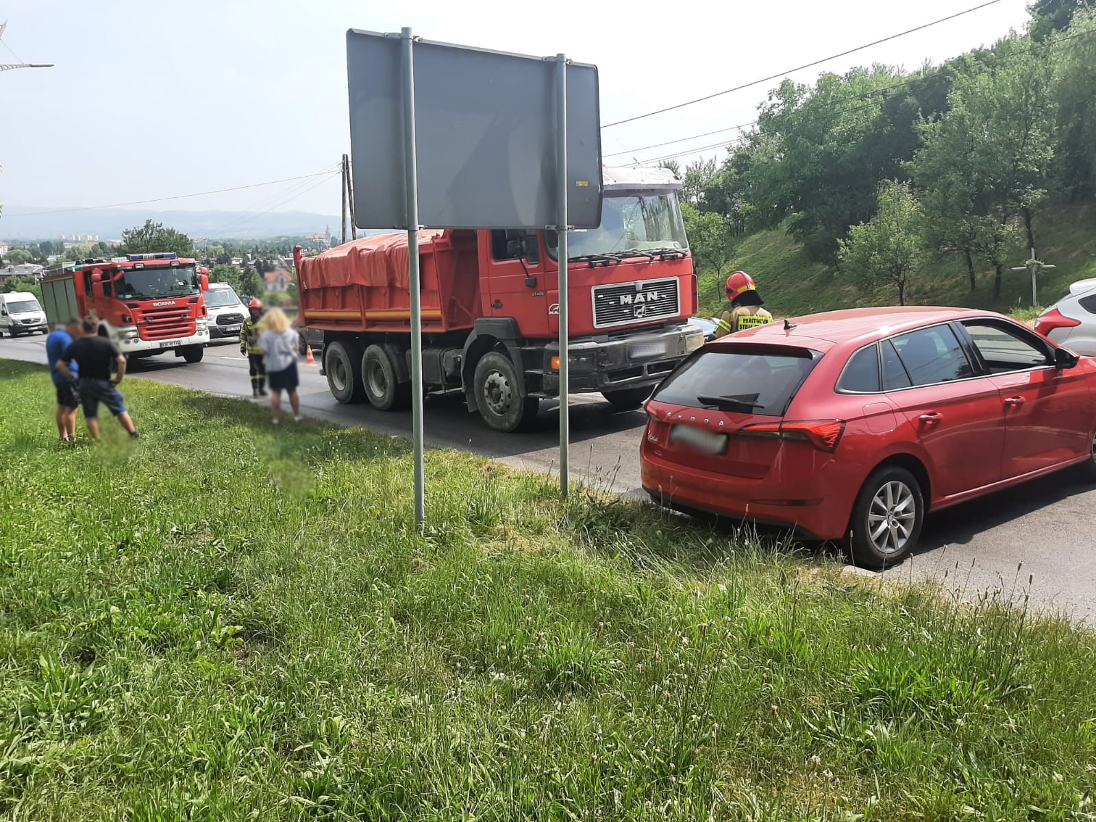 22 czerwca o godzinie 16.34 zastępy z JRG nr 1 w Nowym Sączu zadysponowane zostały do działań w Nowym Sączu na ulicę Tarnowską. Po przybyciu na miejsce zdarzenia stwierdzono, że doszło do zderzenia samochodu osobowego Skoda z samochodem ciężarowym MAN. Samochodami podróżowali sami kierujący, którzy o własnych siłach opuścili pojazdy i nie uskarżali się na żadne dolegliwości. Jeden pas drogi był zablokowany. Ruch odbywał się z wykorzystaniem pasa do włączania się do ruchu. Działania zastępów straży polegały na zabezpieczeniu miejsca zdarzenia. Po przybyciu Policji pojazdy zjechały na pobliską zatoczkę autobusową gdzie Policja kontynuowała czynności wyjaśniające okoliczności zdarzenia.