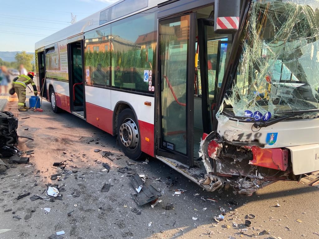 Nowy Sącz, ul. Węgierska - zderzenie samochodu osobowego oraz autobusu