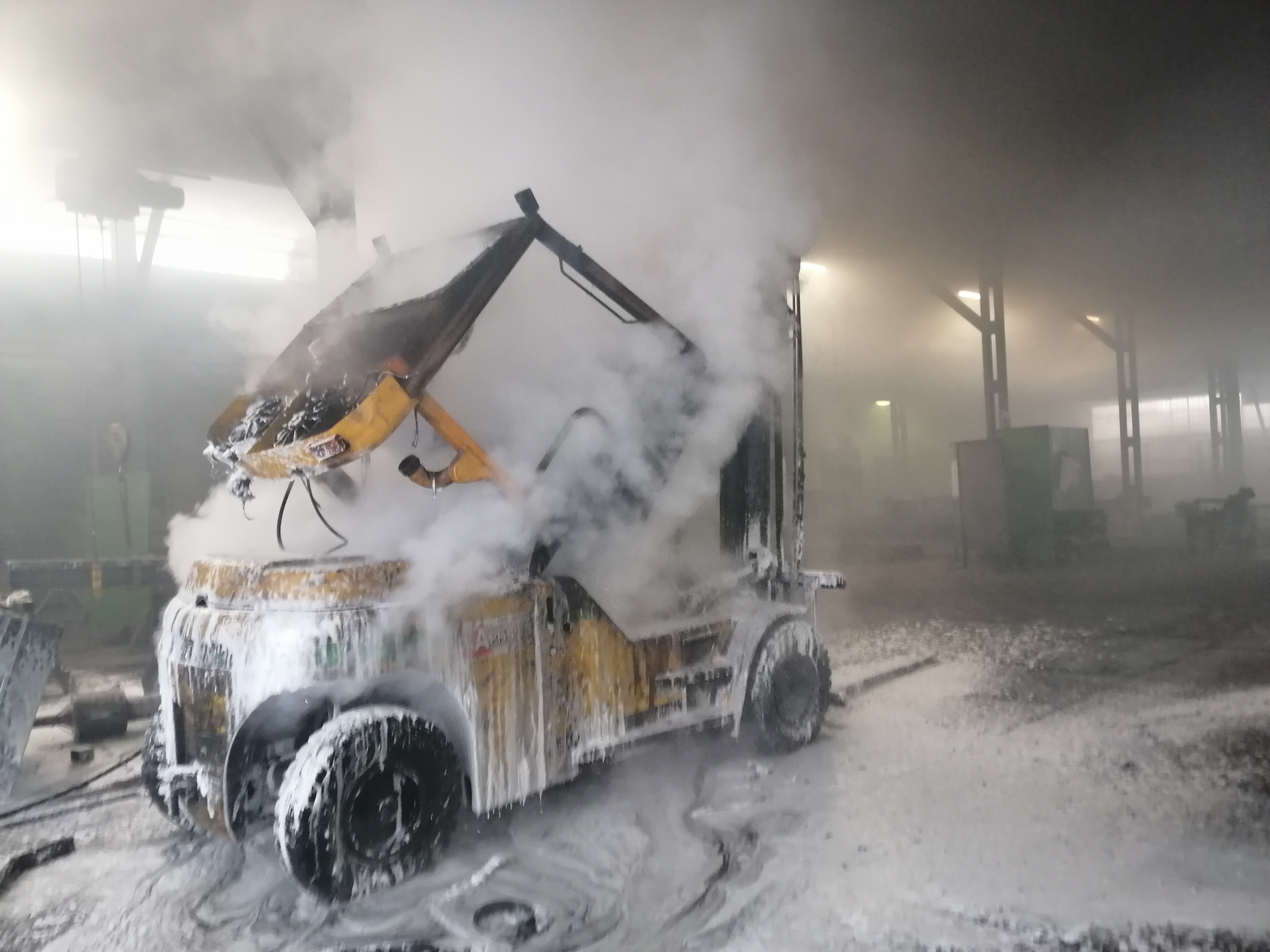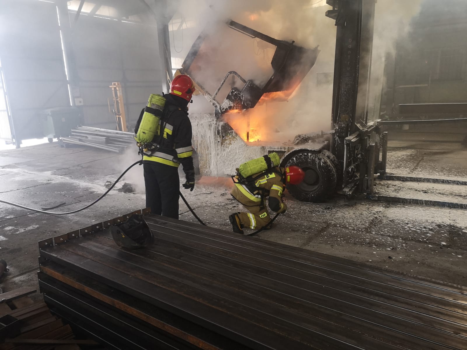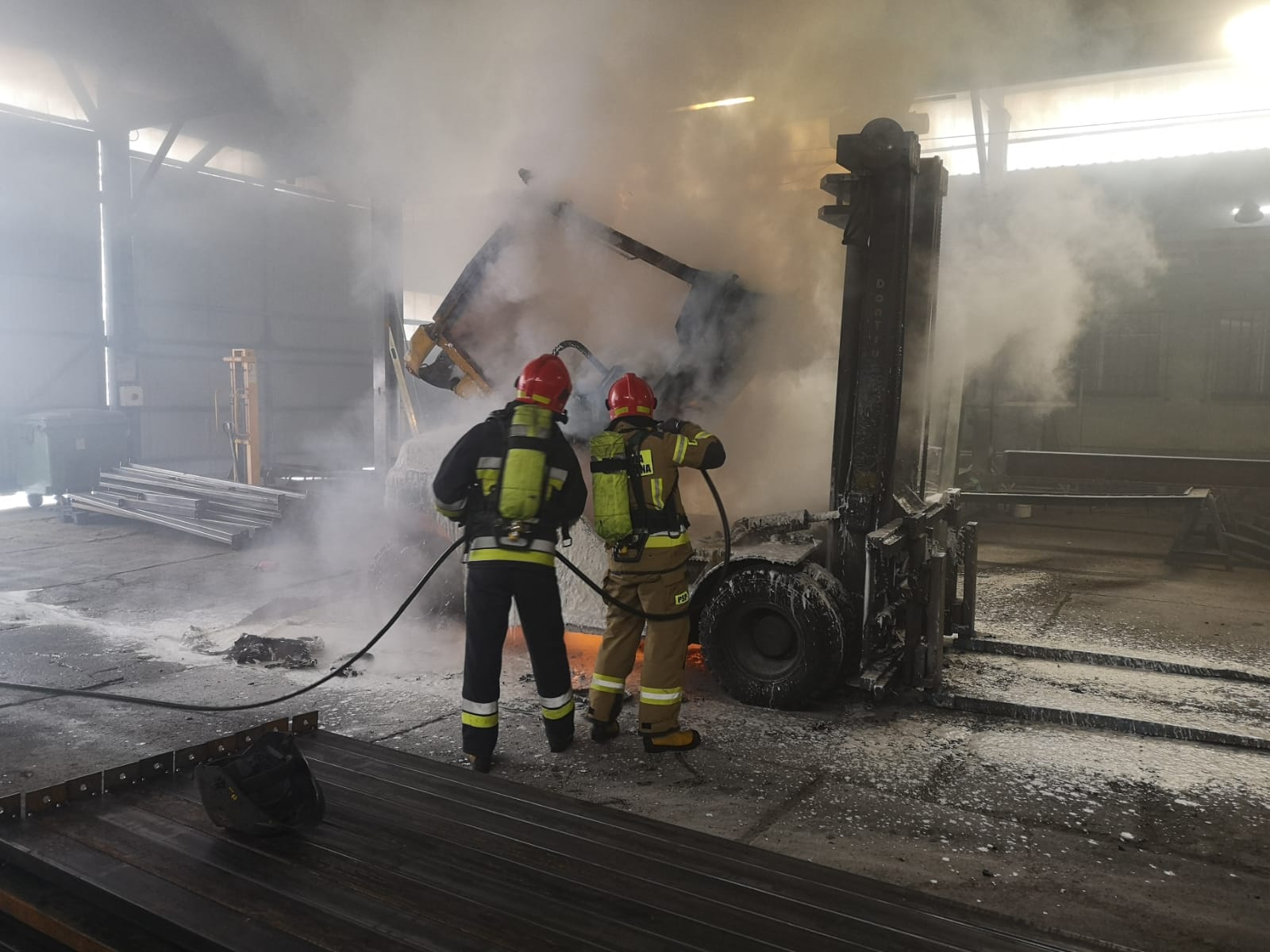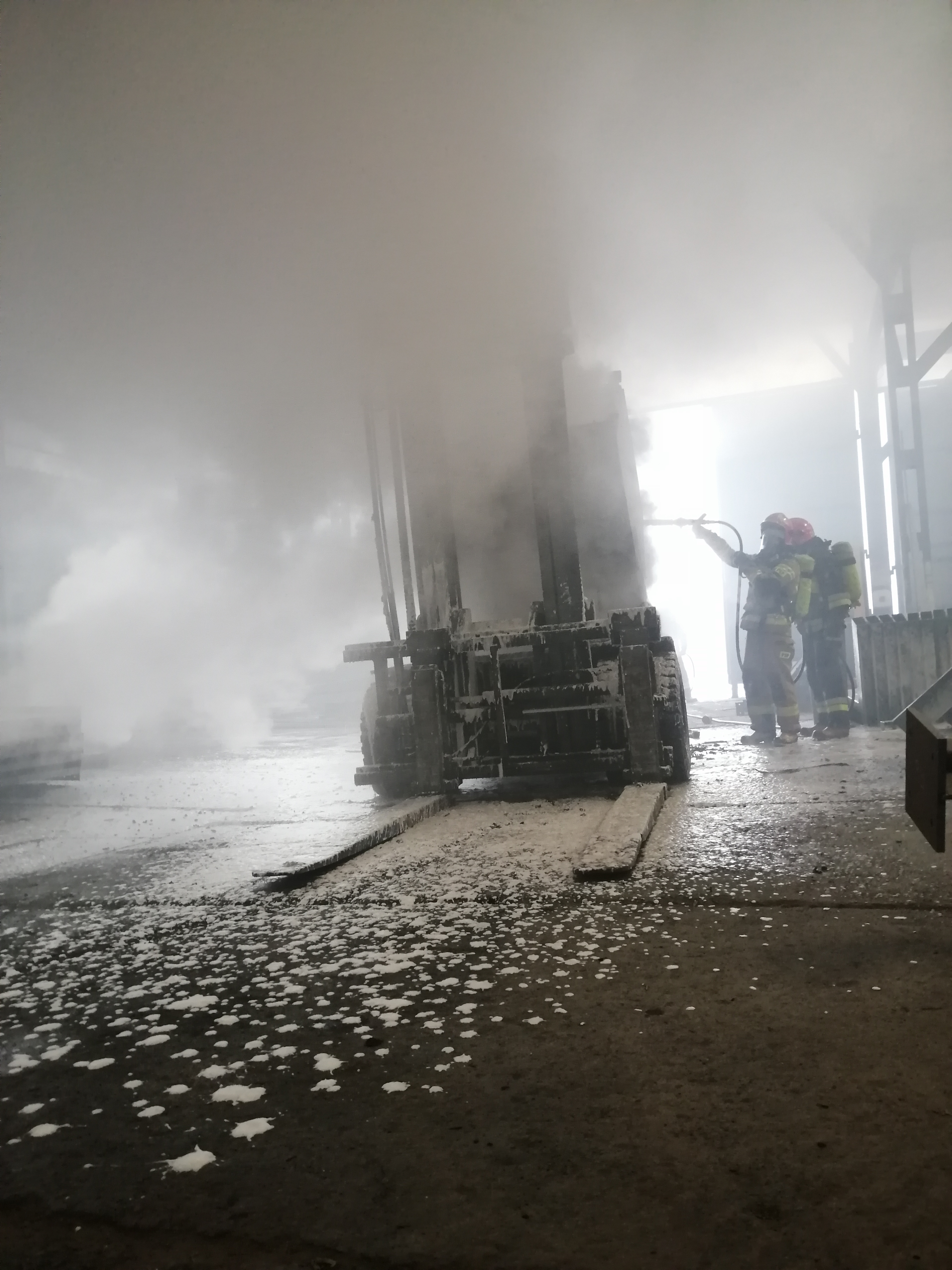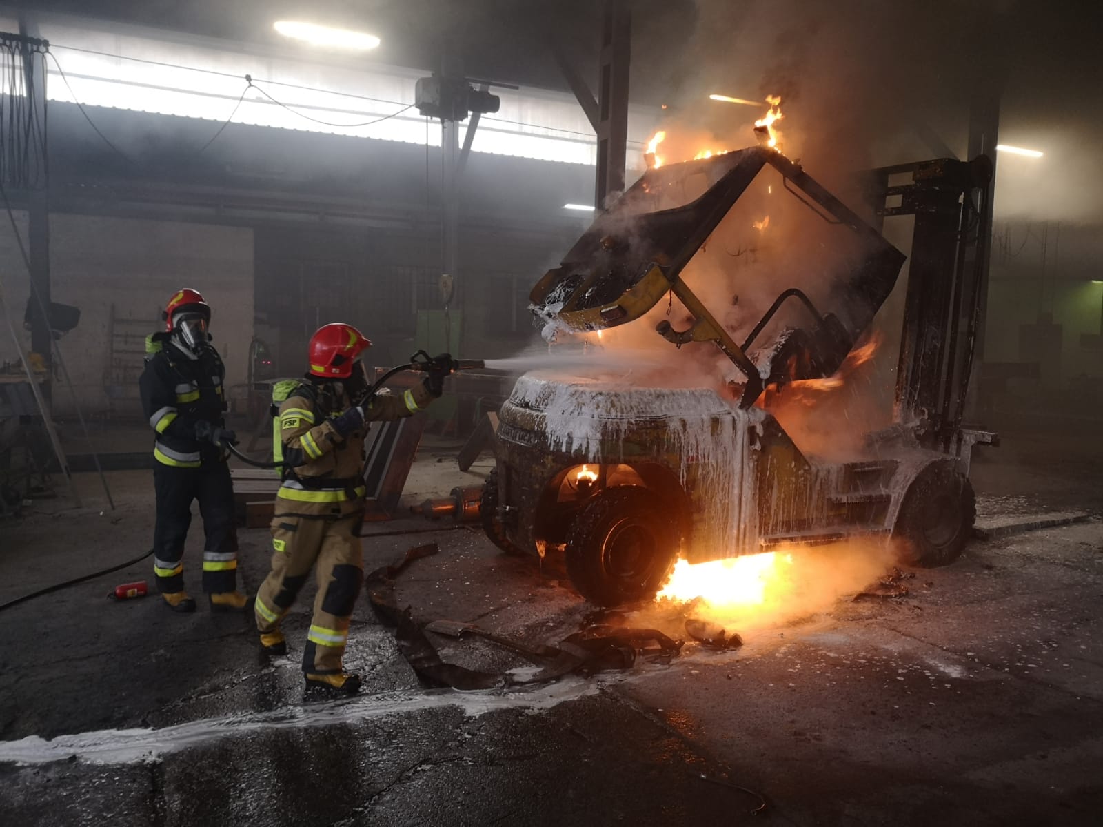 Nowy Sącz, ul. Węgierska- pożar wózka widłowego na hali