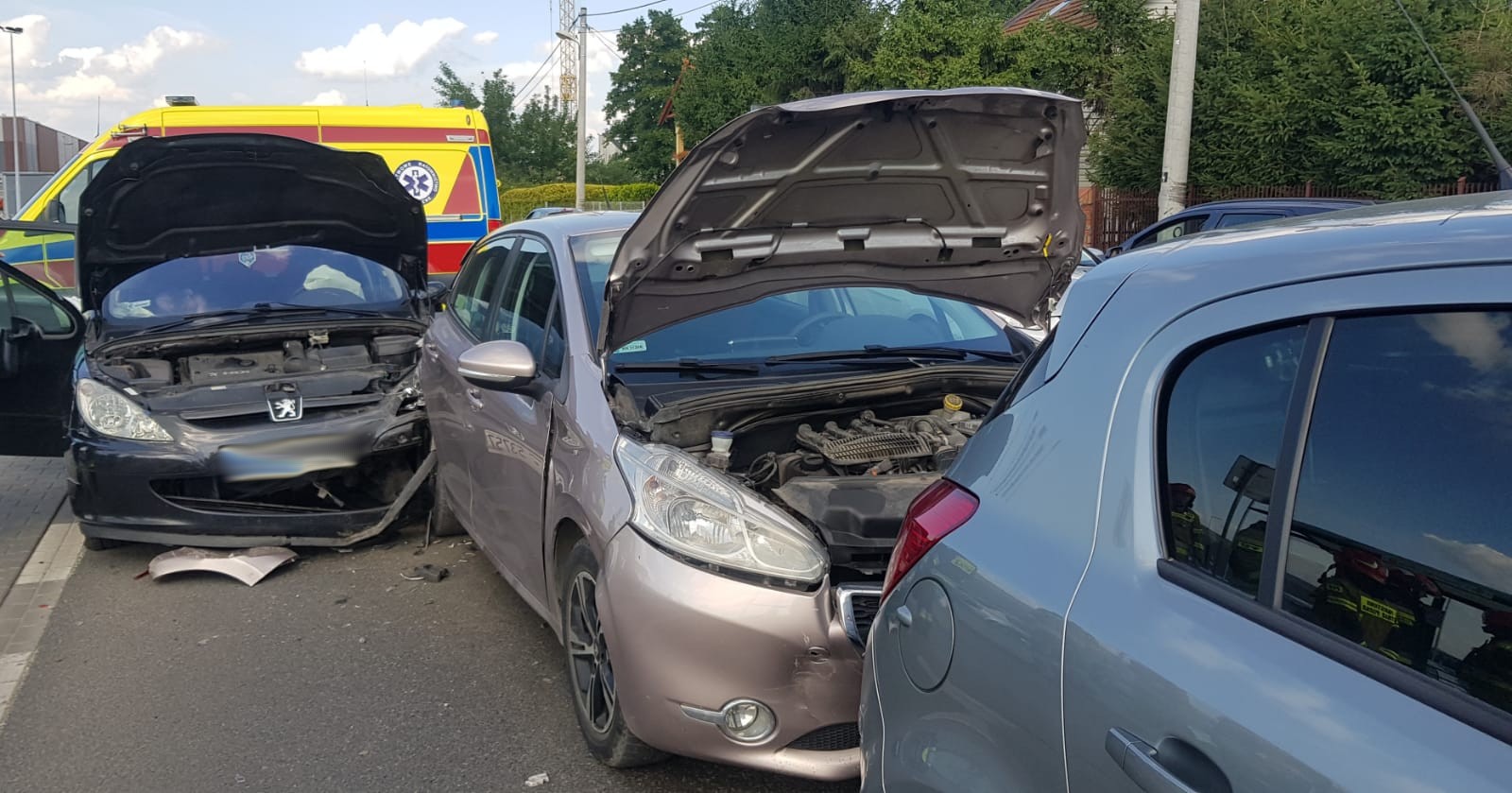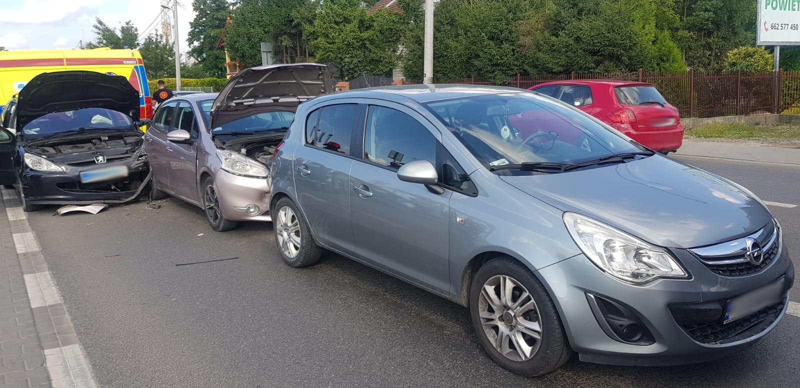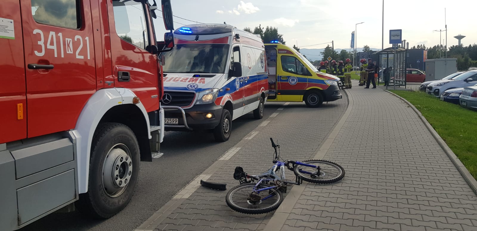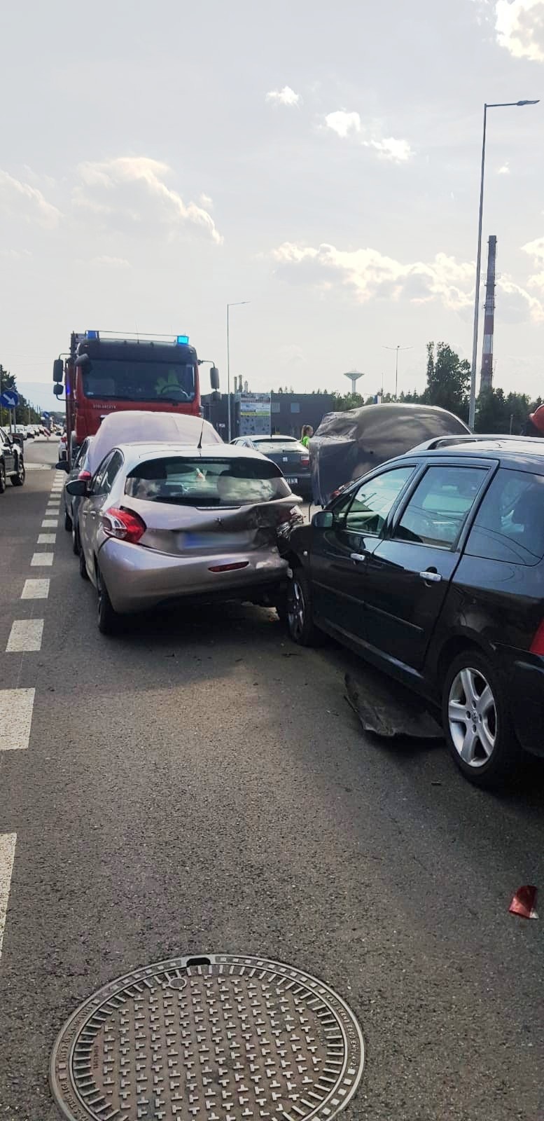 Nowy Sącz, ul. Węgierska- zderzenia czterech pojazdów i rowerzysty