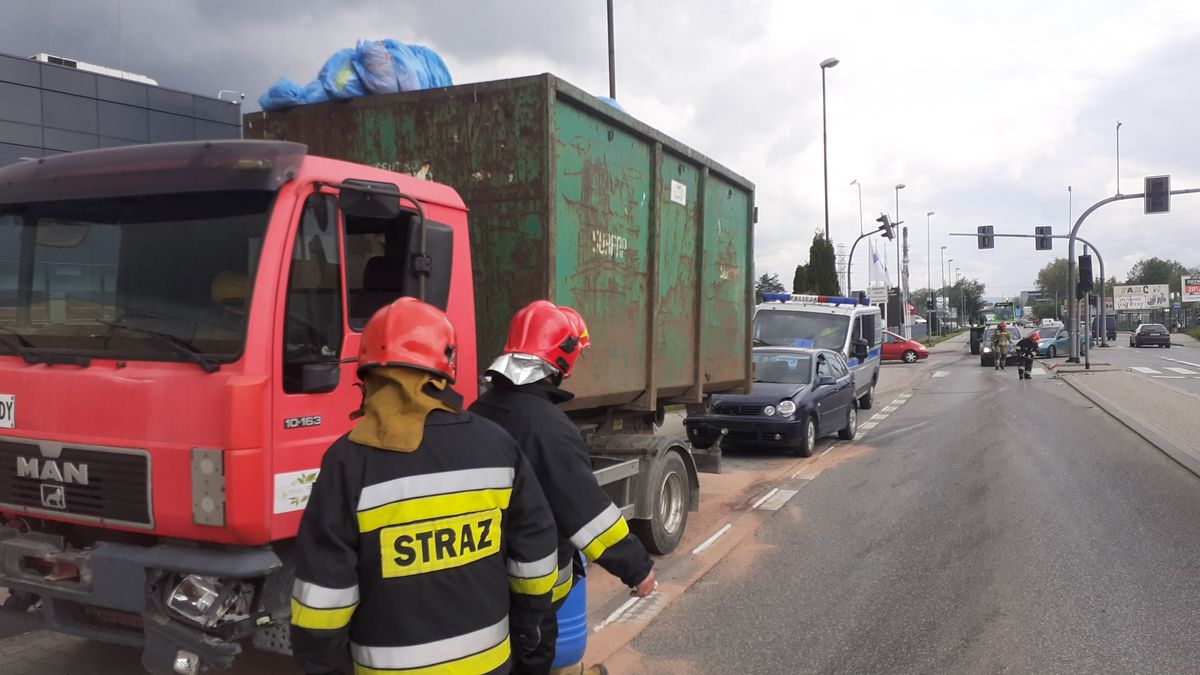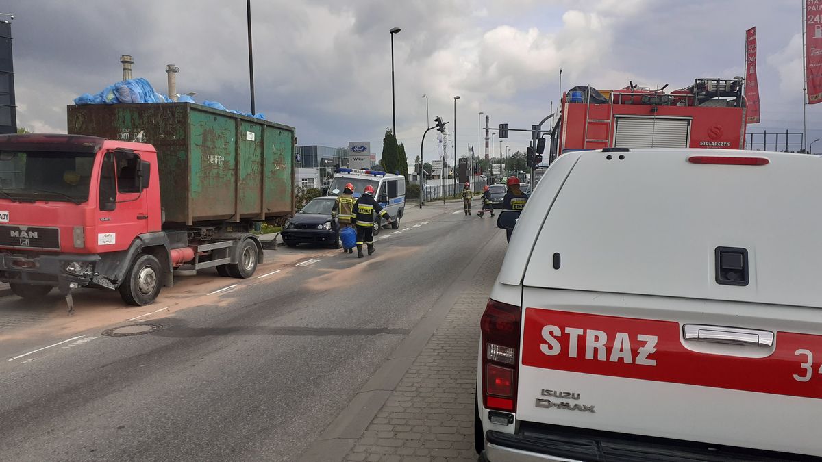 Nowy Sącz, ul. Węgierska- zderzenie samochodu osobowego i ciężarowego