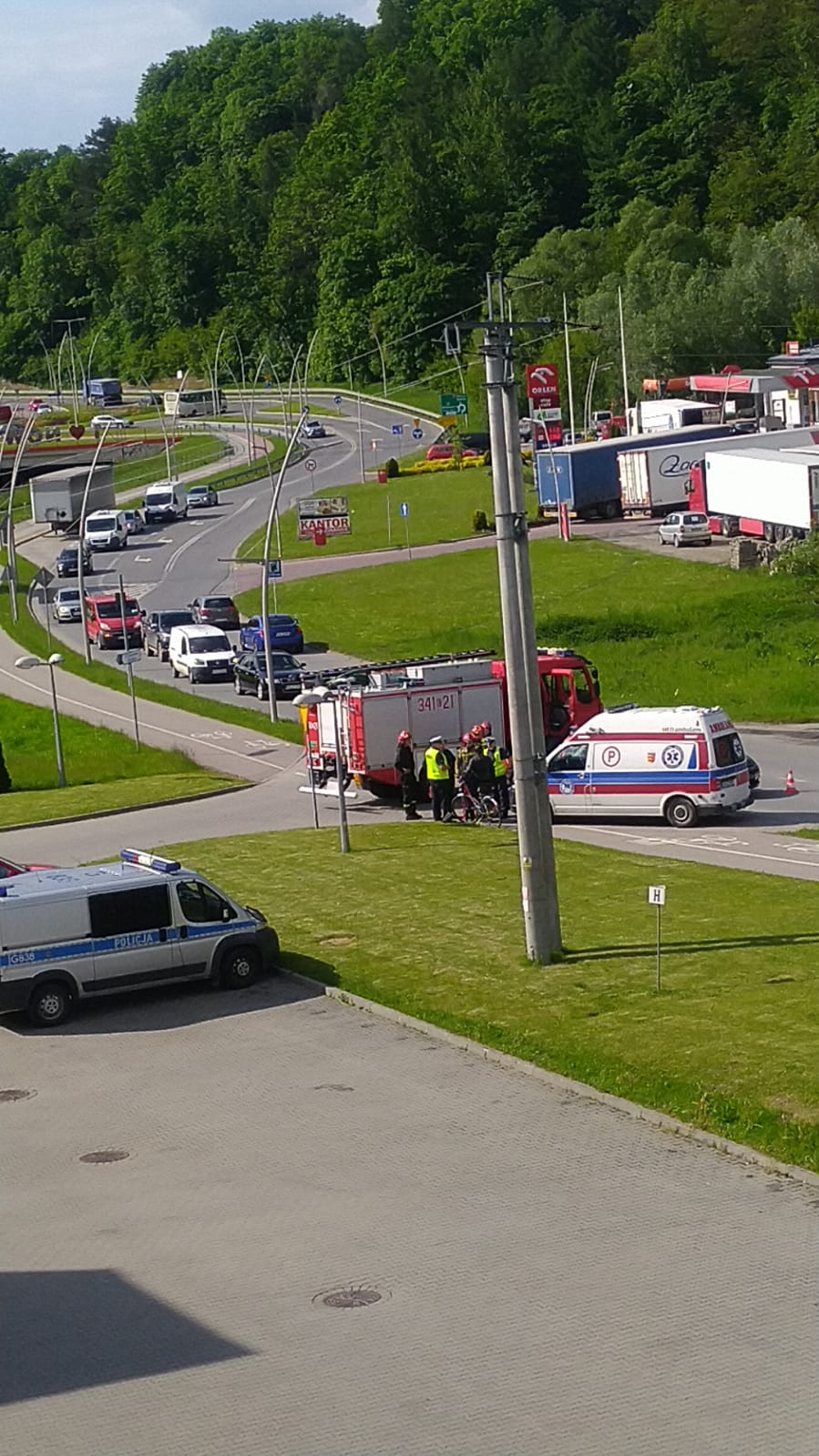 1 czerwca około godziny 15.59 w wyjeżdżający z placu komendy samochód Citroen C4 uderzyła kobieta jadąca na rowerze. Samochód osobowy częściowo znajdował się na pasie jezdni ulicy Witosa. Poszkodowana została kobieta jadąca rowerem, która wymagała pomocy medycznej. Citroenem podróżowały dwie osoby, które nie wymagały udzielenia pomocy medycznej. Działania strażaków polegały na zabezpieczeniu miejsca zdarzenia oraz udzieleniu kwalifikowanej pierwszej pomocy osobie poszkodowanej. Na miejsce przybyła karetka Pogotowia Ratunkowego oraz Policja. Po przeprowadzonych czynnościach dochodzeniowych przez patrol Policji, właściciel usunął pojazd na parking KM PSP Nowy Sącz. Poszkodowana 64-letnia kobieta została zabrana do szpitala. Z chodnika usunięto plamę krwi. Ruch udrożniono w obydwu kierunkach. Działania strażaków trwały czterdzieści pięć minut.