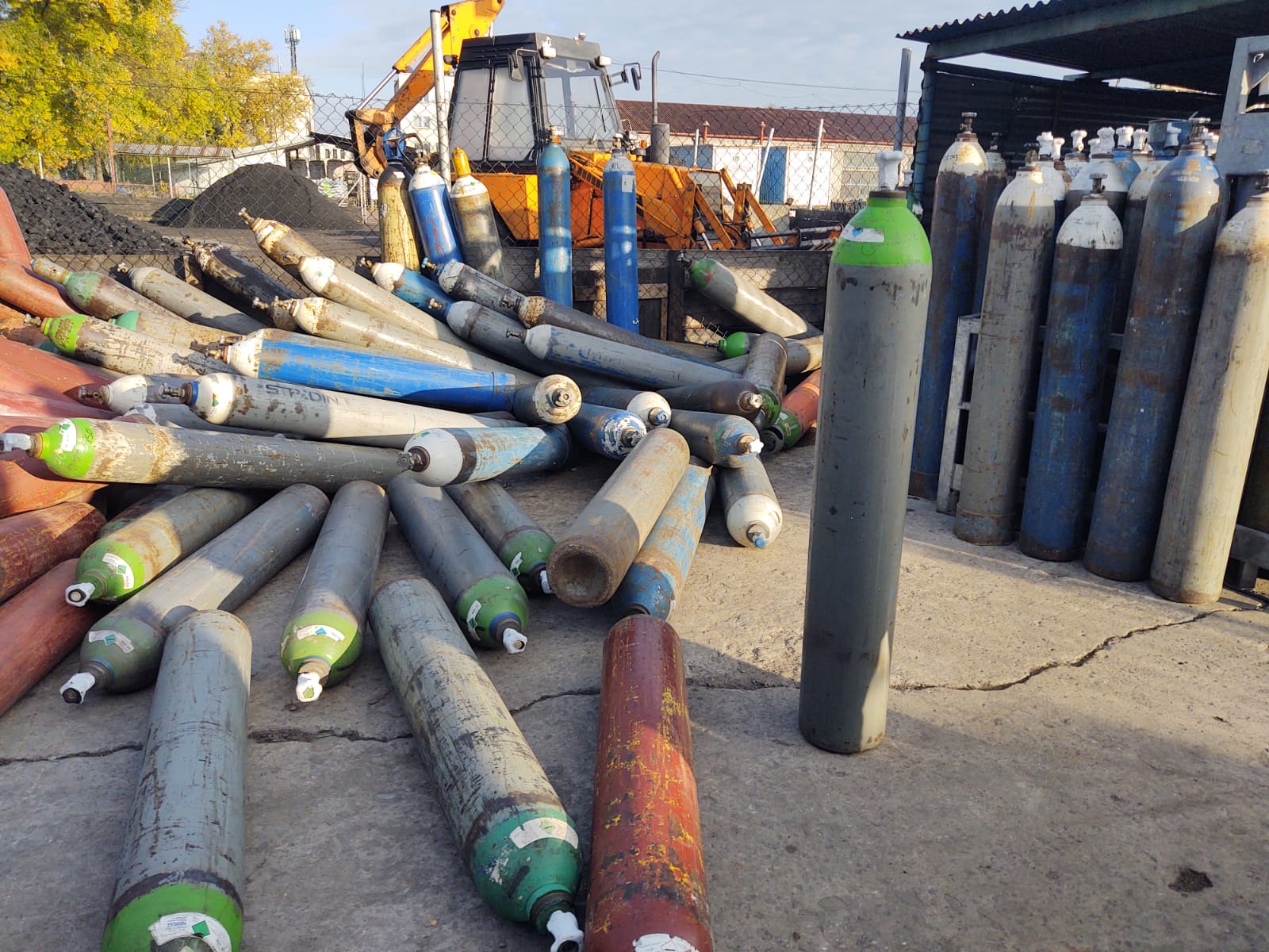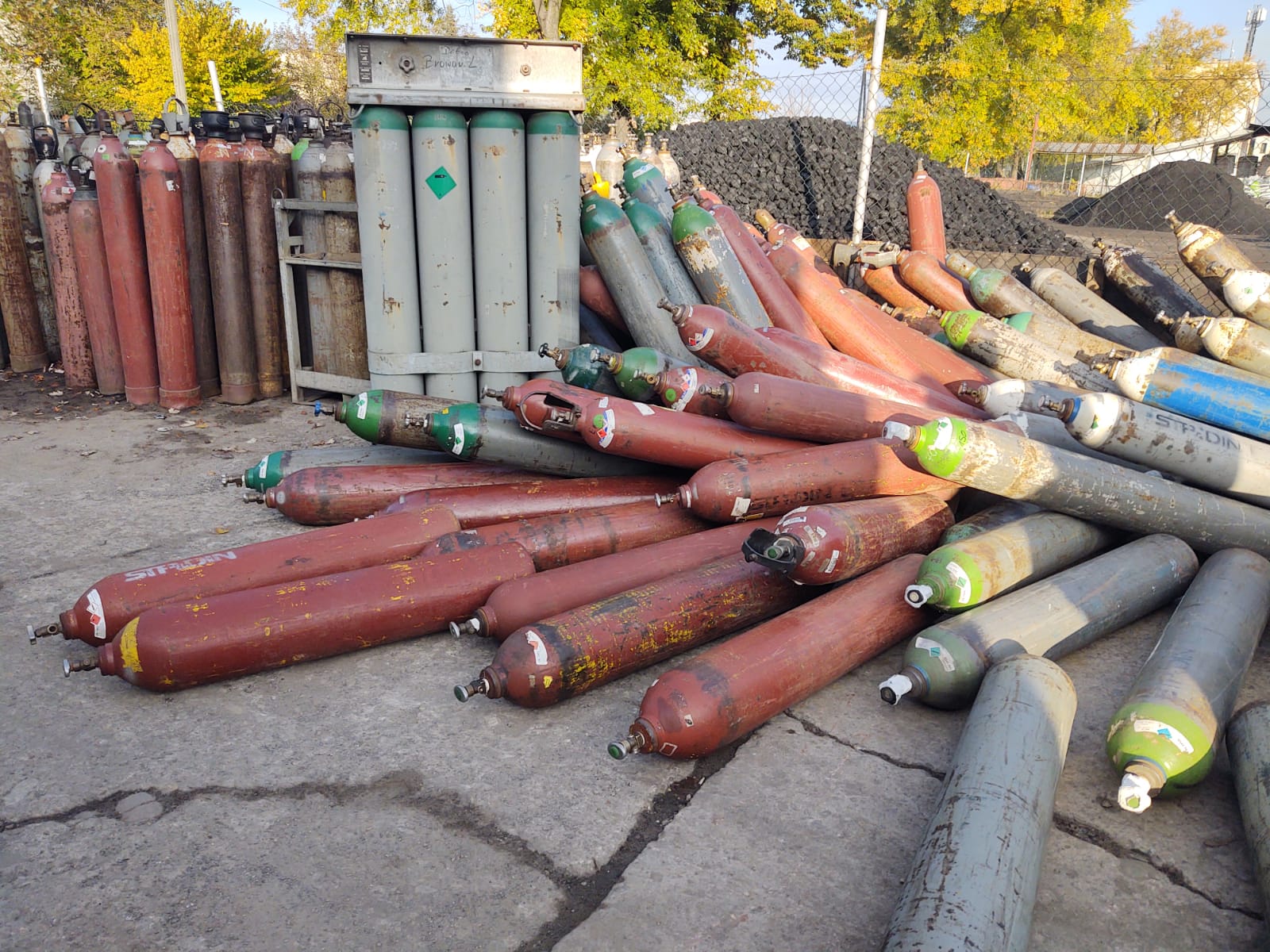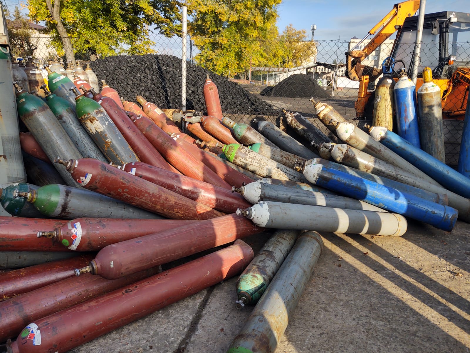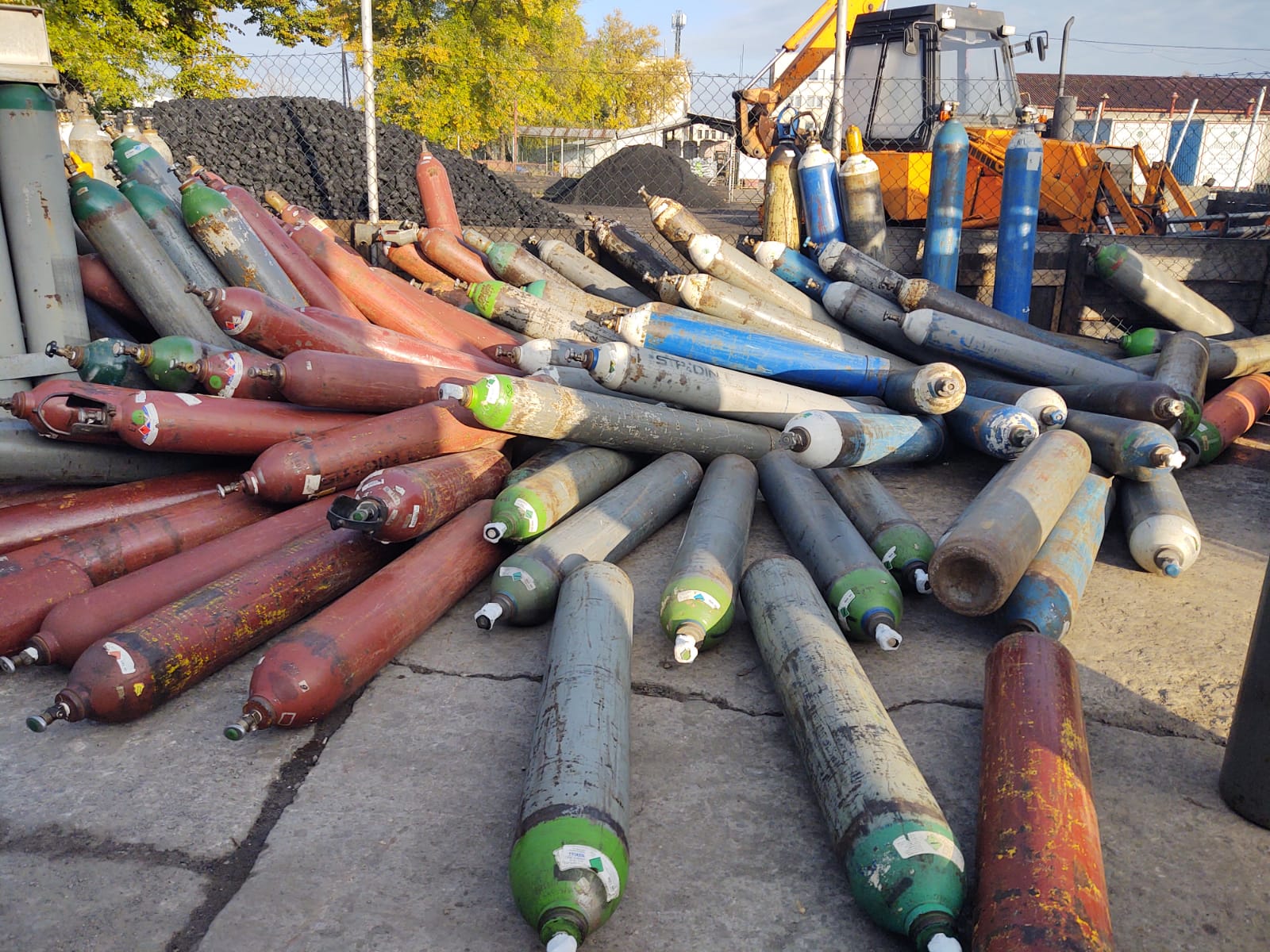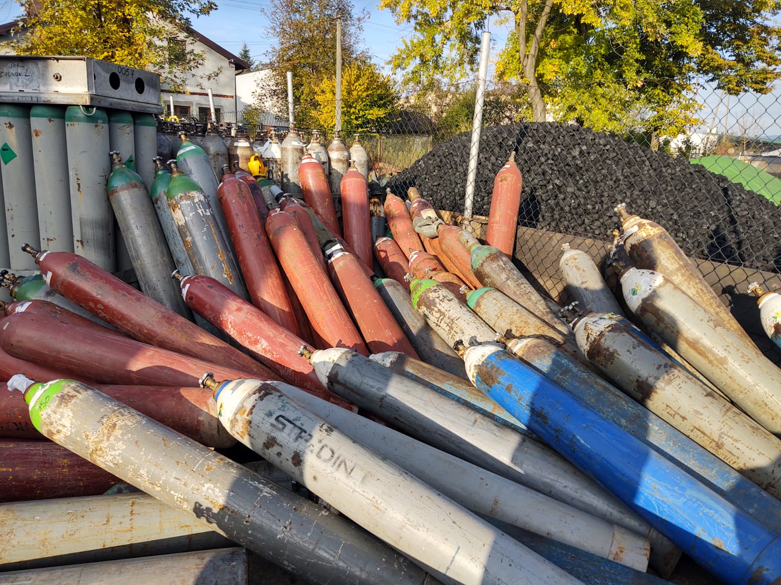 Nowy Sącz, ul. Wyspiańskiego - przewrócone butle na składzie