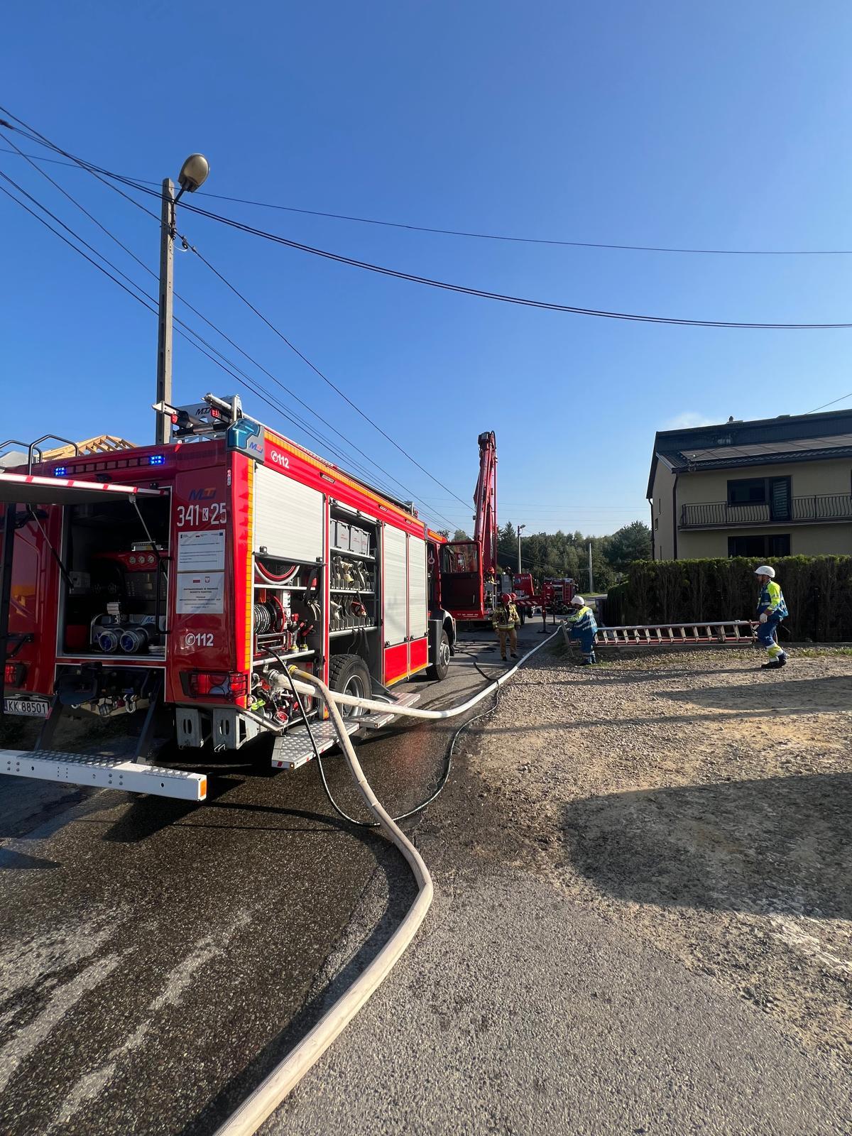 29 sierpnia o godzinie 7.56 zastępy z JRG nr 1 w Nowym Sączu oraz OSP Biegonice zadysponowane zostały do działań w Nowym Sączu na ulicę Zabełecką. Po przybyciu na miejsce zdarzenia, ustalono, że paliło się poddasze jednorodzinnego budynku mieszkalnego. W chwili przybycia zastępów straży widoczny był wydobywający się dym z poddasza i dachu. Pożarem objęta była cała powierzchnia poddasza. Na zewnątrz budynku znajdowały się cztery osoby, które opuściły dom o własnych siłach. Działania strażaków polegały na zabezpieczeniu miejsca zdarzenia, odłączeniu dopływu energii elektrycznej, rozłączenie instalacji fotowoltaicznej oraz zamkniecie głównego zaworu gazu. Zabezpieczeni strażacy weszli do wnętrza budynku w celu zlokalizowania źródła ognia oraz ugaszenia pożaru. Równocześnie strażacy przy pomocy podnośnika podjęli rozbiórkę poszycia dachu w celu oddymienia pomieszczenia objętego pożarem. Po ugaszeniu pożaru rozpoczęto wynoszenie nadpalonych elementów wyposażenia poddasza. Dalsze działania polegały na sprawdzeniu pogorzeliska kamerą termowizyjną a pomieszczeń urządzeniem wielogazowym. Nie stwierdzono nieprawidłowości. Działania 5 zastępów i 19 strażaków trwały prawie trzy godziny. Przyczyna pożaru jest nieustalona.