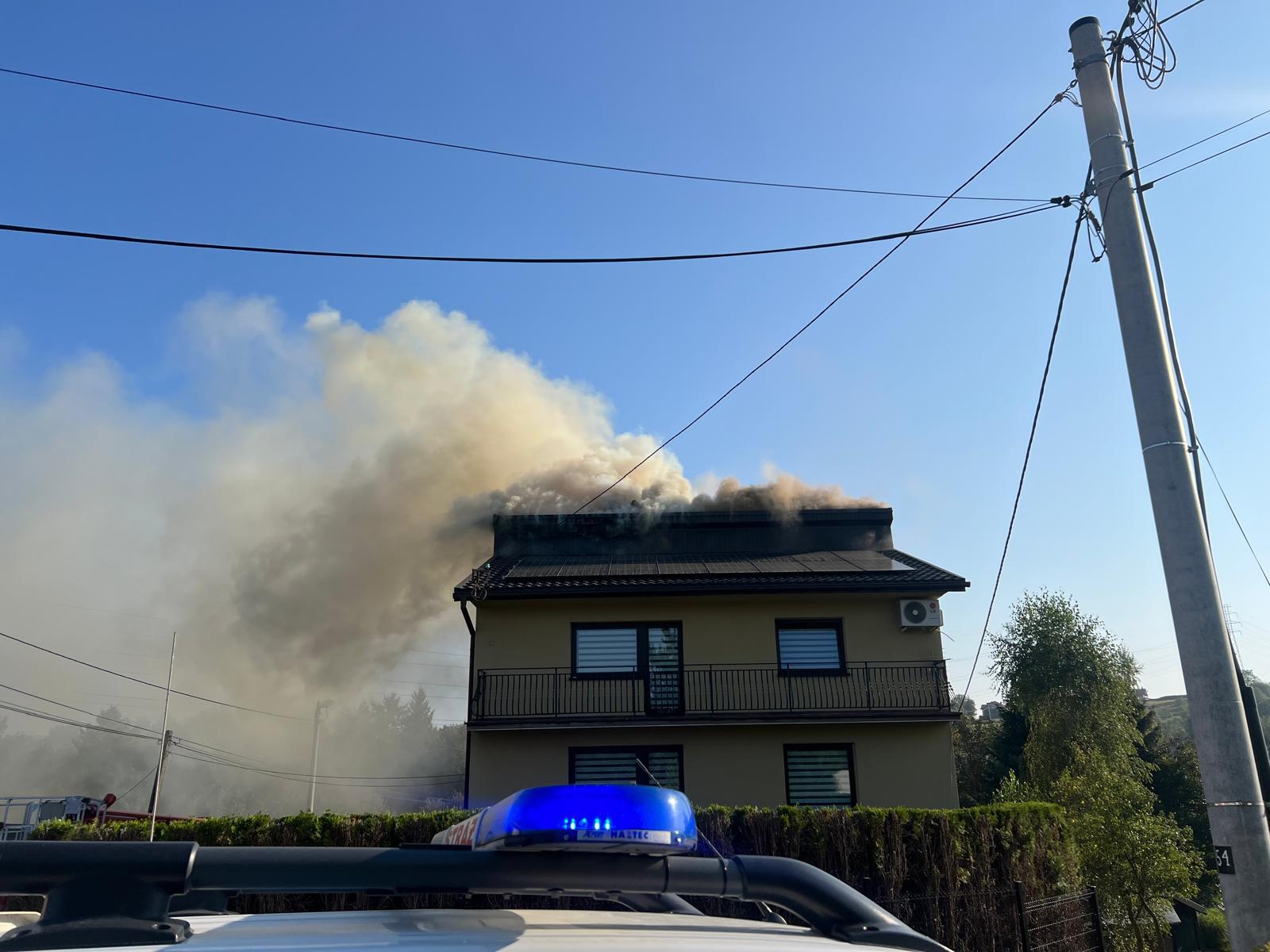 Nowy Sącz, ul. Zabełecka - pożar poddasza budynku mieszkalnego