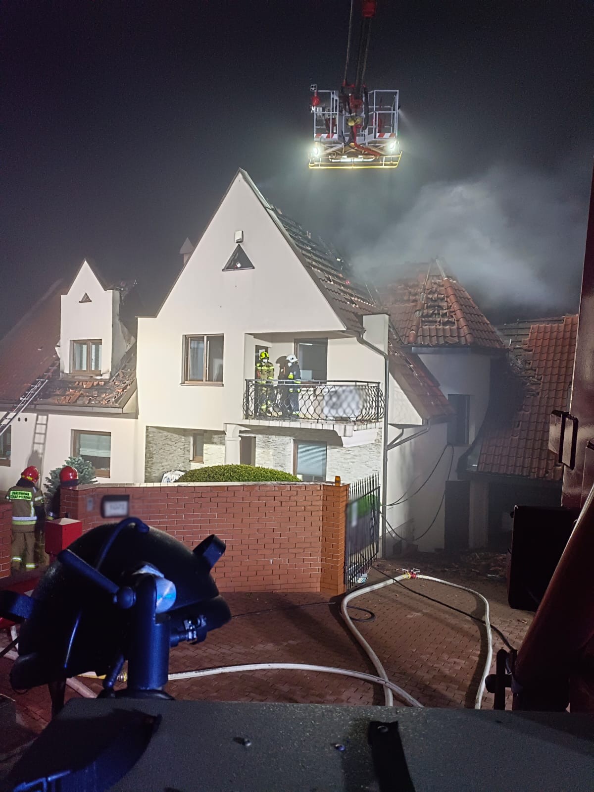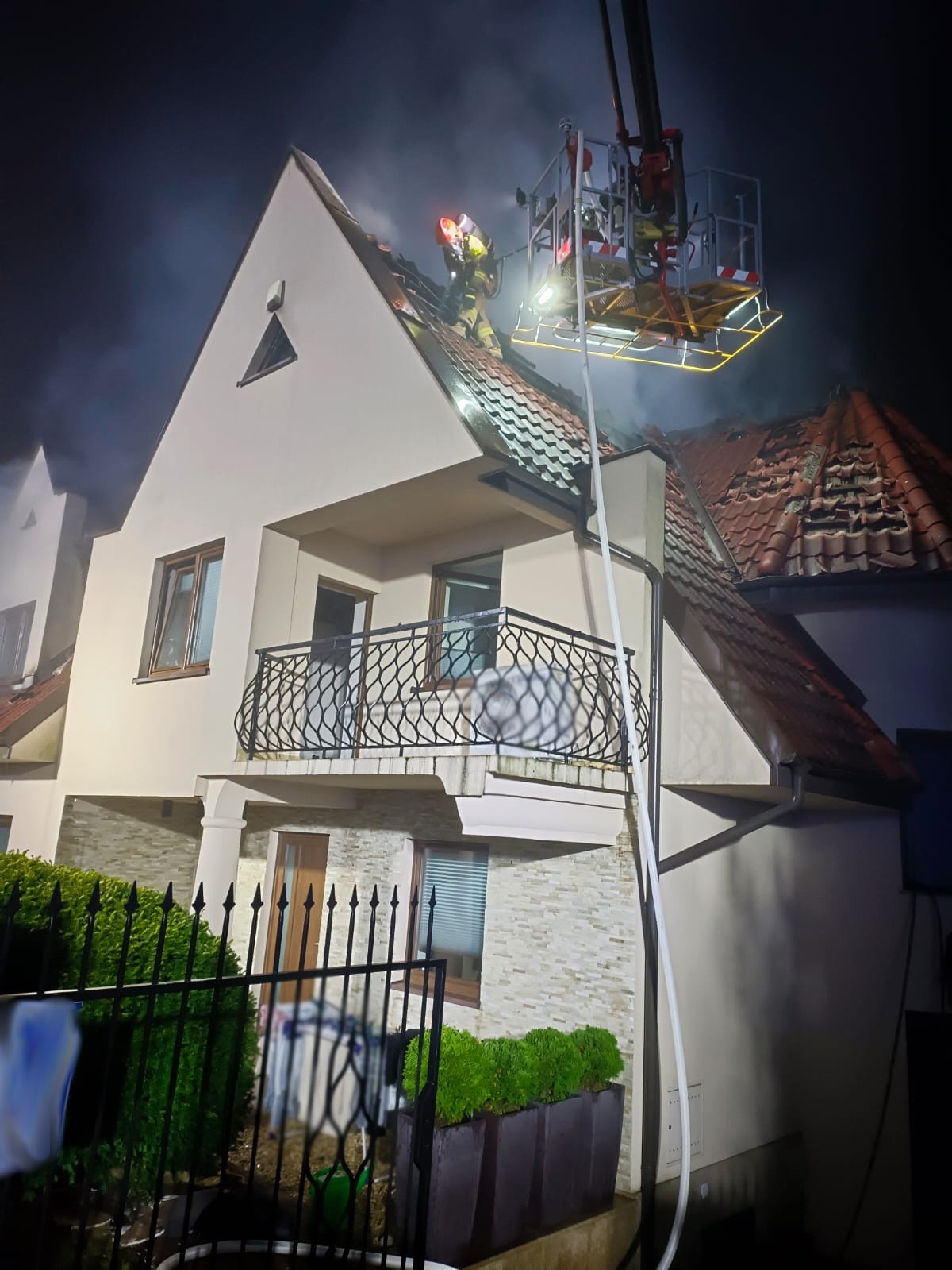 Nowy Sącz, ul. Zdrojowa - nocny pożar poddasza budynku mieszkalnego