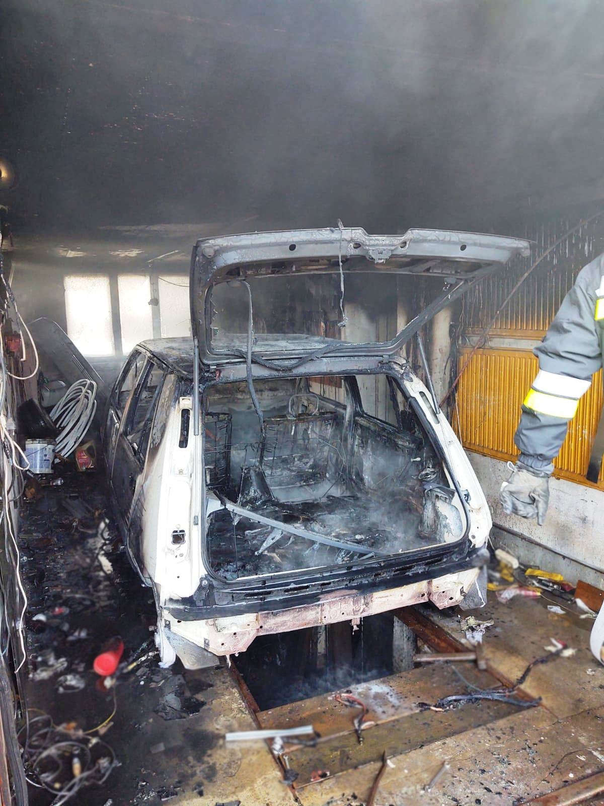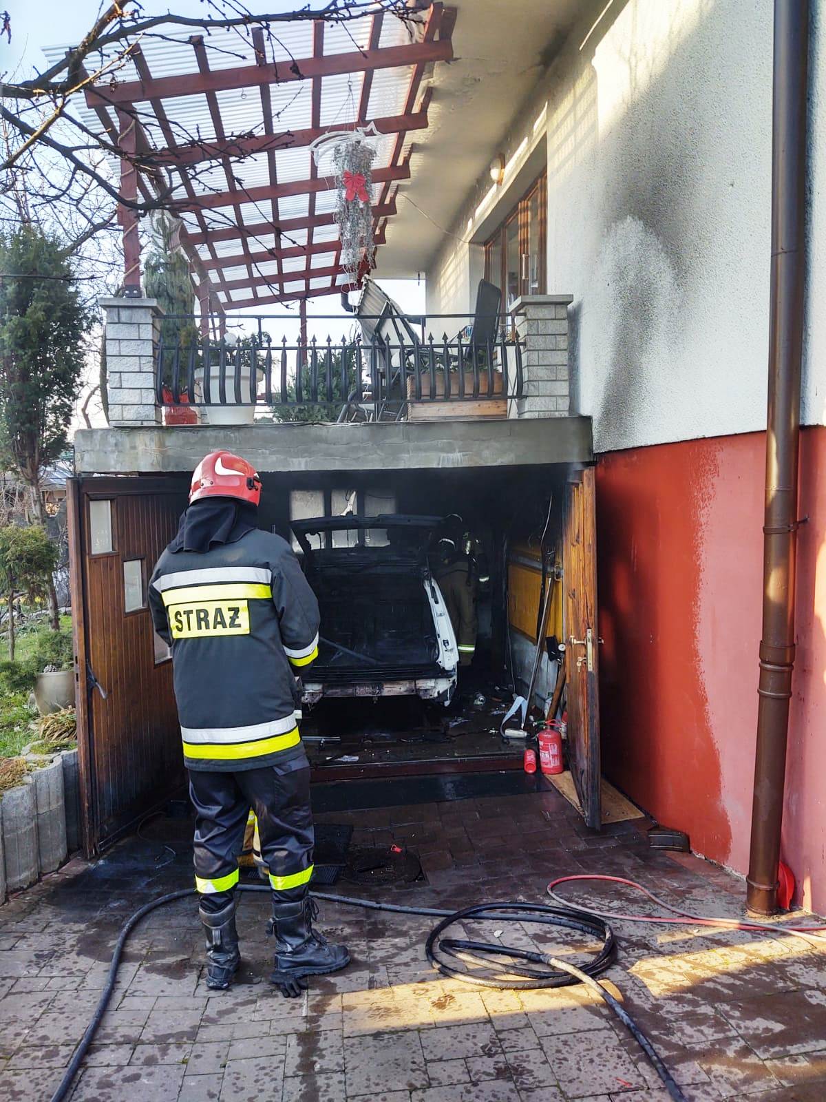 Nowy Sącz, ulica Księżycowa- pożar samochodu osobowego w garażu