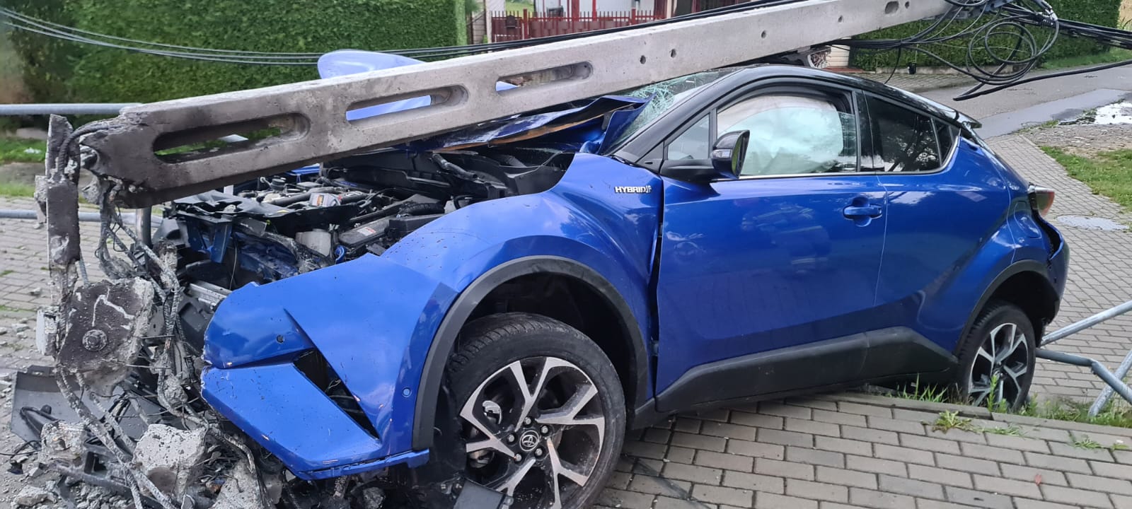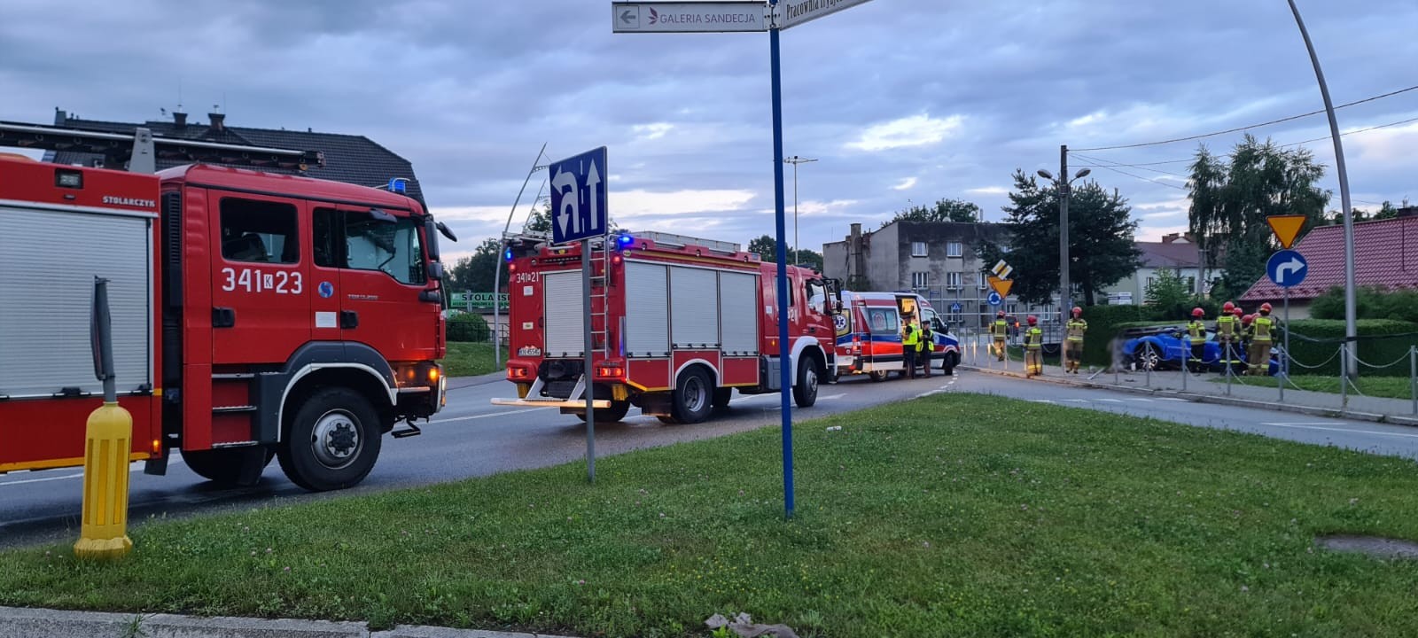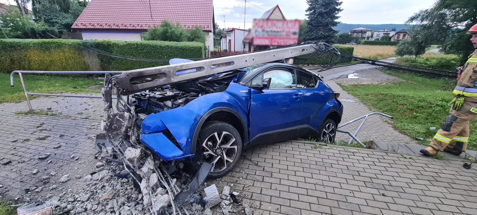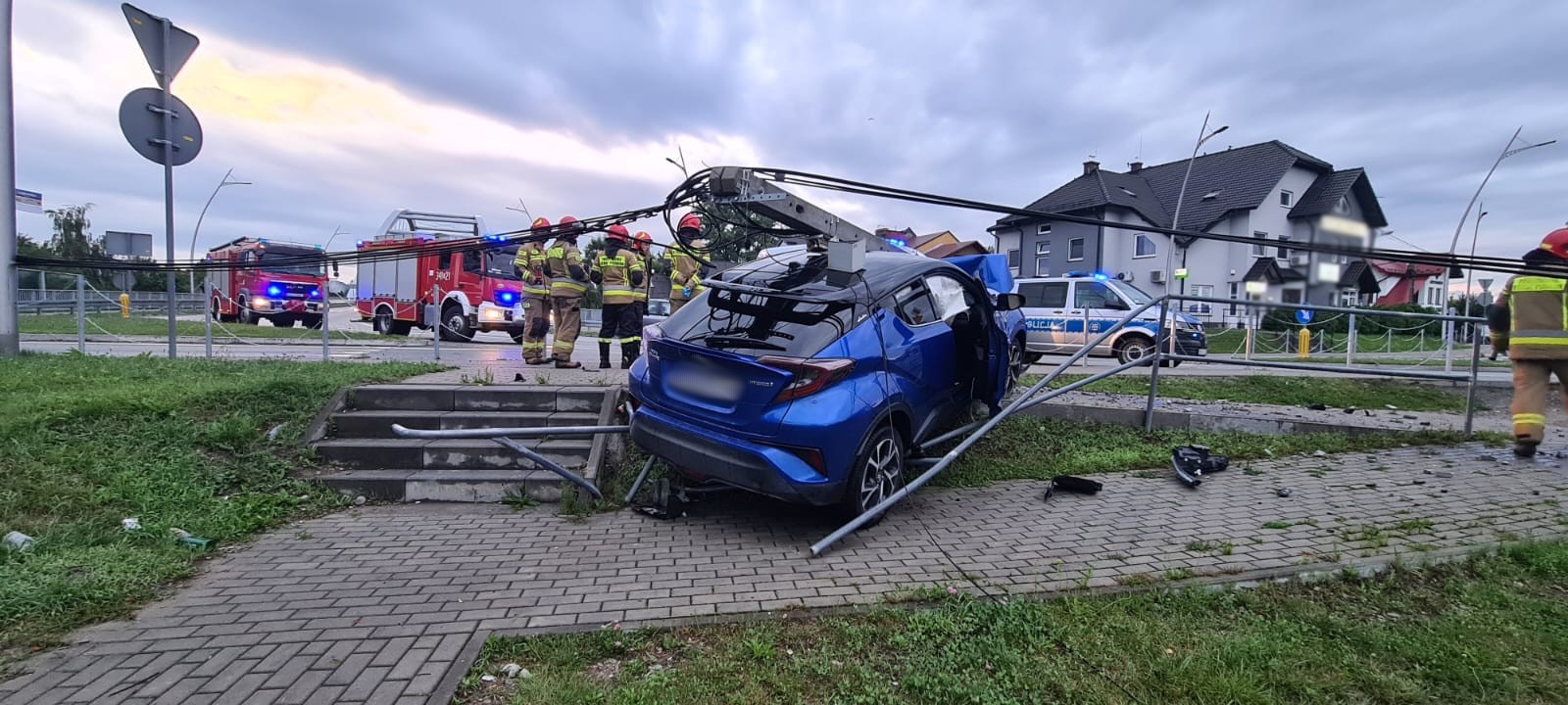 Nowy Sącz, ul.Krakowska-samochód osobowy uderzył w betonowy słup