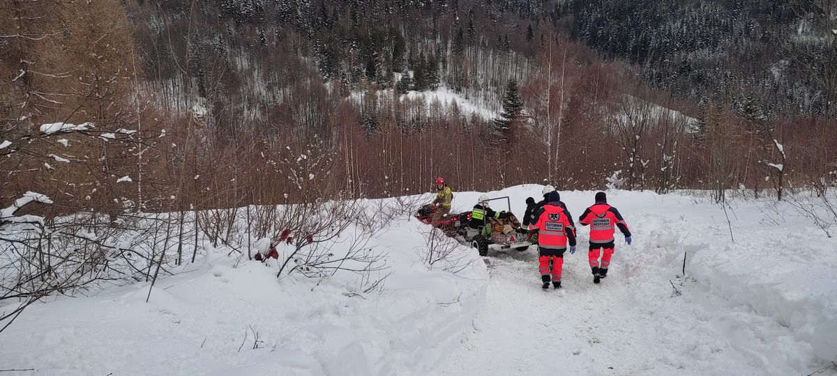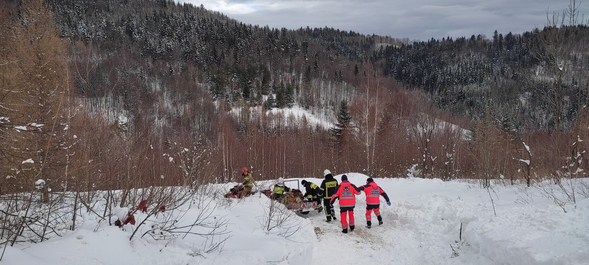 4 lutego o godzinie 9.55 zastępy z JRG nr 2 w Nowym Sączu oraz OSP Obidza zostały zadysponowane do działań w Obidzy. Po przybyciu do miejsce zdarzenia ustalono, że miejsce zamieszkania kobiety, której dotyczy zgłoszenie oddalone jest o około 3 km a dojazd drogą jest utrudniony z powodu górskiego terenu oraz zaśnieżonej drogi. Strażacy z OSP Obidza podjęli próbę dotarcia do miejsca zdarzenia samochodem terenowym Land Rover. W tym celu dwóch ratowników medycznych po przepakowaniu potrzebnego sprzętu udali się wraz ze strażakami do miejsca zdarzenia. W związku z mocno zaśnieżoną drogą samochód Land Rover zakończył jazdę około 500 m od miejsca zamieszkania kobiety. Dalszą drogę dwóch ratowników medycznych oraz trzech ratowników OSP pokonali pieszo. Po dotarciu do starszej kobiety, ratownicy medyczni przystąpili do swoich czynności. Do miejsca gdzie znajdowała się karetka pogotowia dojechał zastęp Isuzu wraz z Quadem z JRG nr 2 Nowy Sącz. Strażacy z JRG podjęli decyzję o dotarciu do miejsca zdarzenia przy pomocy Quada z przyczepką w razie konieczności transportu kobiety do karetki pogotowia. Po dotarciu na miejsca okazało się, że starsza kobieta będzie transportowana do szpitala w Nowym Sączu. W tym celu przygotowano przyczepkę do transportu poszkodowanej. Kobieta została przykryta kocami i przeniesiona na jednym z koców do Quada około 50 m. Strażacy zablokowali drogę, którą odbywał się transport. W trakcie transportu do karetki przy pomocy Quada stabilizowano go ręcznie na stromych zjazdach. Po dotarciu do miejsca gdzie znajdowała się karetka, przeniesiono kobietę na nosze z pogotowia. W karetce kobieta została ponownie przebadana przez ratowników medycznych a następnie przewieziona do szpitala. Na tym działania zastępów Straży Pożarnej trwające ponad dwie godziny zostały zakończone.