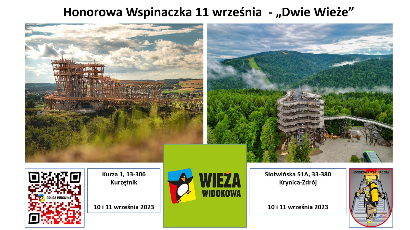 Dnia 10 i 11 września 2023 roku, od godziny 18:00 będziemy wchodzić po na szczyt Wieży Widokowej Słotwiny Arena w Krynicy Zdroju. Nie jest to forma rywalizacji. Każdy uczestnik wchodzi na własną odpowiedzialność oraz w ramach swoich możliwości.