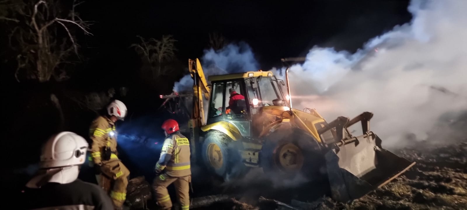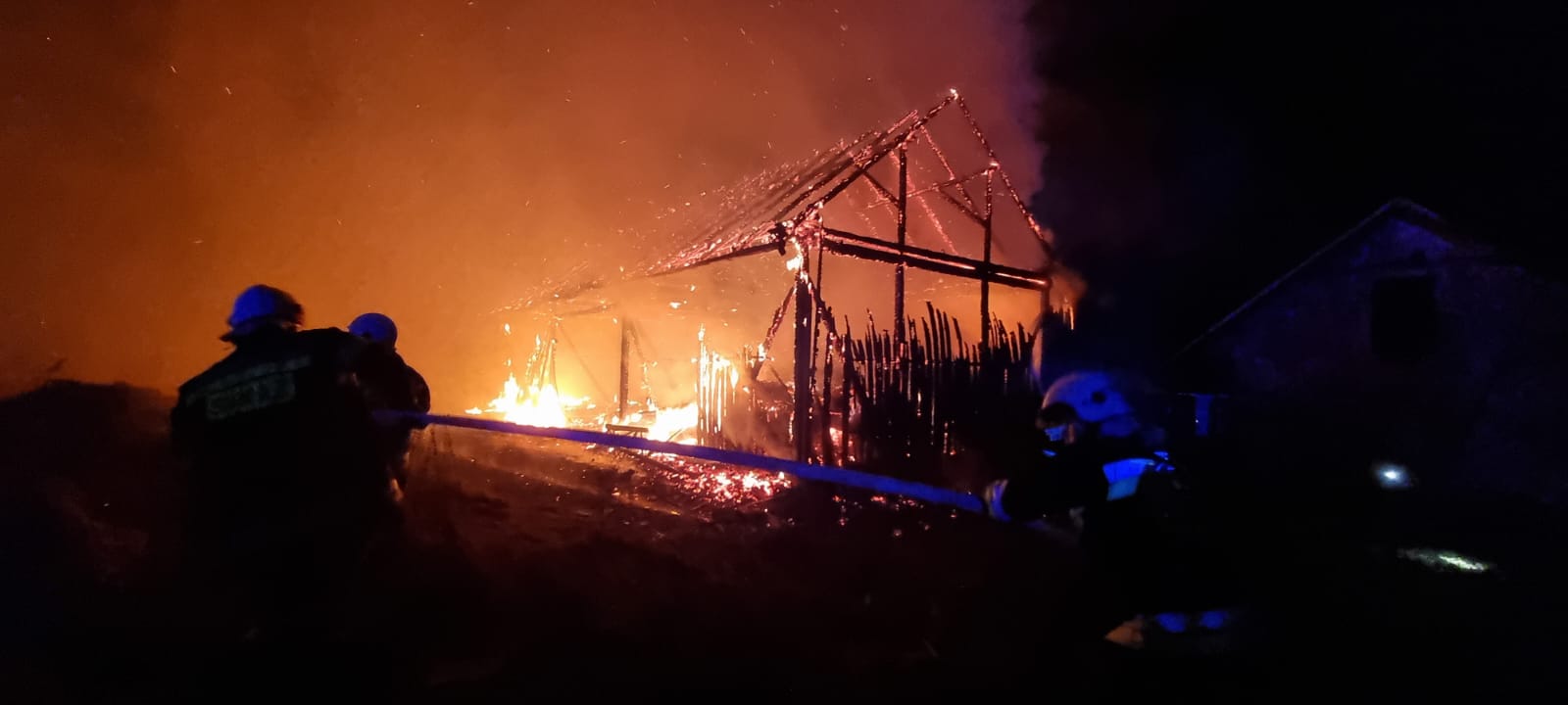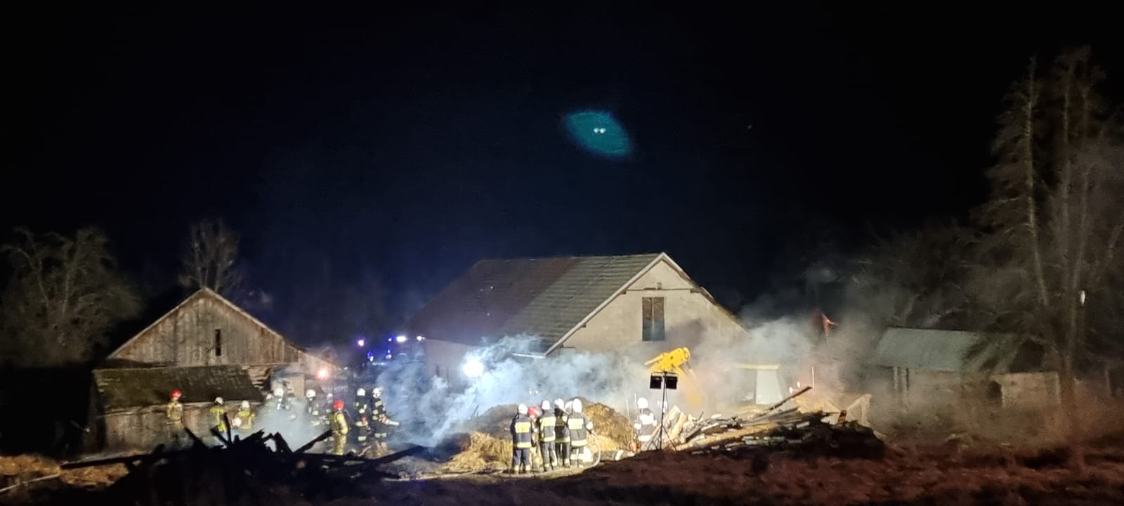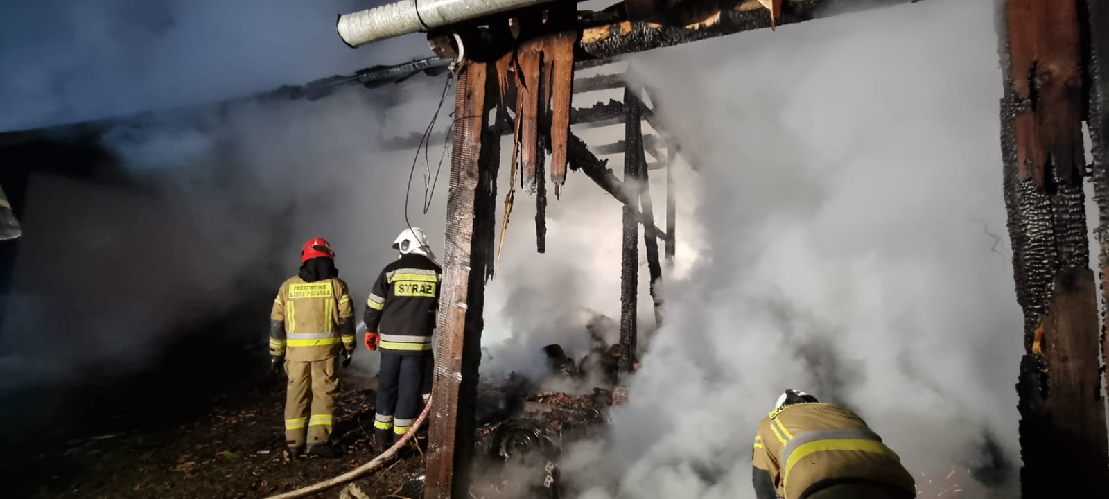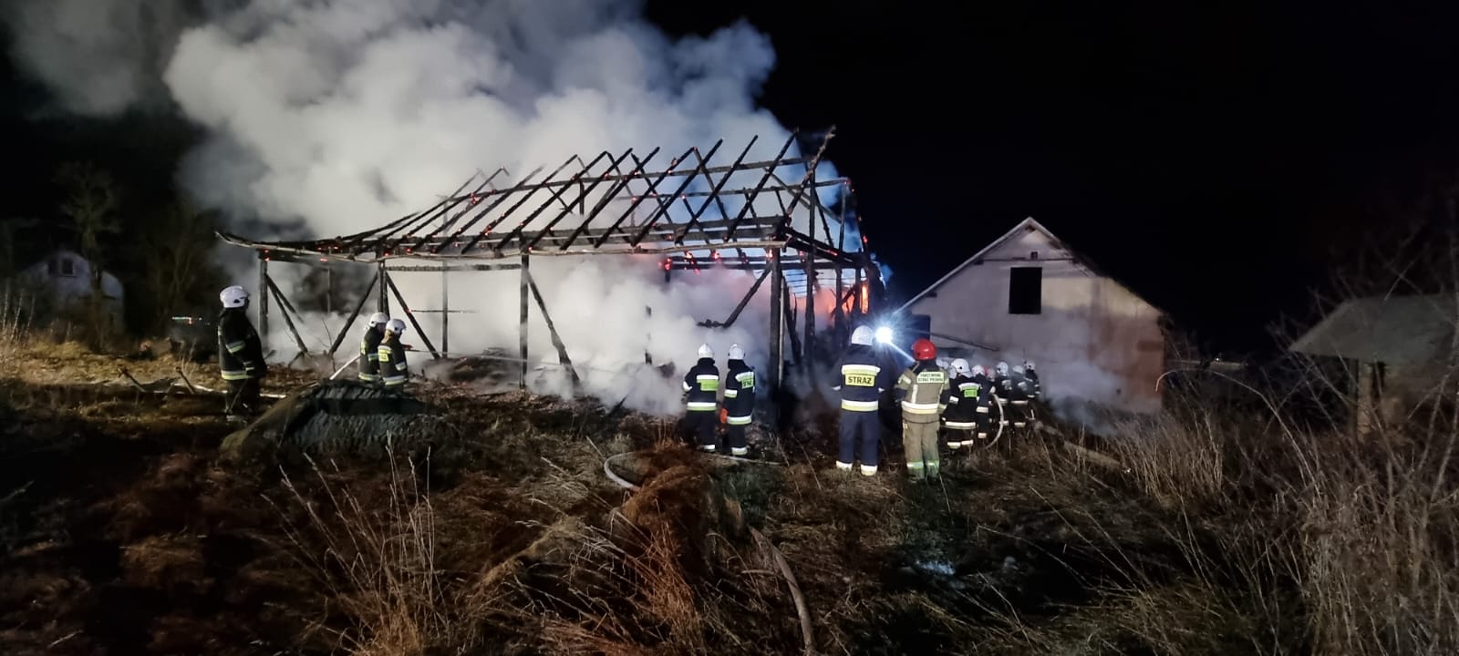 28 grudnia o godzinie 17.06 zastępy z JRG nr 2 w Nowym Sączu oraz z najbliższych jednostek OSP zadysponowane zostały do działań w Olszanie. Po przybyciu na miejsce zdarzenia ustalono, że w całości objęty pożarem był drewniany budynek gospodarczy. W bliskim sąsiedztwie znajdowały się dwa budynki mieszkalne oraz murowany budynek gospodarczy. W wyniku pożaru zagrożony był jednorodzinny budynek mieszkalny z instalacją fotowoltaiczną usytuowaną na dachu. Działania strażaków polegały na zabezpieczeniu miejsca zdarzenia oraz podaniu prądów wody w obronie na zagrożony budynek oraz w natarciu na palący się budynek gospodarczy. Zbudowano zasilanie wodne z pobliskiego potoku. Oświetlono miejsce zdarzenia. Po lokalizacji pożaru przystąpiono do prac rozbiórkowych. W celu sprawniejszego rozebrania nadpalonej konstrukcji drewnianego budynku gospodarczego zadysponowano na miejsce pożaru koparkę. W trakcie prac rozbiórkowych przegrzebywano palącą się słomę oraz siano, a następnie przelewano je wodą. Uszkodzoną konstrukcję, pocięto na mniejsze części, złożono w bezpieczne miejsce i przelano wodą. Po ugaszeniu pożaru, całe pogorzelisko jeszcze raz sprawdzono i przegrzebano. Wszystkie budynki zagrożone pożarem sprawdzono kamerą termowizyjną. Po wykluczeniu zagrożenia działania strażaków trwające cztery godziny zakończono. Działania ratowniczo-gaśnicze prowadziło 10 zastępów i 55 strażaków. Przyczyna pożaru jest nieustalona.