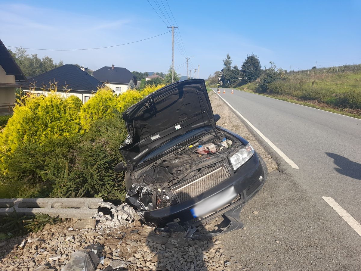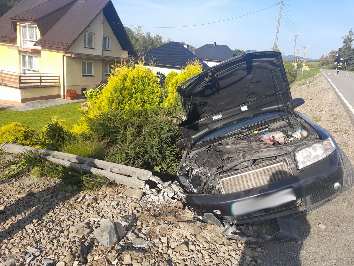 Olszana - samochód osobowy uderzył w słup