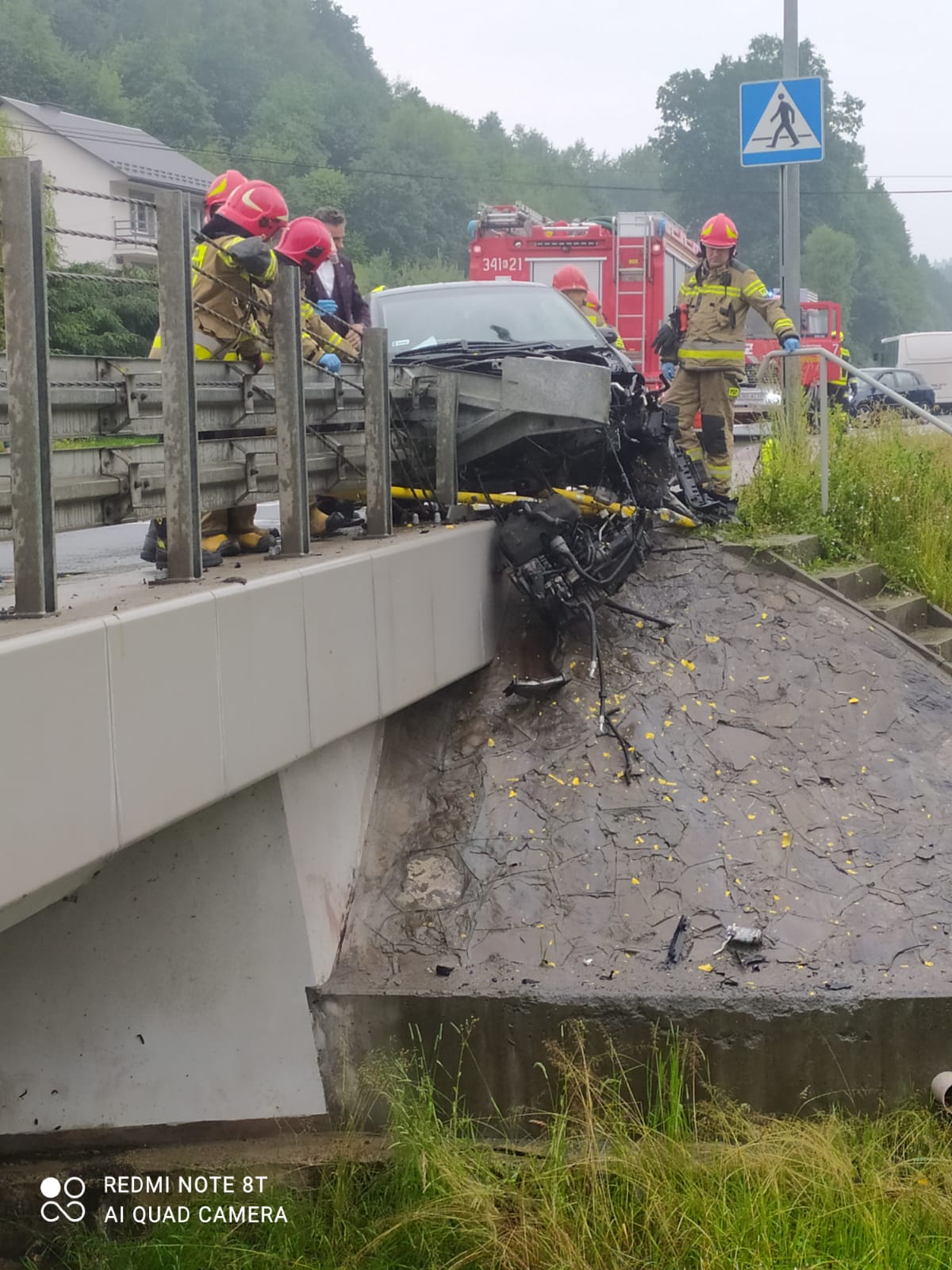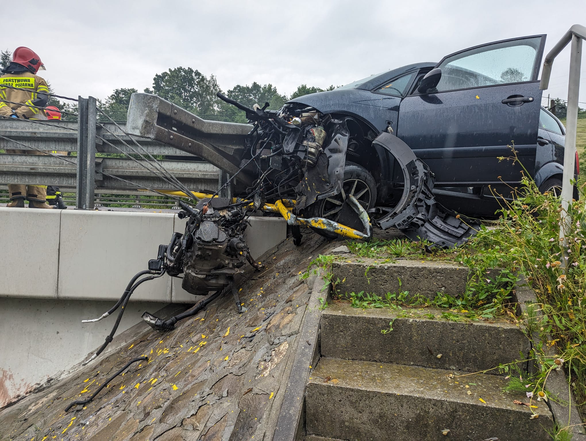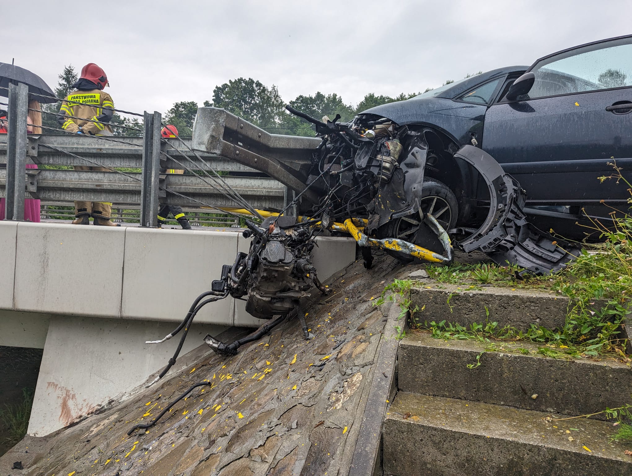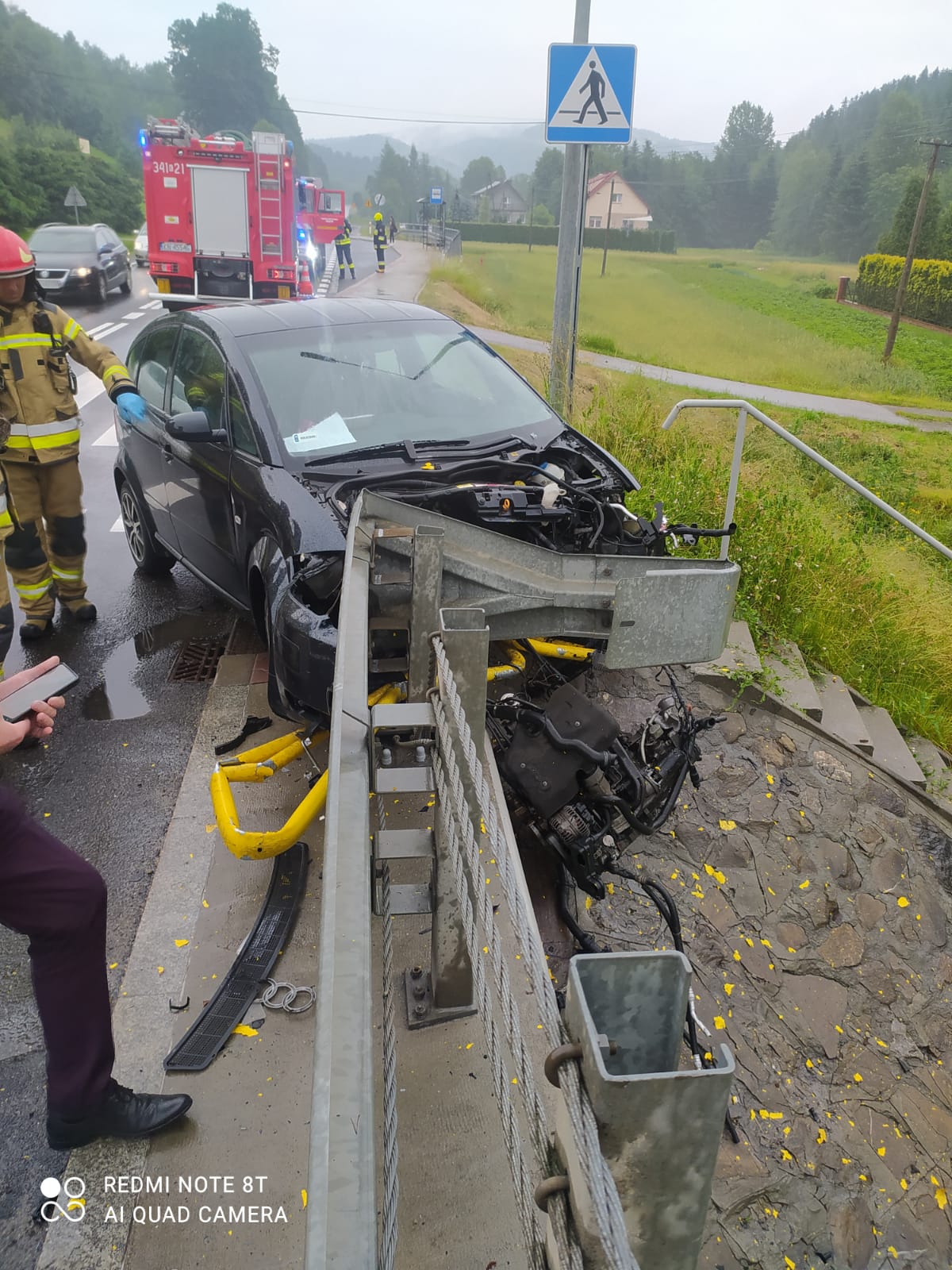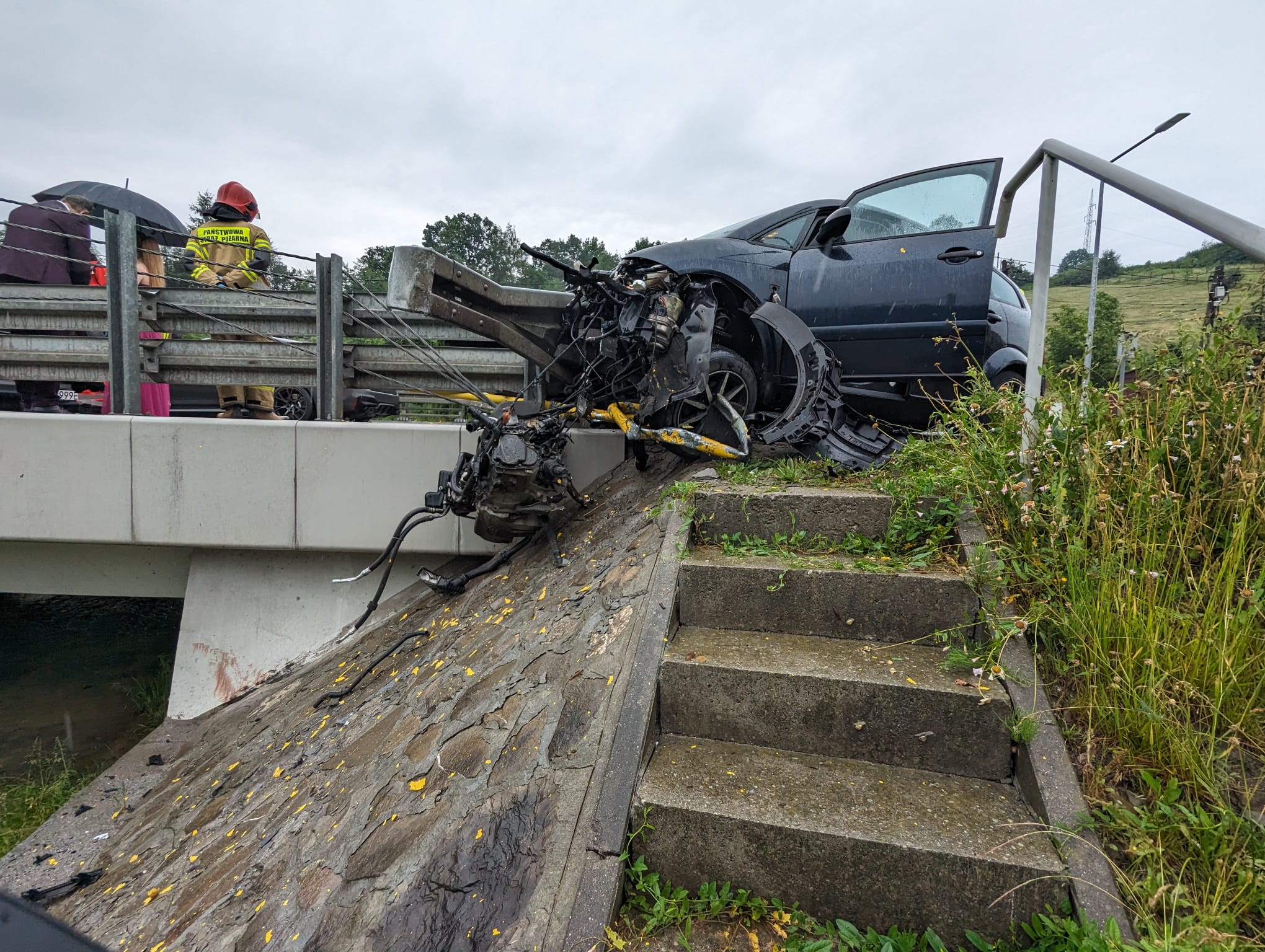 Paszyn- samochód osobowy uderzył w barierę energochłonną przepustu