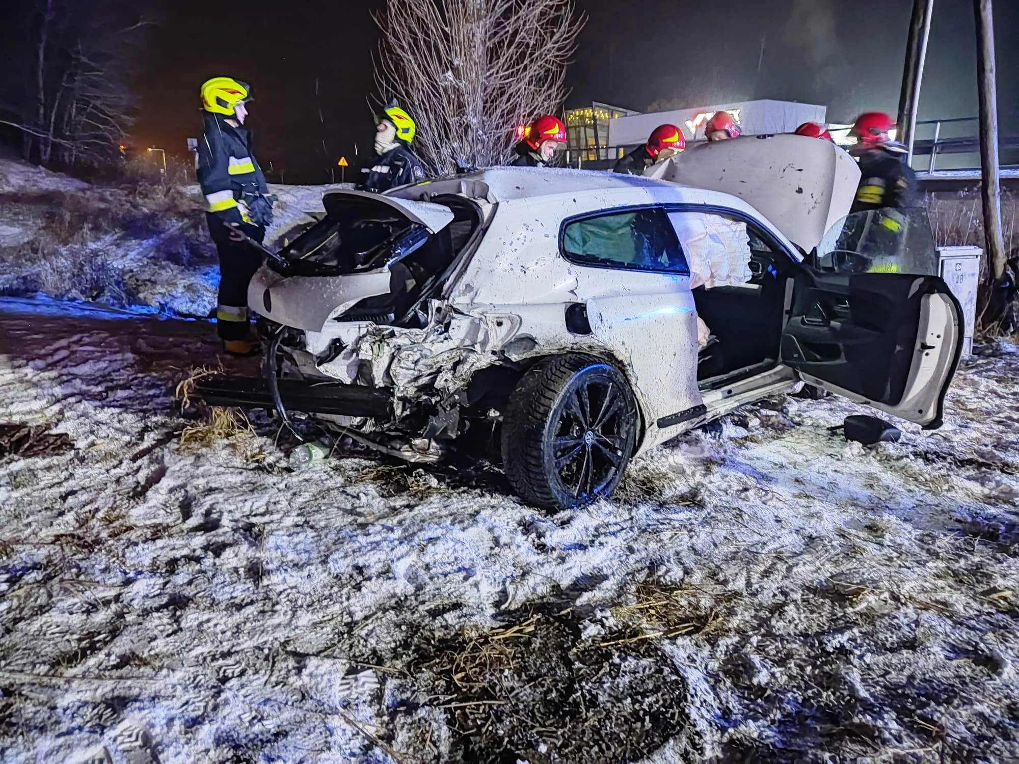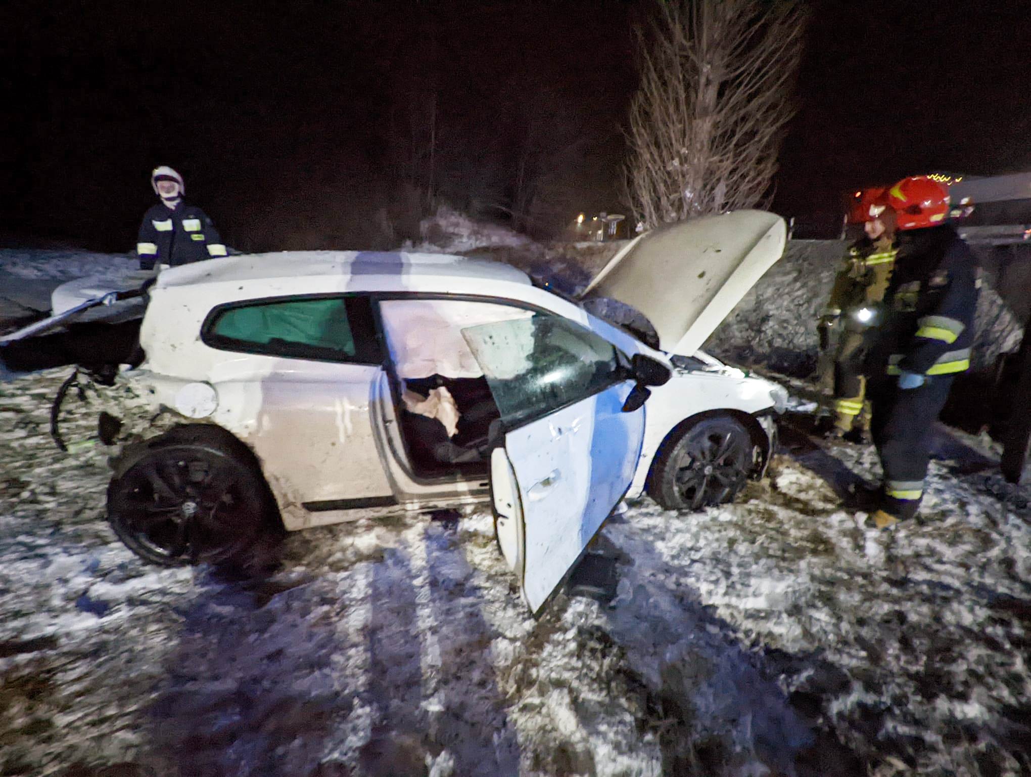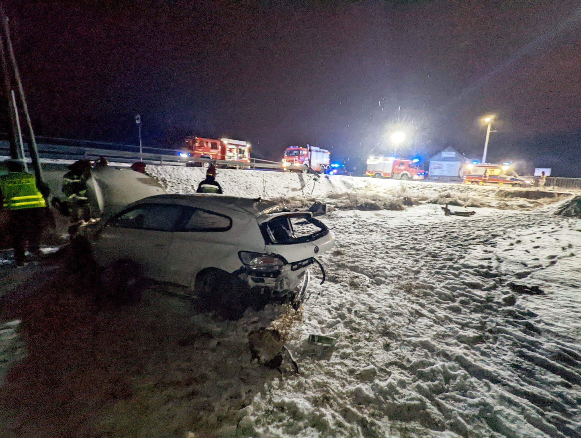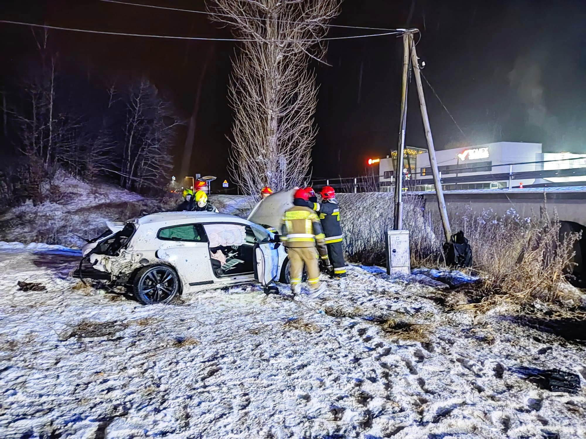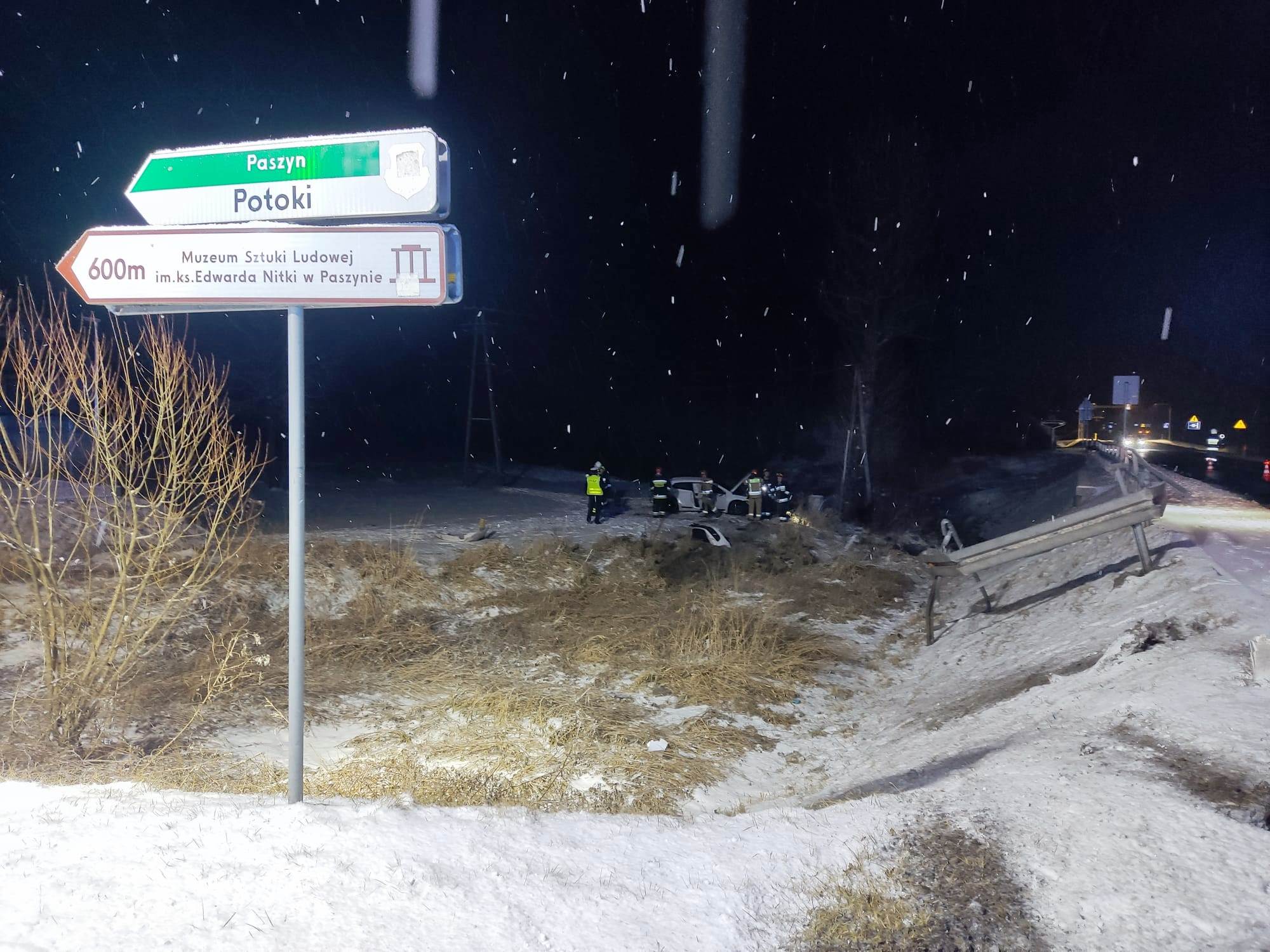 5 marca o 3.45 zastępy z JRG nr 1 w Nowym Sączu oraz OSP Paszyn zadysponowane zostały do działań w Paszynie. Po przybyciu na miejsce zdarzenia ustalono, że samochód osobowy VW Scirocco wypadł z drogi i znajdował się poza jezdnią. Samochodem podróżowały łącznie trzy osoby, które opuściły pojazd o własnych siłach. Wraz z zastępami straży na miejsce dotarły dwie karetki, które udzielały pomocy medycznej osobom podróżującym samochodem. Pojazd uszkodził bariery energochłonne. Działania strażaków polegały na zabezpieczeniu oraz oświetleniu miejsca zdarzenia oraz przeszukaniu terenu wokół pojazdu w celu wykluczenia większej ilości osób biorących udział w zdarzeniu. Odłączono akumulator w samochodzie. Na miejsce dotarły dwa patrole Policji. Wprowadzono ruch wahadłowy pojazdów na drodze. Po wstępnym przebadaniu poszkodowanych przez ratowników medycznych dwie osoby zostały zabrane do szpitala, natomiast jedna z nich została na miejscu. Działania strażaków trwały niespełna godzinę.