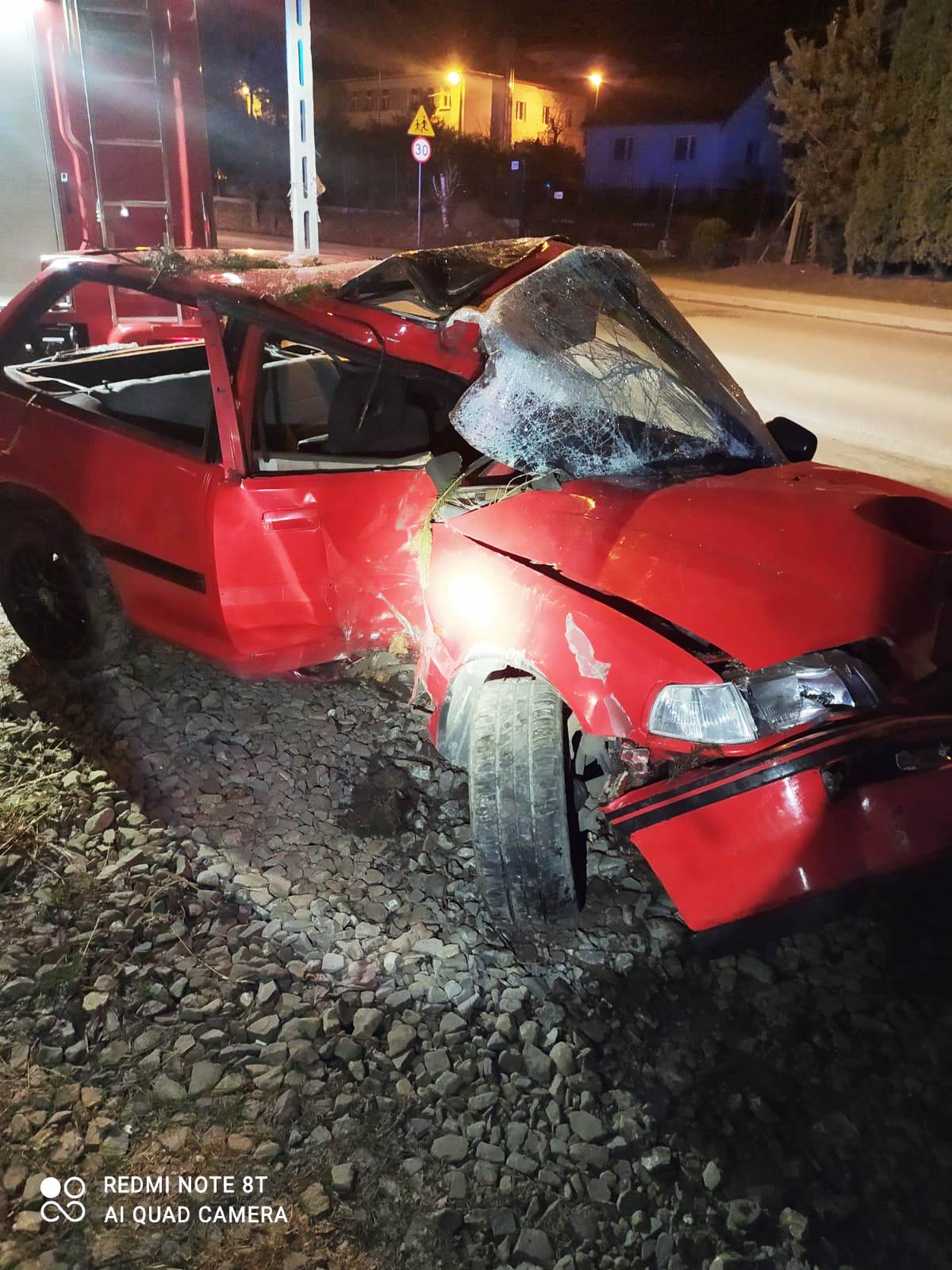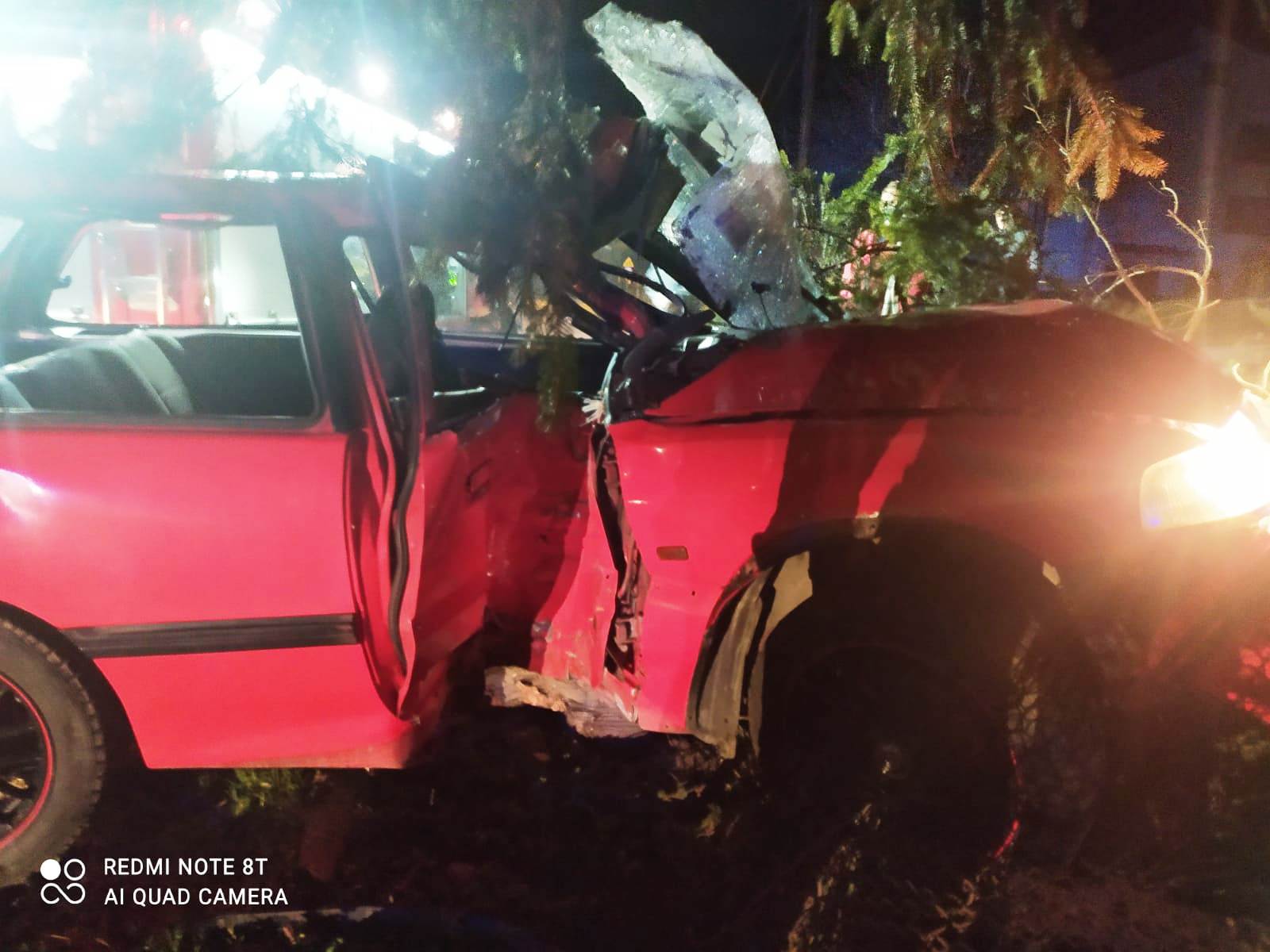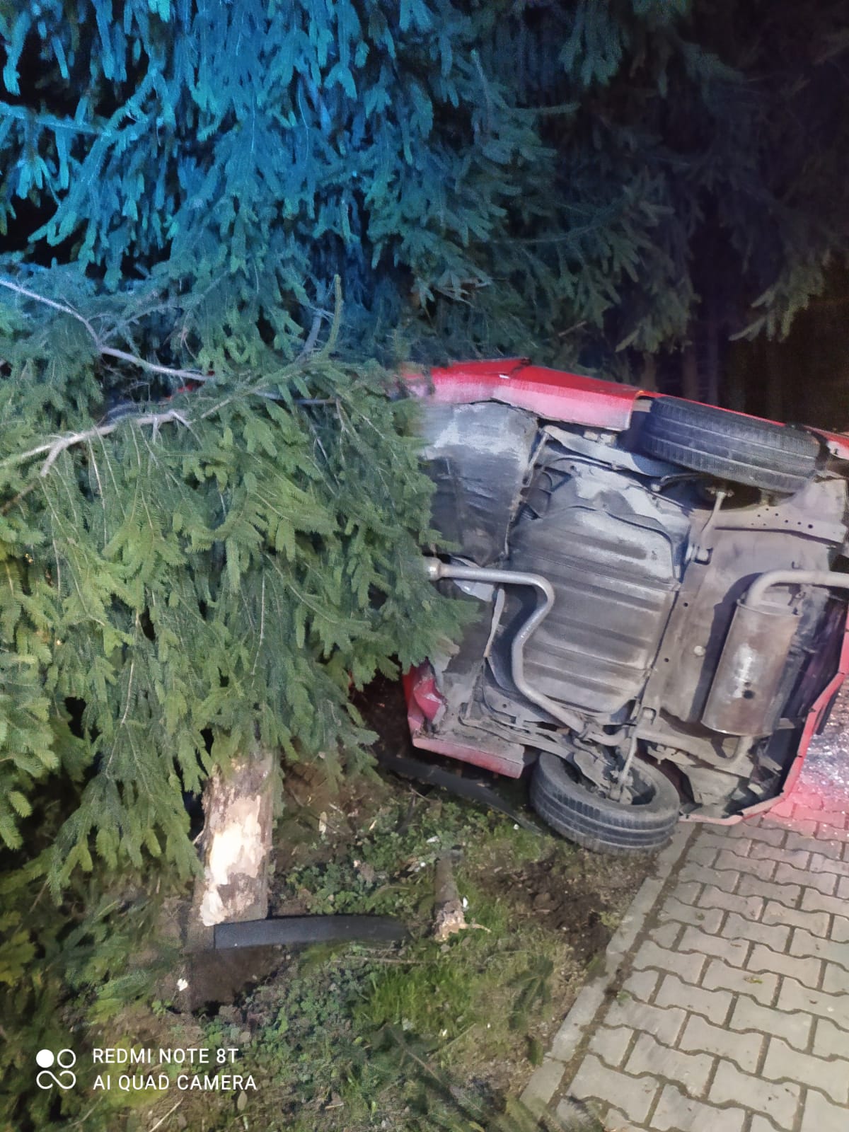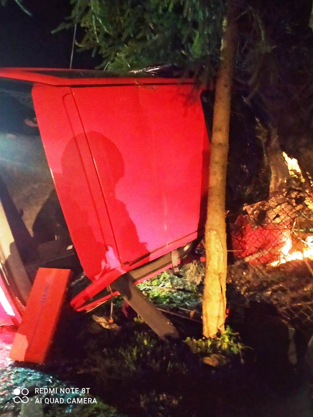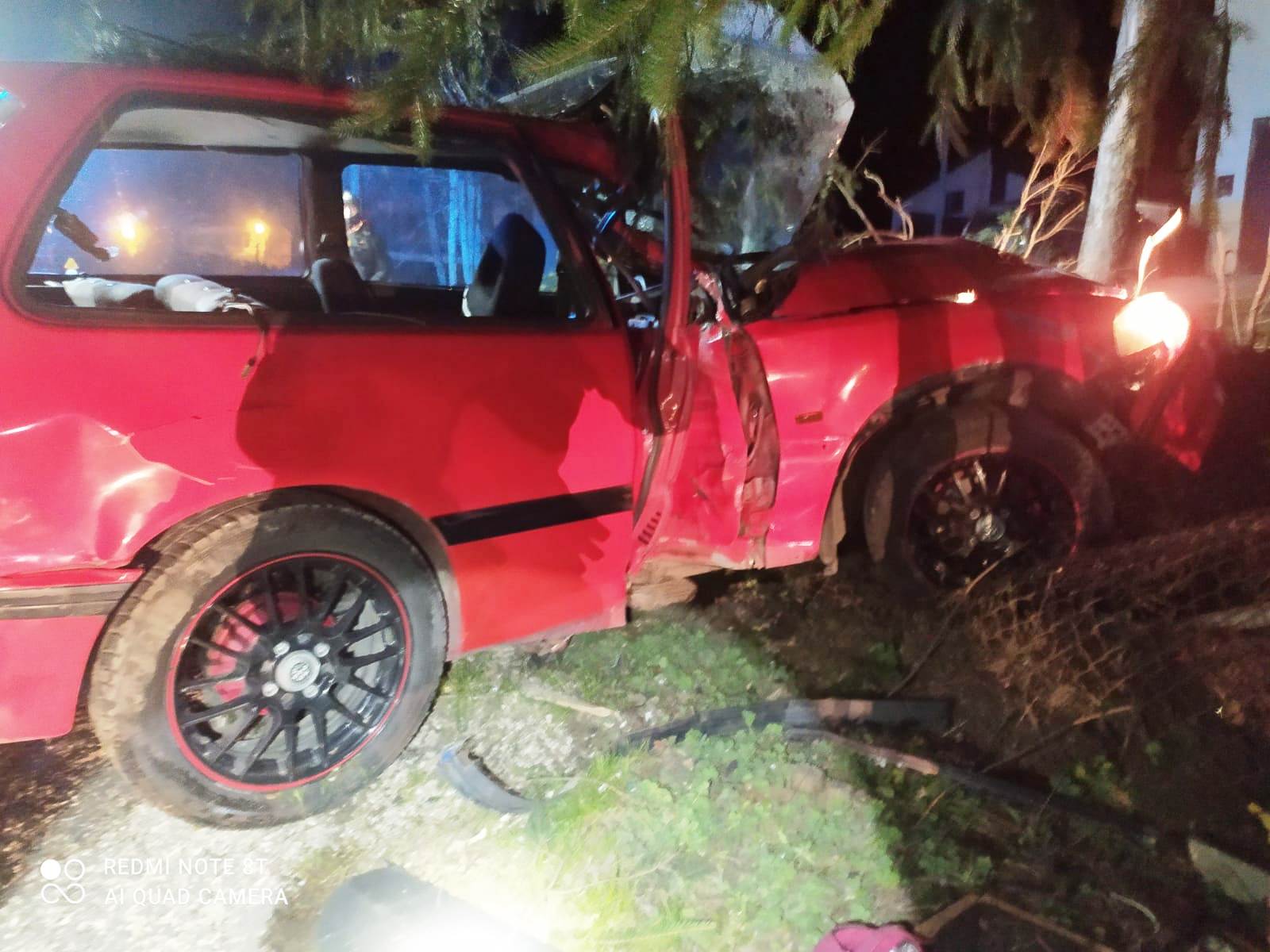 9 kwietnia około godziny 23.08 zastęp z JRG nr 1 w Nowym Sączu zadysponowany został do działań w Piątkowej. Po przybyciu na miejsce zdarzenia ustalono, że samochód osobowy Honda Civic wypadł z drogi, uderzył w ogrodzenie i znajdował się na prawym boku pojazdu. Osoba podróżująca o własnych siłach opuściła pojazd i nie uskarżała się na żadne dolegliwości. Nie doszło wycieku płynów eksploatacyjnych. Na miejscu zdarzenia była Policja. Działania strażaków polegały na zabezpieczeniu miejsca zdarzenia oraz wycięciu drzewa (świerk) przy pomocy piły spalinowej w celu postawienia pojazdu na koła. Rozłączono instalację elektryczną w pojeździe. Przeciągnięto pojazd za zgodą Policji na pobliski parking, używając samochodu pożarniczego i liny stalowej. Usunięto elementy powypadkowe. Działania strażaków trwały niespełna godzinę.