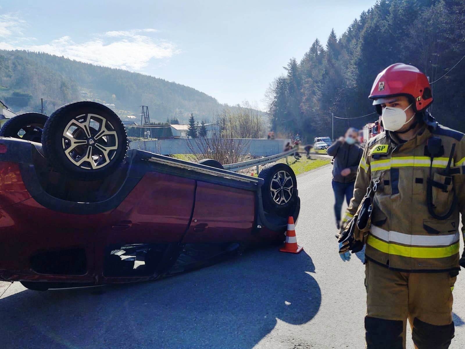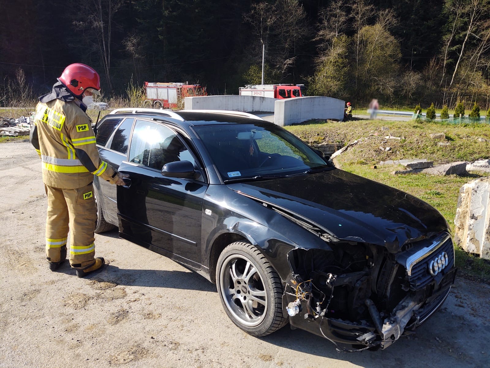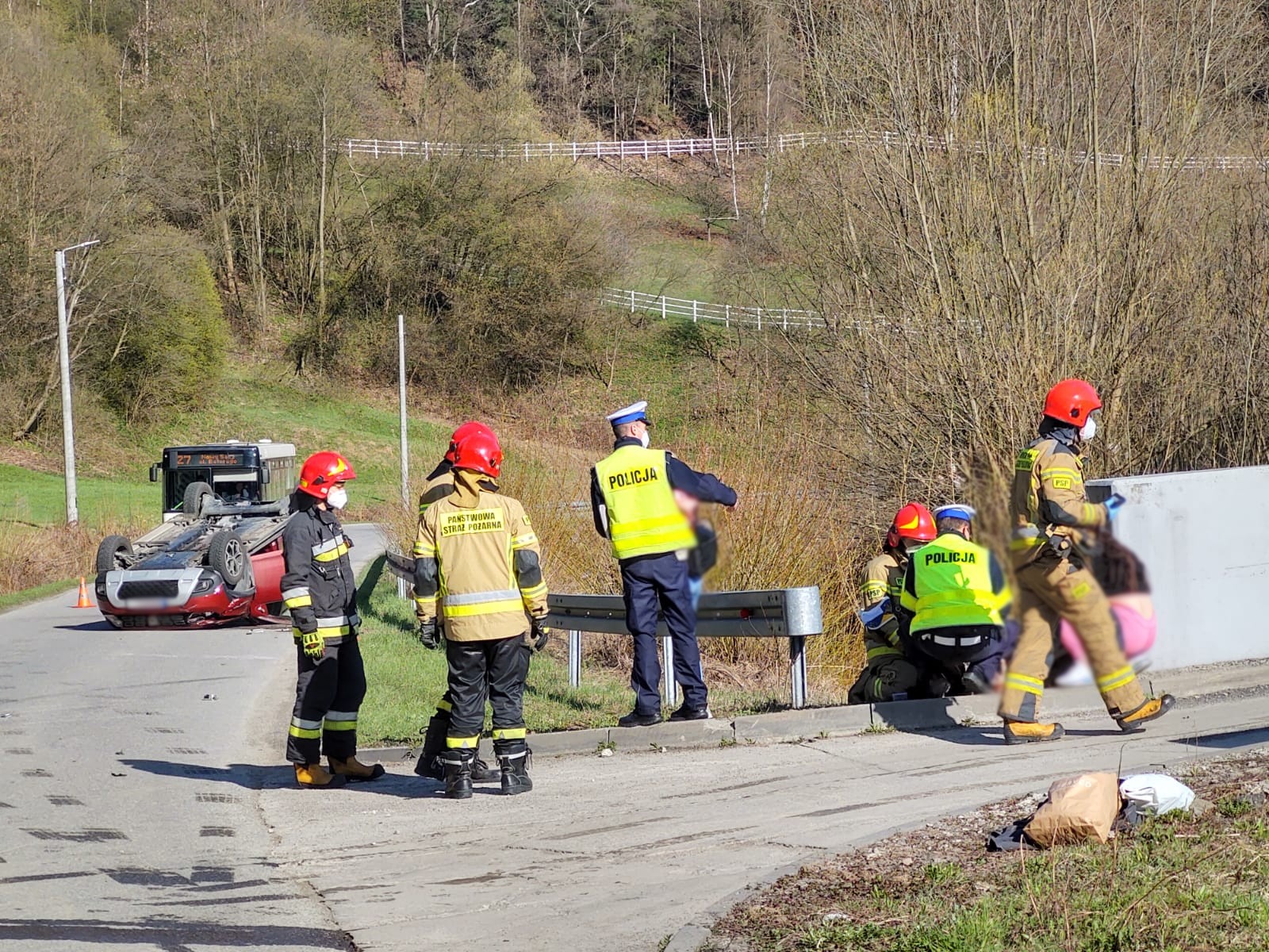 26 kwietnia o godzinie 8.16 zastępy z JRG nr 1 w Nowym Sączu oraz OSP Paszyn zadysponowane zostały do działań w Piątkowej. Po przybyciu na miejsce zdarzenia ustalono, że na drodze gminnej doszło do zderzenia dwóch samochodów osobowych marki Audi A4 oraz Dacia Duster, która znajdowała się na dachu. Samochodami podróżowało łącznie trzy osoby, które opuściły pojazdy o własnych siłach. Jedna osoba uskarżała się na dolegliwości. Z Dacii nastąpił wyciek płynów eksploatacyjnych. Jezdnia była częściowo zablokowana przez uszkodzonego Dustera. Audi znajdowało się poza drogą. Działania Straży Pożarnej polegały na zabezpieczeniu miejsca zdarzenia oraz udzieleniu kwalifikowanej pierwszej pomocy osobie poszkodowanej. Osobę poszkodowaną przekazano przybyłej na miejsce załodze karetki Pogotowia Ratunkowego. Rozłączono akumulatory w uszkodzonych pojazdach. Dokonano sorpcji rozlanych płynów eksploatacyjnych. Usunięto pozostałości po kolizji na pobocze drogi. Kierowano ruchem drogowym w miejscu zdarzenia. Osoba poszkodowana została zabrana do szpitala. Działania strażaków trwały niespełna godzinę. Na miejscu zdarzenia pozostała Policja, która prowadziła czynności dochodzeniowe.