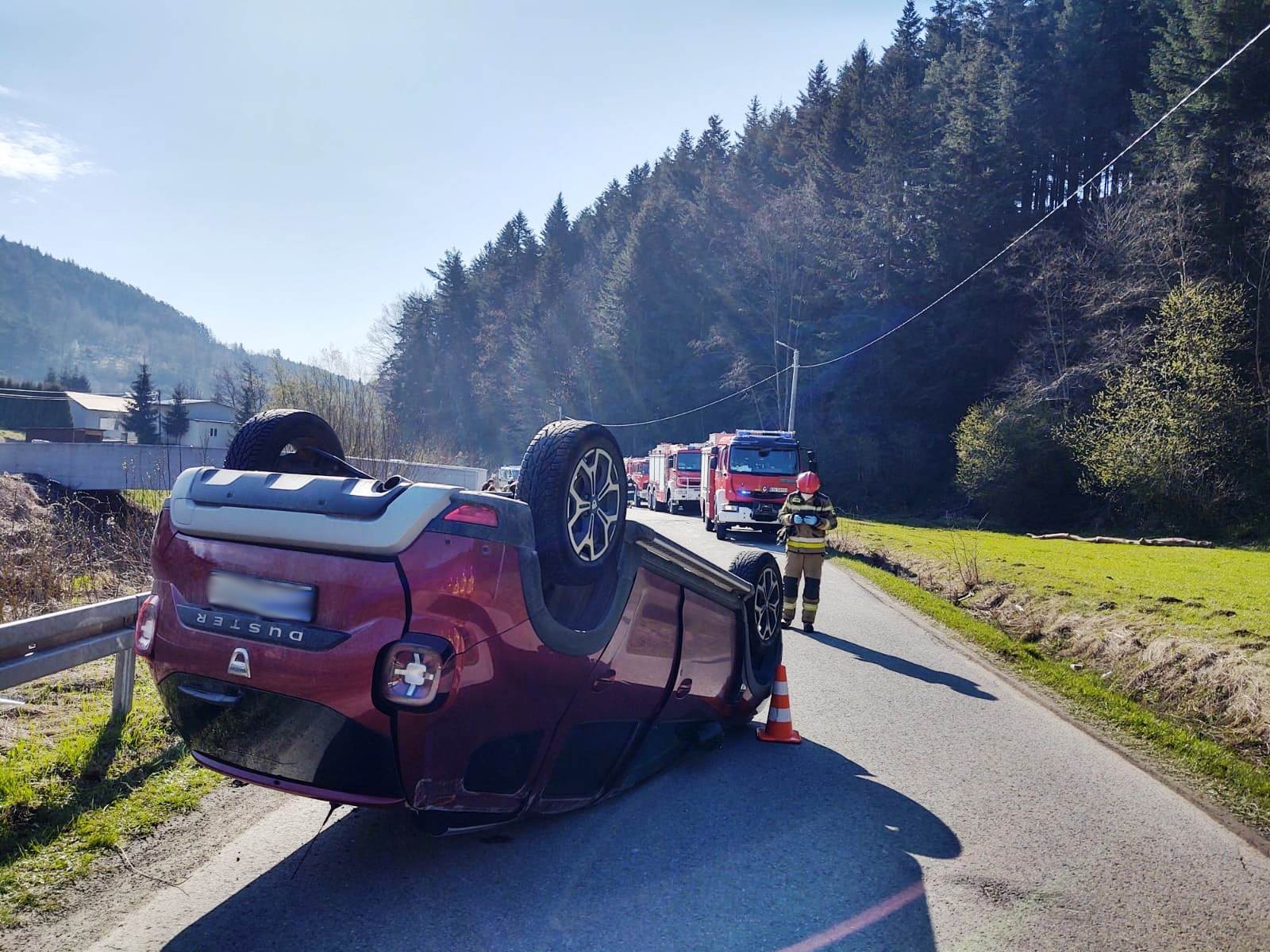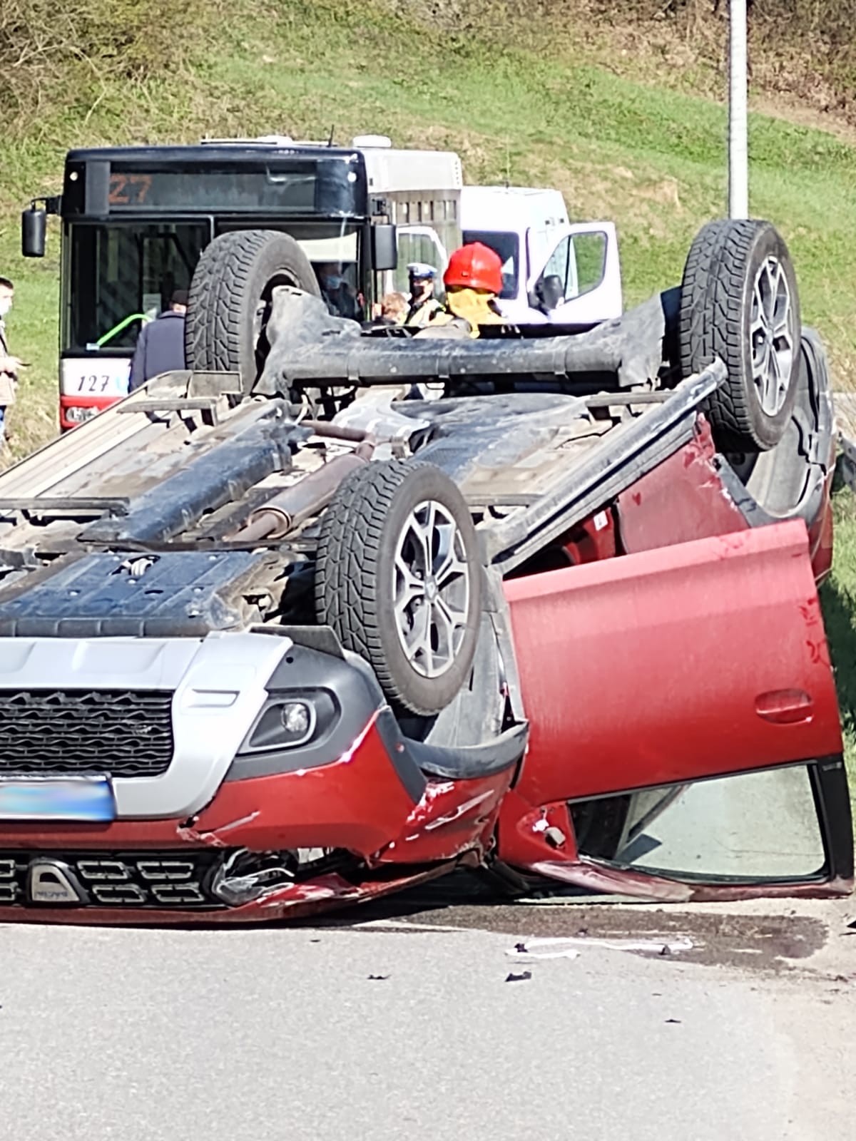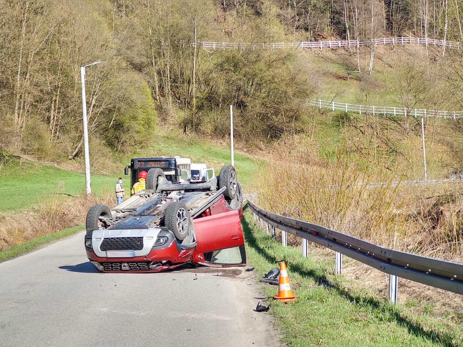26 kwietnia o godzinie 8.16 zastępy z JRG nr 1 w Nowym Sączu oraz OSP Paszyn zadysponowane zostały do działań w Piątkowej. Po przybyciu na miejsce zdarzenia ustalono, że na drodze gminnej doszło do zderzenia dwóch samochodów osobowych marki Audi A4 oraz Dacia Duster, która znajdowała się na dachu. Samochodami podróżowało łącznie trzy osoby, które opuściły pojazdy o własnych siłach. Jedna osoba uskarżała się na dolegliwości. Z Dacii nastąpił wyciek płynów eksploatacyjnych. Jezdnia była częściowo zablokowana przez uszkodzonego Dustera. Audi znajdowało się poza drogą. Działania Straży Pożarnej polegały na zabezpieczeniu miejsca zdarzenia oraz udzieleniu kwalifikowanej pierwszej pomocy osobie poszkodowanej. Osobę poszkodowaną przekazano przybyłej na miejsce załodze karetki Pogotowia Ratunkowego. Rozłączono akumulatory w uszkodzonych pojazdach. Dokonano sorpcji rozlanych płynów eksploatacyjnych. Usunięto pozostałości po kolizji na pobocze drogi. Kierowano ruchem drogowym w miejscu zdarzenia. Osoba poszkodowana została zabrana do szpitala. Działania strażaków trwały niespełna godzinę. Na miejscu zdarzenia pozostała Policja, która prowadziła czynności dochodzeniowe.