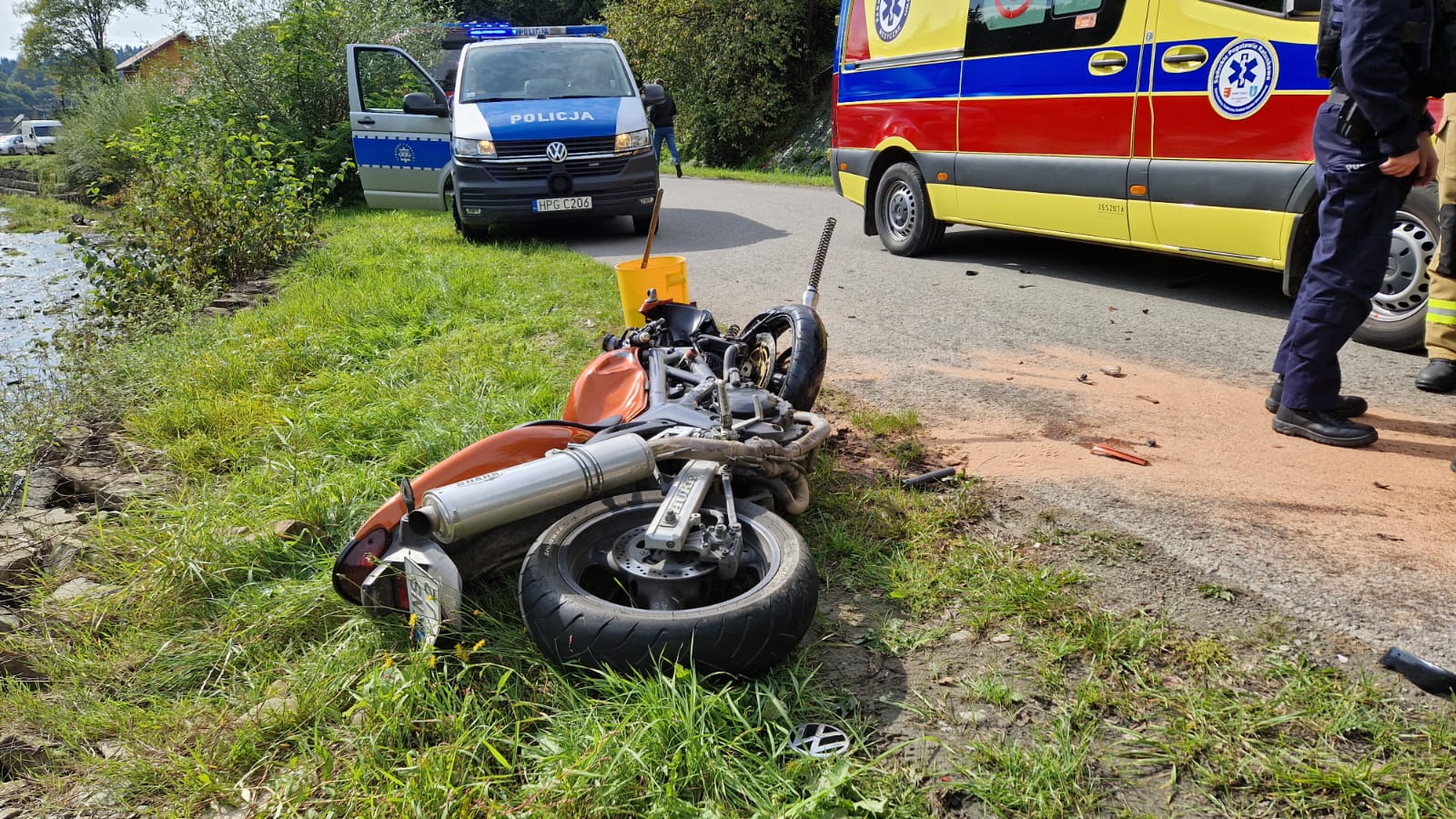25 września o godzinie 11.46 zastęp z JRG nr 1 w Nowym Sączu zadysponowany został do działań w Piątkowej. Po przybyciu na miejsce zdarzenia ustalono, że doszło do zderzenia dwóch pojazdów tj. samochodu osobowego VW Passat oraz motocykla Suzuki. VW podróżowały dwie osoby, natomiast motocyklem sam kierujący. Podróżujący samochodem osobowym opuścili pojazd o własnych siłach i nie uskarżali się na żadne dolegliwości. Podróżujący motocyklem został poszkodowany i znajdował się pod opieką ratowników medycznych pogotowia. Z pojazdów nastąpił wyciek płynów eksploatacyjnych. Jezdnia była zablokowana przez uszkodzone pojazdy. Działania zastępu Straży Pożarnej polegały na zabezpieczeniu miejsca zdarzenia, udzieleniu pomocy ratownikom medycznym w transporcie poszkodowanego motocyklisty do karetki pogotowia. Dokonano sorpcji rozlanych płynów eksploatacyjnych. Na prośbę policji zamknięto drogę na czas prowadzonych czynności przy pomocy taśmy ostrzegawczej. Na miejscu zdarzenia pozostała Policja w celu wyjaśnienia przyczyn i okoliczności zdarzenia. Poszkodowany motocyklista został zabrany do szpitala w celu wykonania dalszych badań.