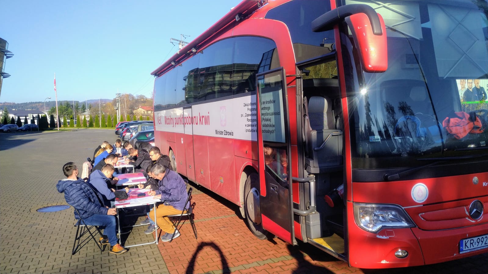 Piękna słoneczna pogoda i moc krwiodawców oddających krew w Państwowej Straży Pożarnej w Krynicy Zdroju – zebrano 35,550 litra krwi