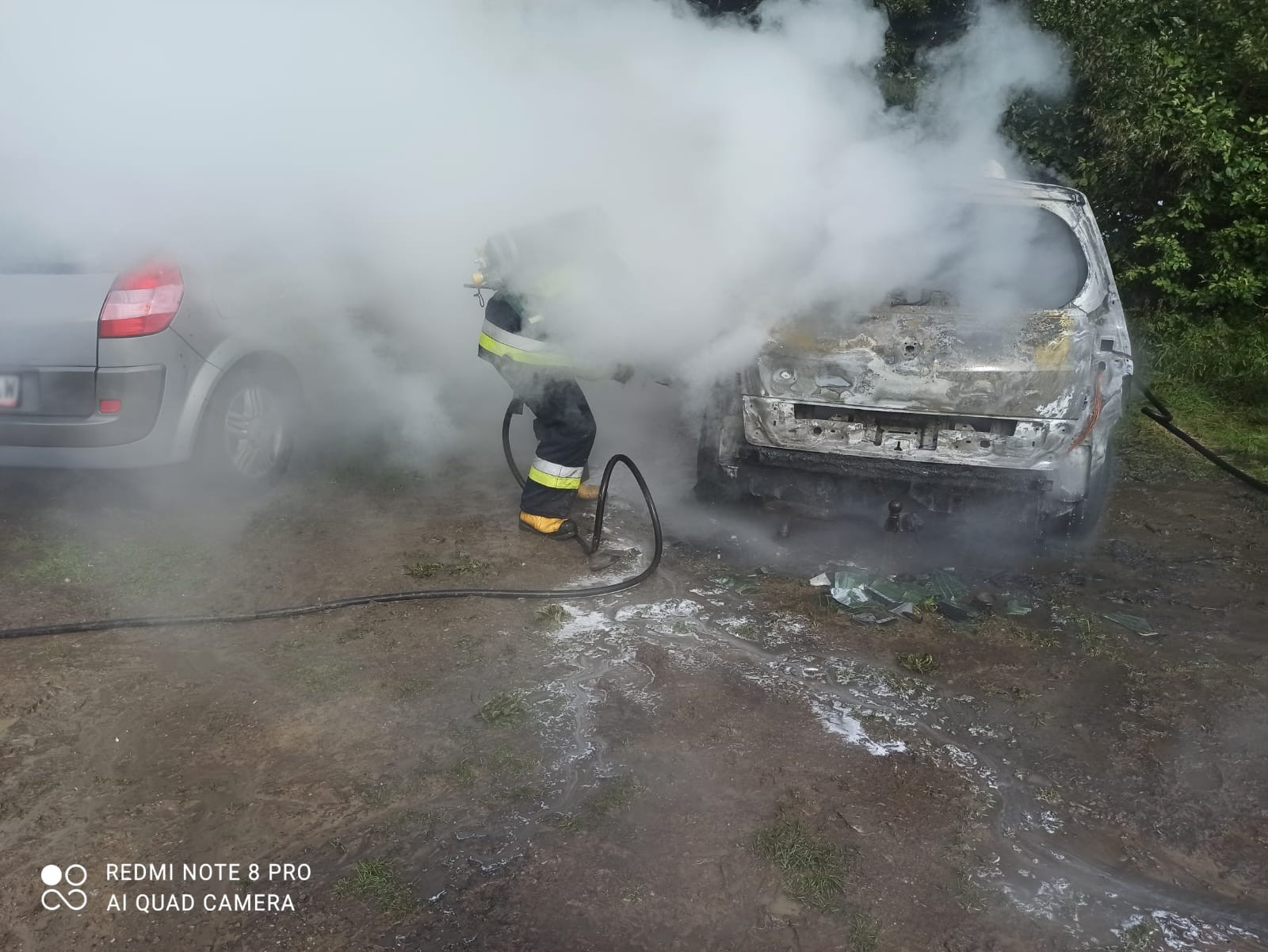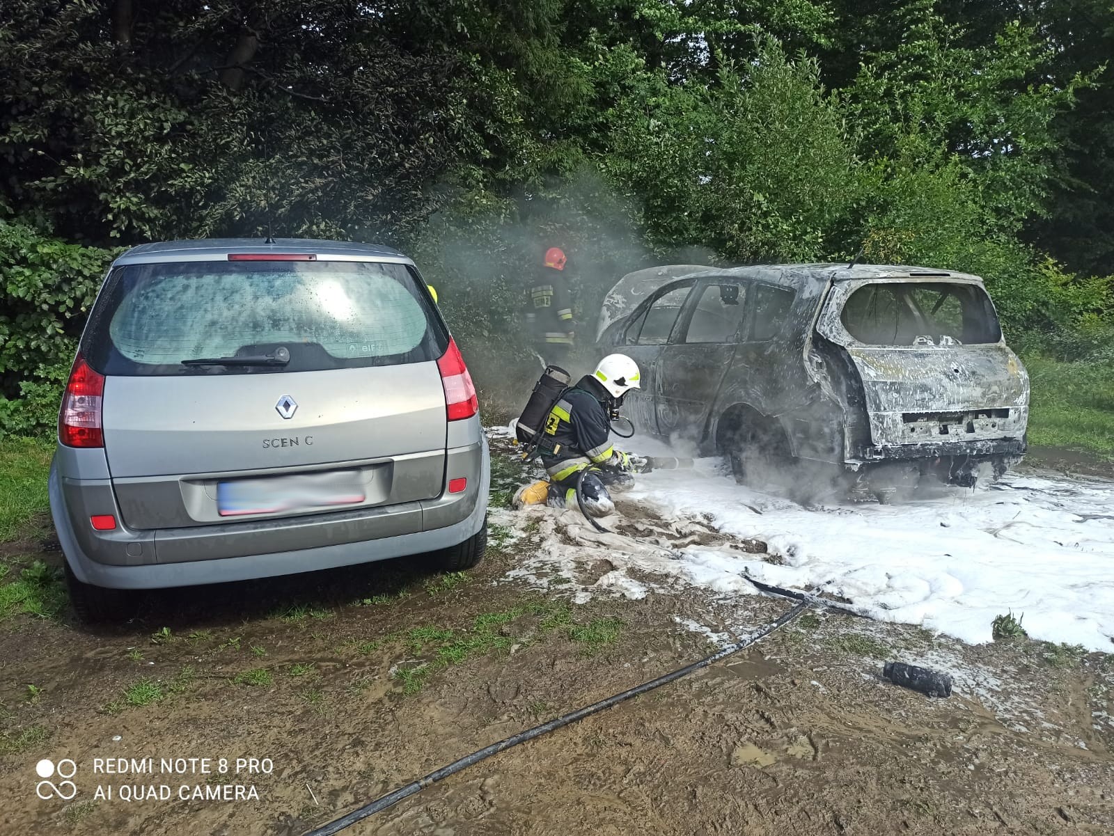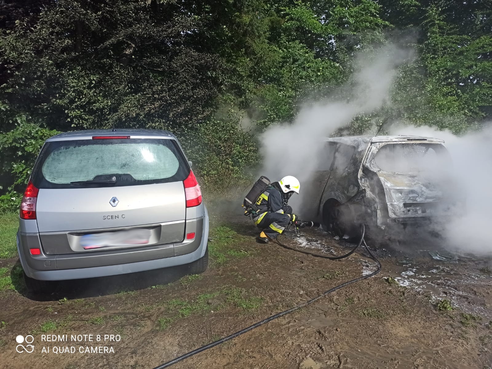 6 sierpnia około godziny 15.26 zastępy z JRG nr 2 w Nowym Sączu, OSP Piwniczna oraz OSP Kosarzyska zadysponowane zostały do działań w Piwnicznej Zdroju. Po przybyciu na miejsce zdarzenia ustalono, że na parkingu leśnym, pożarem objęty był w całości samochód osobowy Renault Scenic a stojący obok drugi Renault Scenic miał stopione elementy plastikowe karoserii. Działania strażaków polegały na zabezpieczeniu terenu działań, podaniu jednego prądu wody na palący się pojazd oraz drugiego w obronie na sąsiednie auto. Następnie przy pomocy ciągnika leśnego odciągnięto spalony pojazd od sąsiedniego auta oraz podano prąd piany celem całkowitego dogaszenia. Po zakończeniu działań pojazdy przekazano Policji celem zabezpieczenia ich do czasu przybycia właścicieli. Działania strażaków trwały prawie dwie godziny. Przyczyna pożaru jest nieustalona.