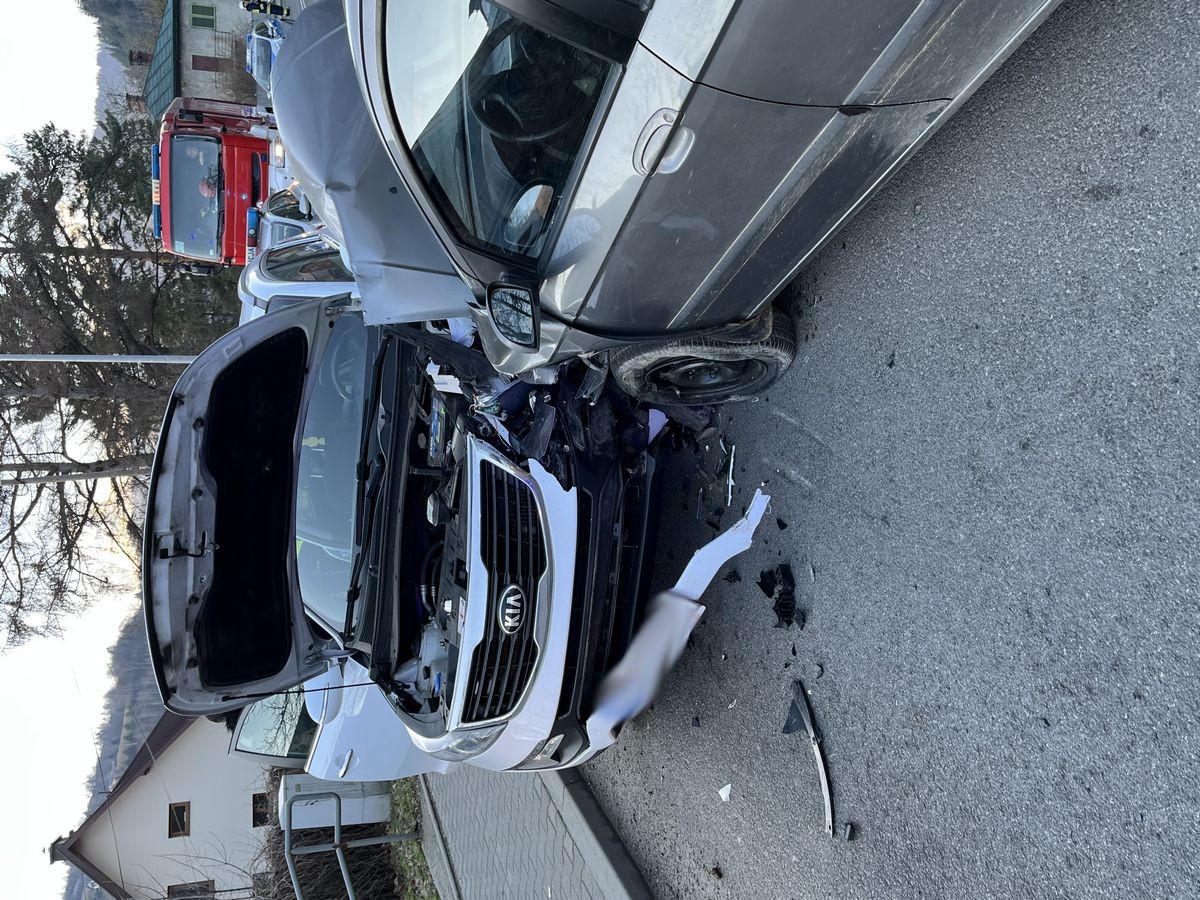 Piwniczna - Zdrój, ul. Krynicka - zderzenie dwóch samochodów osobowych