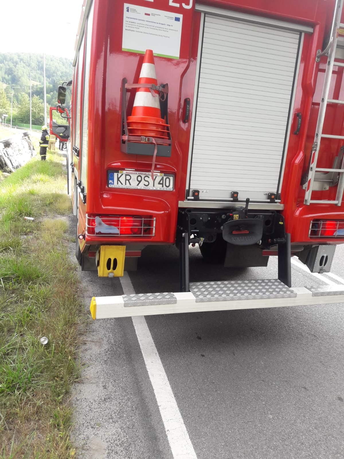 Piwniczna - Zdrój, ul. Zagrody - dachowanie samochodu osobowego