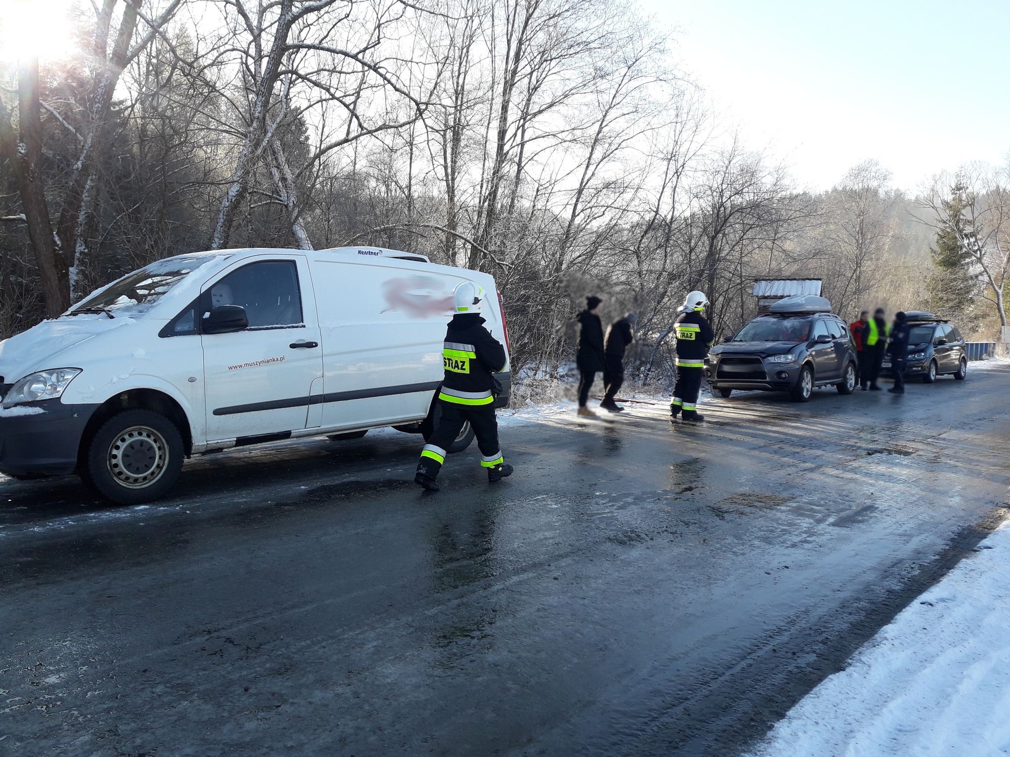 6 i 7 stycznia strażacy usuwali skutków zdarzeń drogowych. 6 stycznia o godzinie 14.44 strażacy prowadzili działania w Kosarzyskach. Tam samochód osobowy Volkswagen wypadł z jezdni ocierając się o samochód Mercedes następnie uderzył w koparko ładowarkę, które były zaparkowane na poboczu. Pomocy kierowcy udzielili ratownicy Pogotowia Ratunkowego. 7 stycznia o godzinie 1.19 prowadzono działania we Florynce gdzie doszło do dachowania samochodu osobowego Fiat. Samochodem podróżowały dwie osoby, które nie uskarżały się na żadne dolegliwości. Samochód znajdował się poza obrysem jezdni. 7 stycznia o godzinie 9.21 strażacy prowadzili działania w Tyliczu na ulicy Wolności gdzie doszło do zderzenia trzech samochodów osobowych. Samochodami podróżowało łącznie 11 osób w tym 6 osób dorosłych oraz 5 dzieci. Uczestnicy zdarzenia nie uskarżali się na żadne dolegliwości. Z jednego z pojazdów nastąpił niewielki wyciek płynów eksploatacyjnych. Samochody blokowały jeden pas jezdni. Droga była oblodzona. Strażacy we wszystkich przypadkach zabezpieczali miejsca zdarzenia oraz podjęli działania mające na celu usunięcie skutków zdarzeń drogowych.