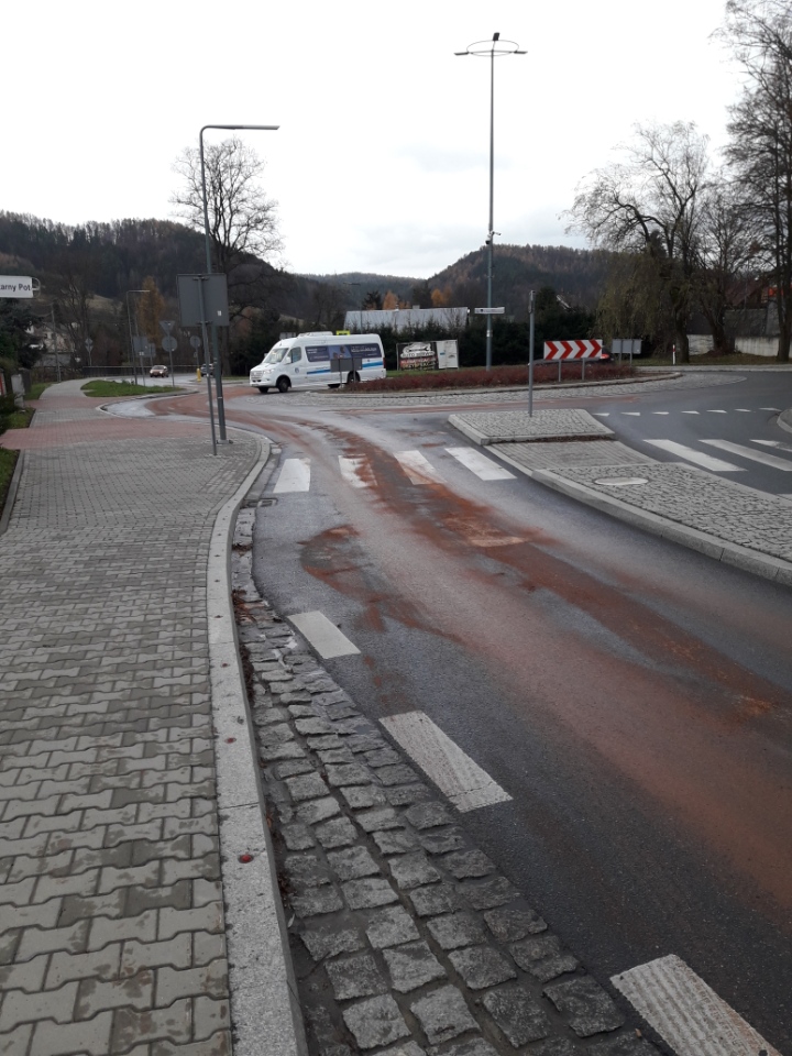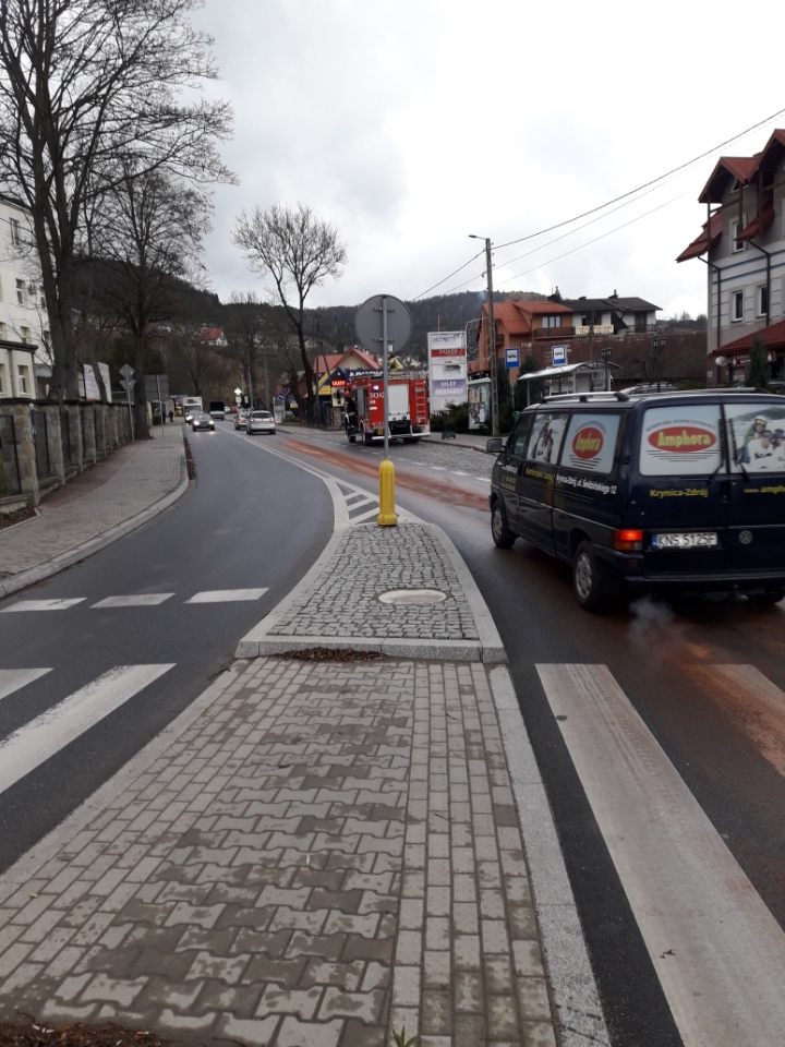 Strażacy nie wyjeżdżali do takich zdarzeń. Podczas służby w dniu 19/20 listopada odnotowano aż 5 wyjazdów do tego typu zdarzeń tj. w Mystkowie, Łącku, Brzeznej, Muszynie oraz Kamiannej. 20 listopada około godziny 8.29 zastępy z JRG w Krynicy Zdroju zadysponowane zostały do działań w Krynicy na ulicy Kraszewskiego. Po przybyciu na miejsce zdarzenia ustalono, że na drodze wojewódzkiej oraz drogach gminnych znajdowała się plama substancji ropopochodnej, najprawdopodobniej oleju napędowego. Plama była na długości około 2 km i szerokości około 1 m. Nie była ona ciągła, występowała okresowo, na zakrętach i w miejscach gdzie ze względu na warunki drogowe samochody poruszały się z niewielka prędkością. Działania strażaków polegały na zabezpieczeniu miejsca zdarzenia, kierowaniu ruchem drogowym wahadłowo, neutralizacji przy użyciu dyspergentu oraz sorpcji przy użyciu sorbentu DAMSORB. Działania strażaków trwały prawie dwie godziny.