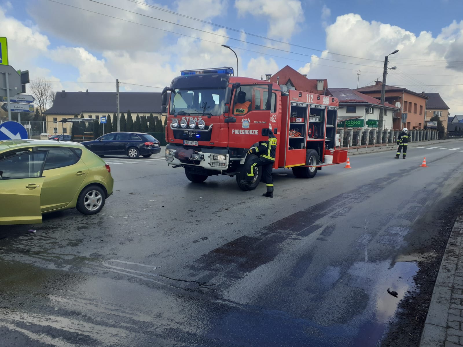 6 marca o godzinie 11.13 zastępy z JRG nr 2 w Nowym Sączu orz OSP Podegrodzie zadysponowane zostały do działań w Podegrodziu. Po przybyciu na miejsce zdarzenia ustalono, że doszło do zderzenia samochodów VW Transporter i Seat Ibiza. Obydwa uszkodzone pojazdy zatrzymały się na środku jezdni blokując ruch w obu kierunkach. W chwili przybycia Straży Pożarnej trzy osoby podróżujące pojazdami opuściły pojazdy i znajdowały się na zewnątrz. Działania Straży Pożarnej polegały na zabezpieczeniu miejsca zdarzenia oraz udzieleniu kwalifikowanej pierwszej pomocy dwóm osobom zgłaszającym dolegliwości z samochodu osobowego. Następnie odłączono akumulatory w obu pojazdach oraz sprawdzono czy nie doszło do wycieku płynów eksploatacyjnych. Kontrola wykazała wyciek płynu eksploatacyjnego z uszkodzonych pojazdów, który zasypano sorbentem. Załoga karetki Pogotowia przejęła osoby poszkodowane. Po przeprowadzonych badaniach wszyscy uczestnicy zdarzenia pozostali na miejscu zdarzenia. Po zakończonych przez Policję czynnościach wyjaśniających pojazdy usunięto z jezdni, a rozbite plastikowe elementy pojazdów zebrano z jezdni przy pomocy mioteł i łopat. W miejscu prowadzonych działań kierowano ruchem drogowym. Działania strażaków trwały ponad godzinę.