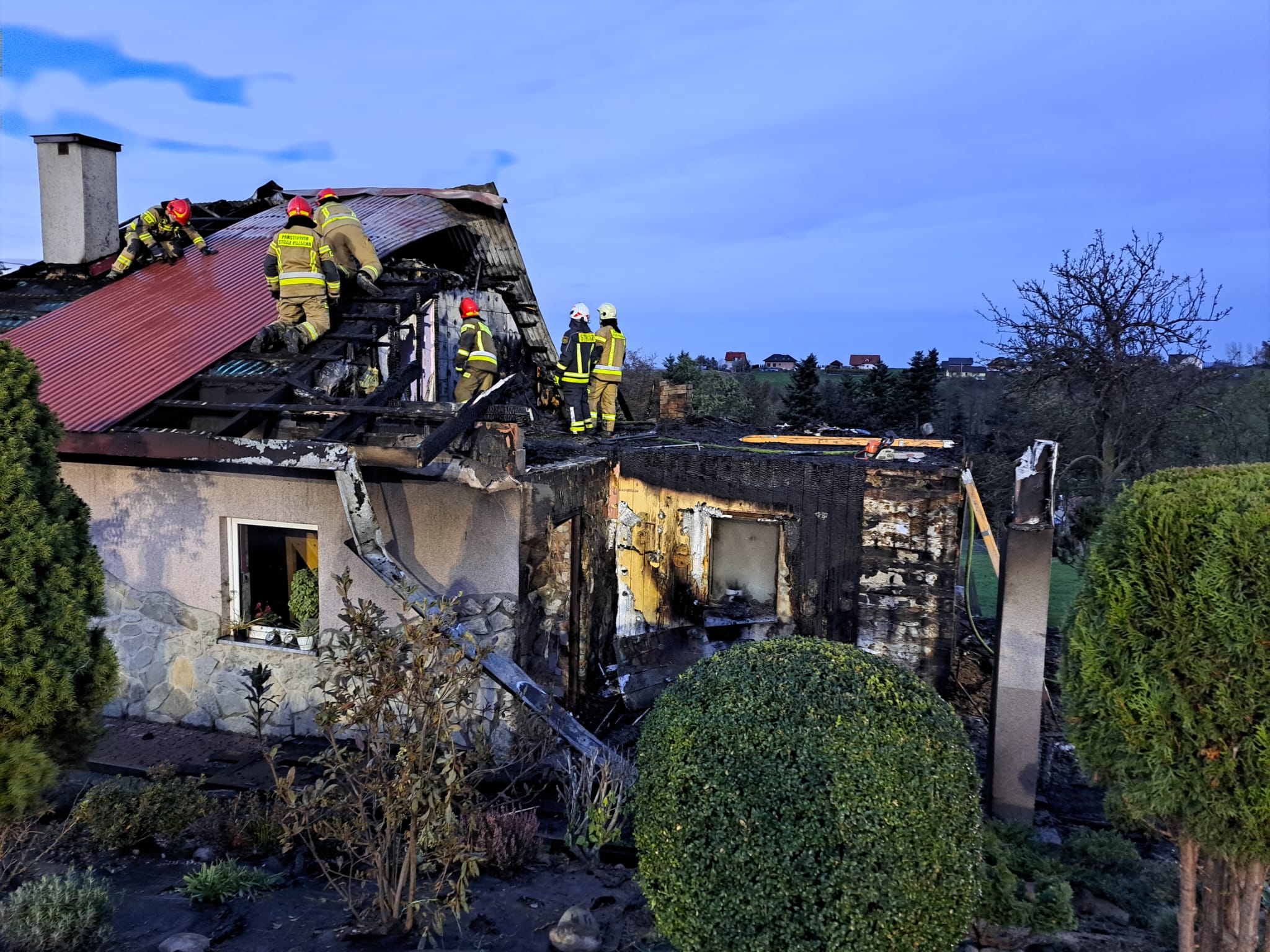 Popowice - pożar budynku mieszkalnego