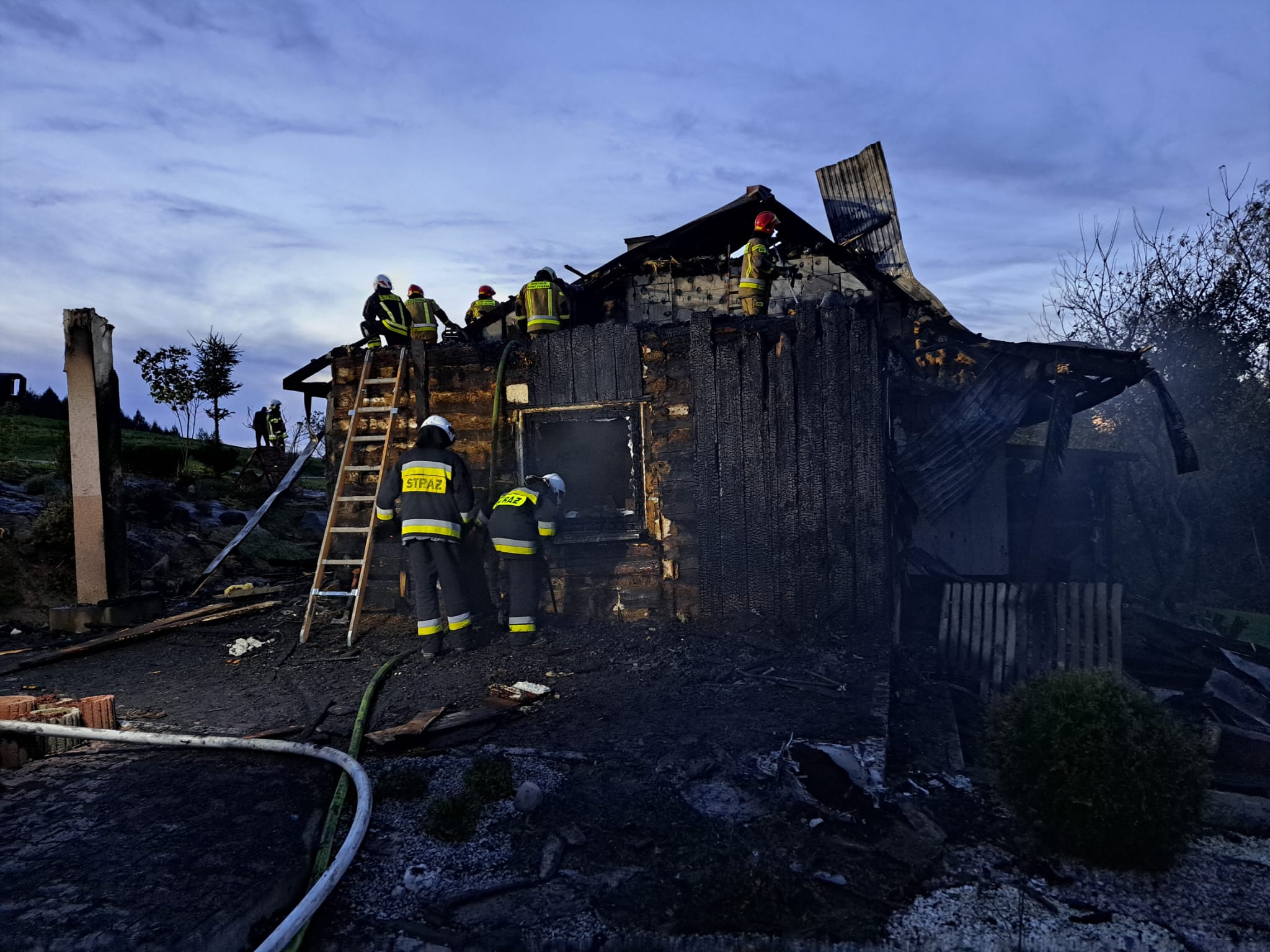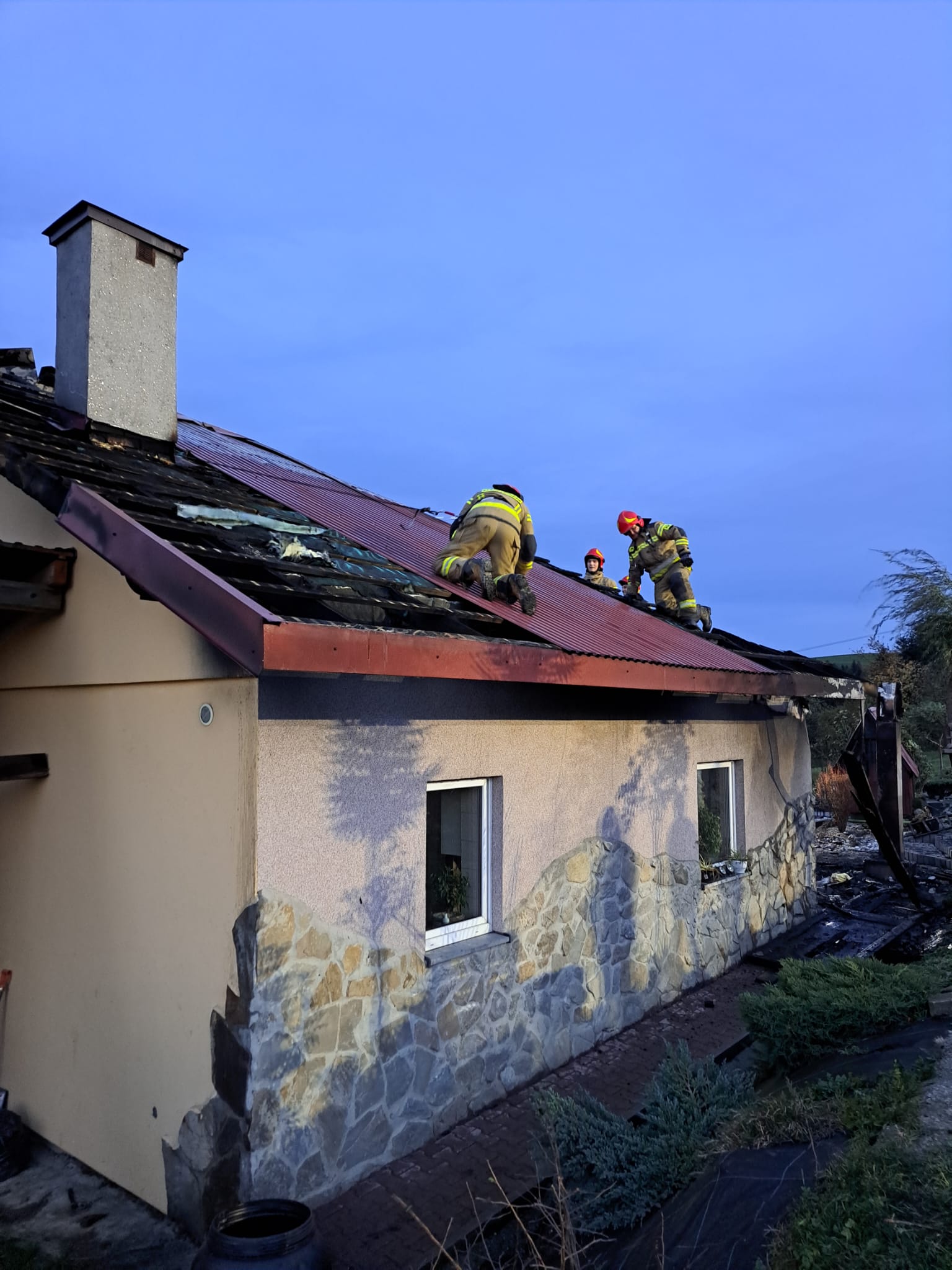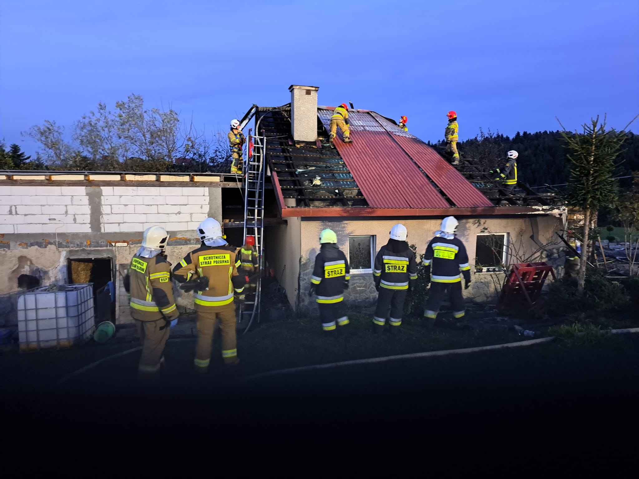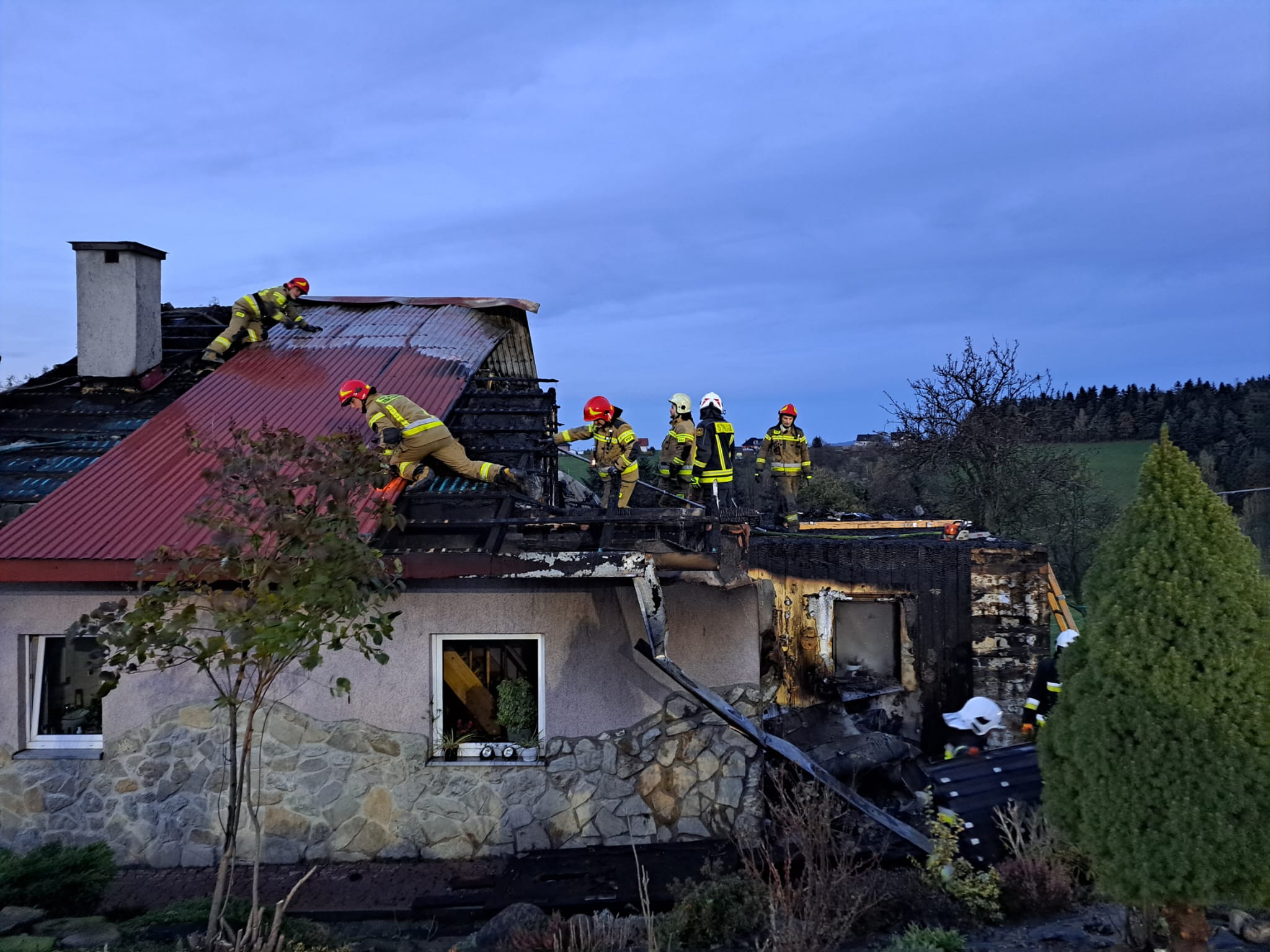 29 października o godzinie 15.19 zastępy z JRG nr 1 i 2 w Nowym Sączu, OSP Stary Sącz, OSP Barcice, OSP Moszczenica Niżna oraz OSP Gołkowice Górne zadysponowane zostały do działań w Popowicach. Po przybyciu na miejsce zdarzenia ustalono, że palił się drewniany budynek mieszkalny z przylegającym pomieszczeniem gospodarczym. Mieszkańcy opuścili obiekt przed przyjazdem strażaków. W budynku znajdowały się dwie 11 kg butle gazowe. Działania strażaków polegały na zabezpieczeniu miejsca zdarzenia oraz podaniu prądów wody na palące się poddasze. Zlokalizowano i wyniesiono butle z gazem. Po zlokalizowaniu pożaru wykonano prace rozbiórkowe i dogaszono pogorzelisko. Wodę do celów pożarowych dowożono pojazdami pożarniczymi z hydrantu oddalonego o około 4 km od miejsca pożaru. W trakcie działań jedna osoba uskarżała się na złe samopoczucie. Strażacy udzielili jej pomocy oraz zadysponowali na miejsce pożaru karetkę Pogotowia ratunkowego. Po przebadaniu osoby przez ratowników medycznych pozostała ona na miejscu zdarzenia. Pogorzelisko na bieżąco sprawdzano kamerą termowizyjną a pomieszczenia miernikami na obecność gazów niebezpiecznych. Nieprawidłowości nie stwierdzono. Działania strażaków trwały ponad trzy godziny.