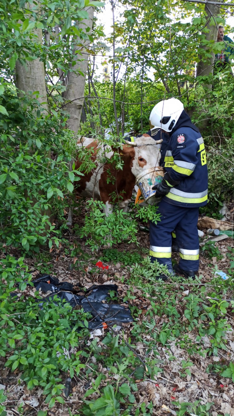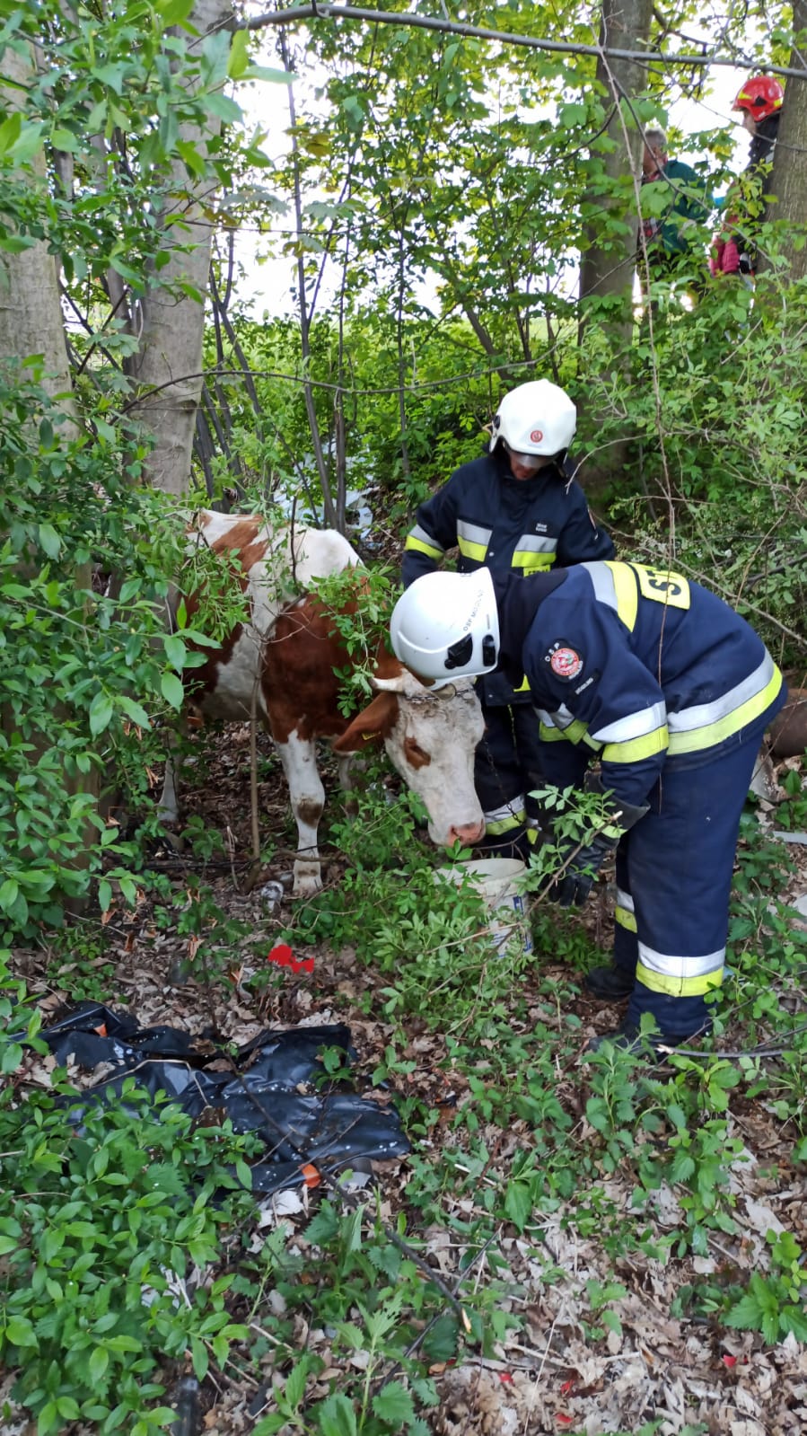 15 maja około godziny 18.44 zastępy z JRG nr 1 w Nowym Sączu oraz OSP Mogilno zadysponowane zostały do działań w Posadowej Mogilskiej. Po przybyciu na miejsce zdarzenia ustalono, że krowa po oddaleniu się z pastwiska weszła do potoku, gdzie utknęła zaplątana pomiędzy drzewa oraz stalowe linki, które leżały w dolinie. Przy zwierzęciu znajdował się właściciel. Krowa była w pozycji leżącej, nie reagowała na polecenia gospodarza i nie mogła się podnieść. Działania strażaków polegały na zabezpieczeniu miejsca zdarzenia oraz wycięciu metalowego druta, który uniemożliwiał wyciągniecie zwierzęcia. Ratownicy weszli w zagłębienie terenu w celu założenia węży pożarniczych wokół tułowia krowy. Podniesiono zwierzę na nogi a następnie wyprowadzono z doliny. Krowę została wyciągnięta na pastwisko i oddana pod opiekę gospodarza. Działania strażaków trwały godzinę.