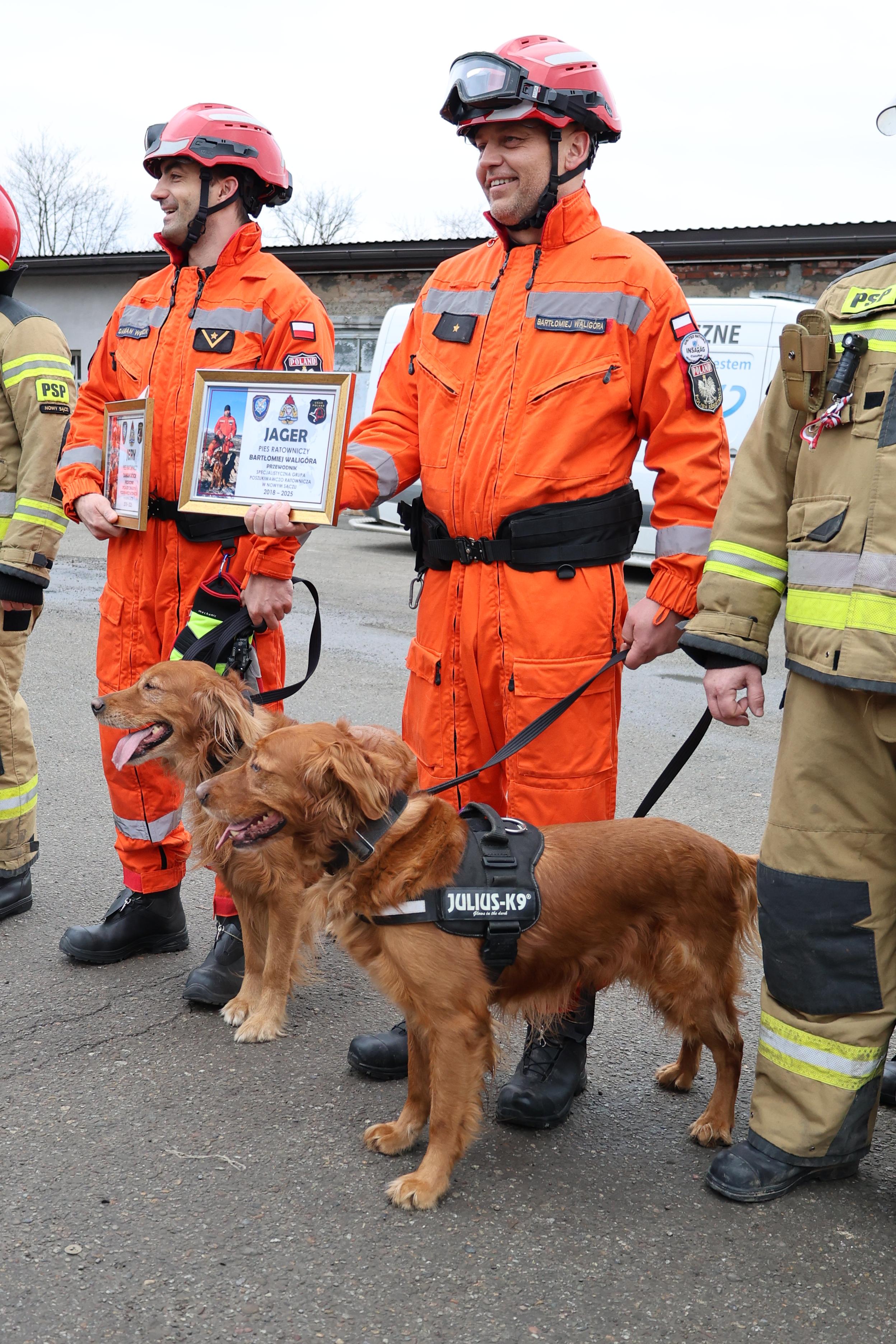 Nie sposób nie podkreślić roli, jaką w tej niezwykłej służbie odegrali ich przewodnicy – asp. Bartłomiej Waligóra i mł. asp. Damian Wójcik. To ich wiedza, doświadczenie, poświęcenie i codzienna praca sprawiły, że Jagger i Jerry osiągnęli mistrzowski poziom umiejętności i skuteczności. Dzięki ich pasji i zaangażowaniu te niezwykłe psy stały się wzorem dla przyszłych pokoleń czworonożnych ratowników.
