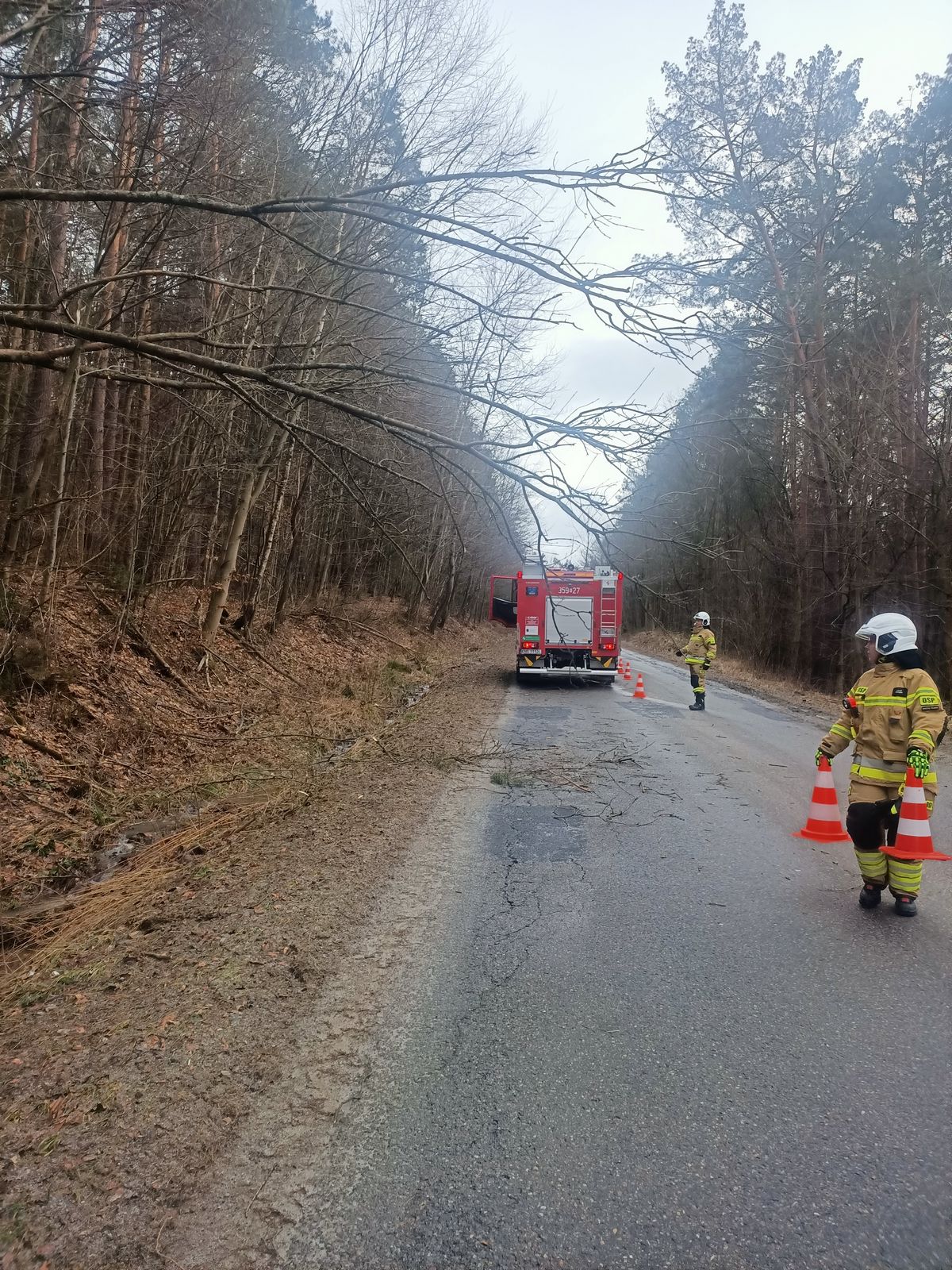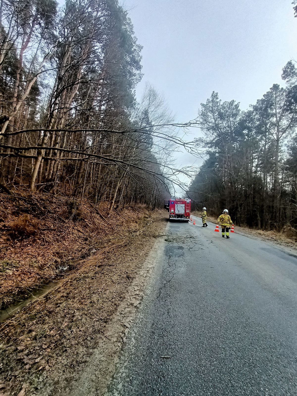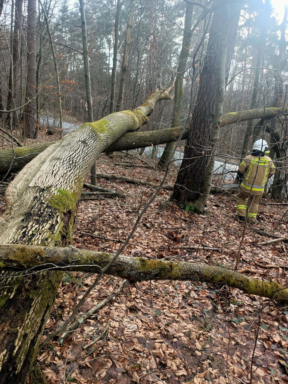 Leluchów – powalone drzewo na drogę,