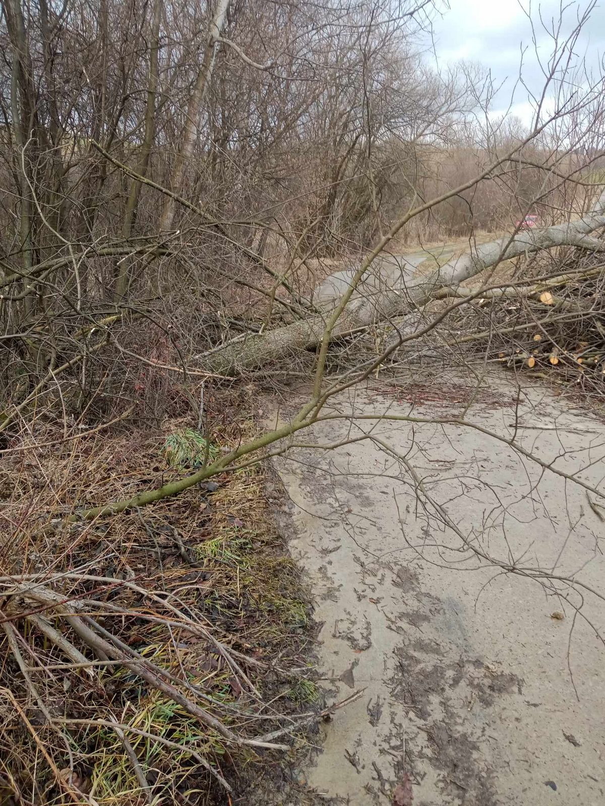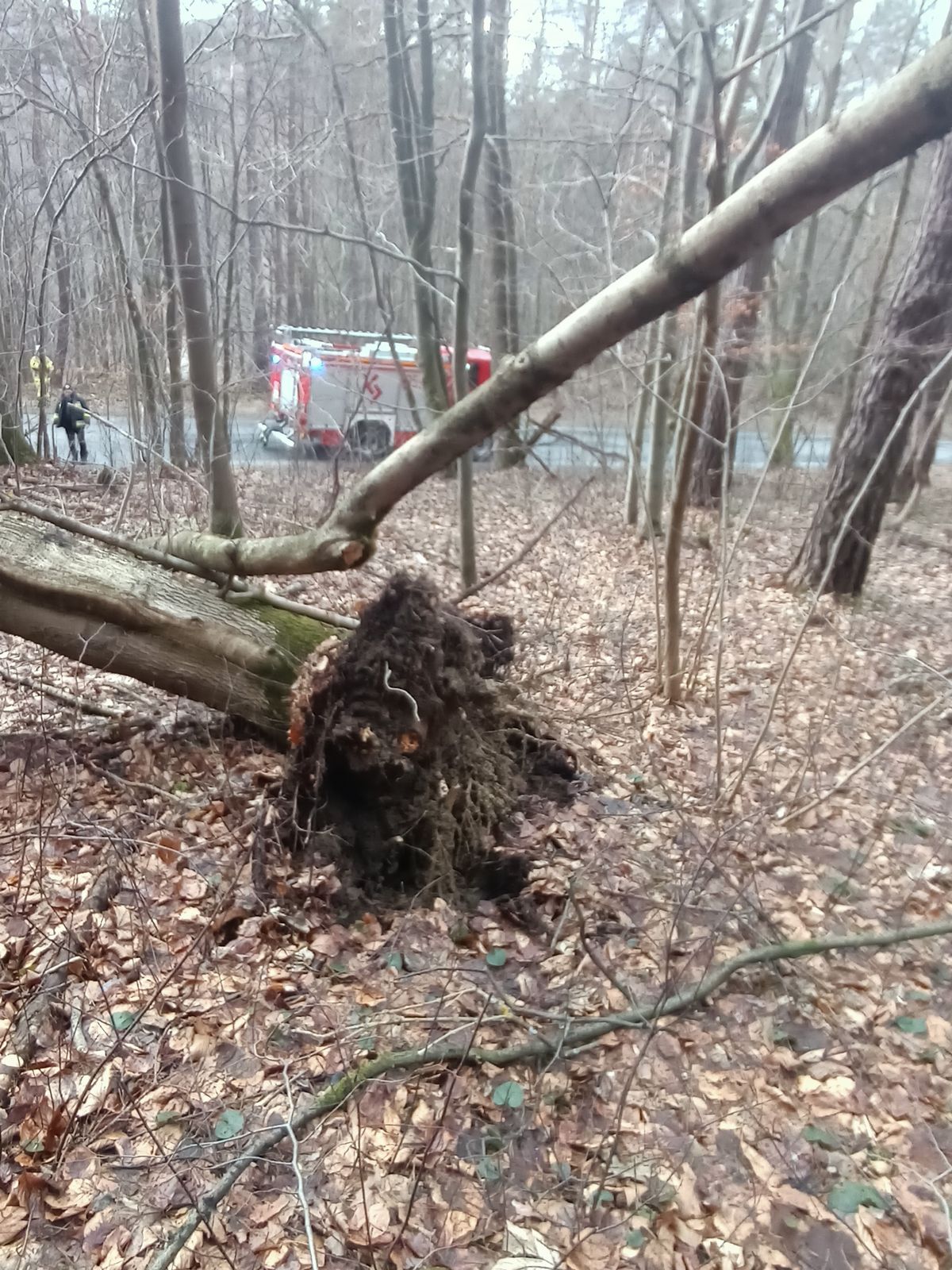 Korzenna – powalone drzewo na drogę,