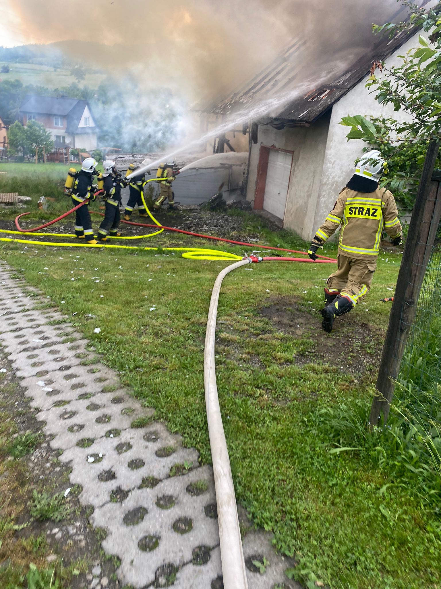 11 czerwca o godzinie 10.50 zastępy z JRG nr 1 w Nowym Sączu oraz zastępy z pobliskich jednostek OSP zadysponowane zostały do działań w Ptaszkowej. Po przybyciu na miejsce zdarzenia stwierdzono, że palił się budynek gospodarczy. W chwili przybycia na miejsce pierwszych zastępów straży pożar był rozwinięty i obejmował całą część gospodarczą budynku oraz konstrukcję dachu. Działania strażaków polegały na zabezpieczeniu miejsca zdarzenia i podaniu prądów wody w natarciu na płonący budynek. Zorganizowano zaopatrzenie wodne w systemie dowożenia w oparciu o płynący w pobliżu potok. Po lokalizacji pożaru wykonano prace rozbiórkowe. Działania prowadzone przez 10 zastępów i 59 strażaków trwały ponad trzy godziny. Przyczyna pożaru jest nieustalona.