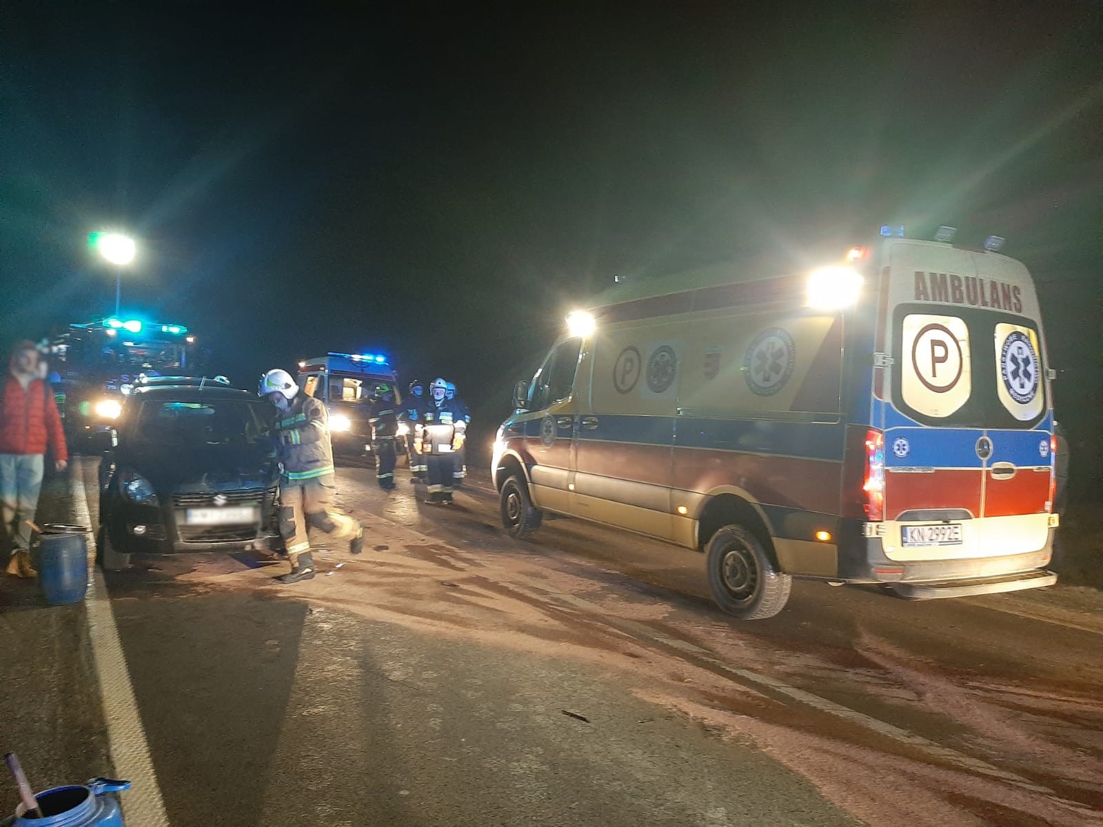 3 stycznia około godziny 17.07 zastępy z JRG nr 1 w Nowym Sączu, OSP Ptaszkowa oraz OSP Cieniawa zadysponowane zostały do działań w Ptaszkowej. Po przybyciu na miejsce zdarzenia ustalono, że doszło do zderzenia czterech samochodów osobowych tj. Mercedes, Audi, Suzuki i Seat. Pojazdami podróżowało łącznie 10 osób. Dwie osoby uskarżały się na dolegliwości. Droga krajowa była całkowicie zablokowana. Z pojazdów wydobywały się płyny eksploatacyjne. Działania strażaków polegały na zabezpieczeniu oraz oświetlenie miejsca zdarzenia. Udzielono kwalifikowanej pierwszej pomocy osobom poszkodowanym. Odłączono klemy akumulatora w pojazdach. Osoby poszkodowane przekazano przybyłym na miejsce załogom karetek Pogotowia Ratunkowego. Po przebadaniu dwie osoby zostały zabrane do szpitala. Po dokonaniu czynności dochodzeniowych przez Policje działania strażaków polegały na przemieszczeniu pojazdów Seat oraz Suzuki na pobliski parking. Dokonano sorpcji rozlanych płynów eksploatacyjnych z jezdni. Ze względu na małe uszkodzenia samochody Mercedes oraz Audi odjechały samodzielnie z miejsca zdarzenia. Działania strażaków trwały ponad godzinę.