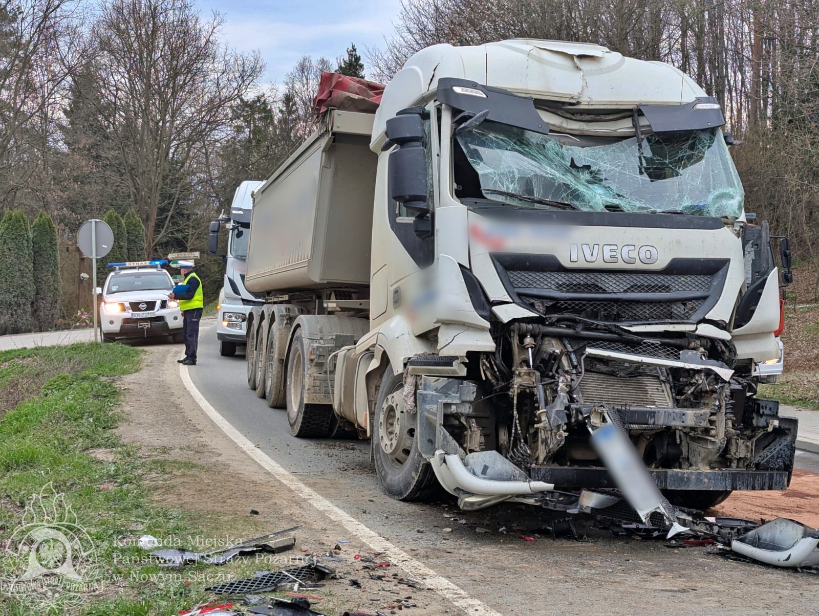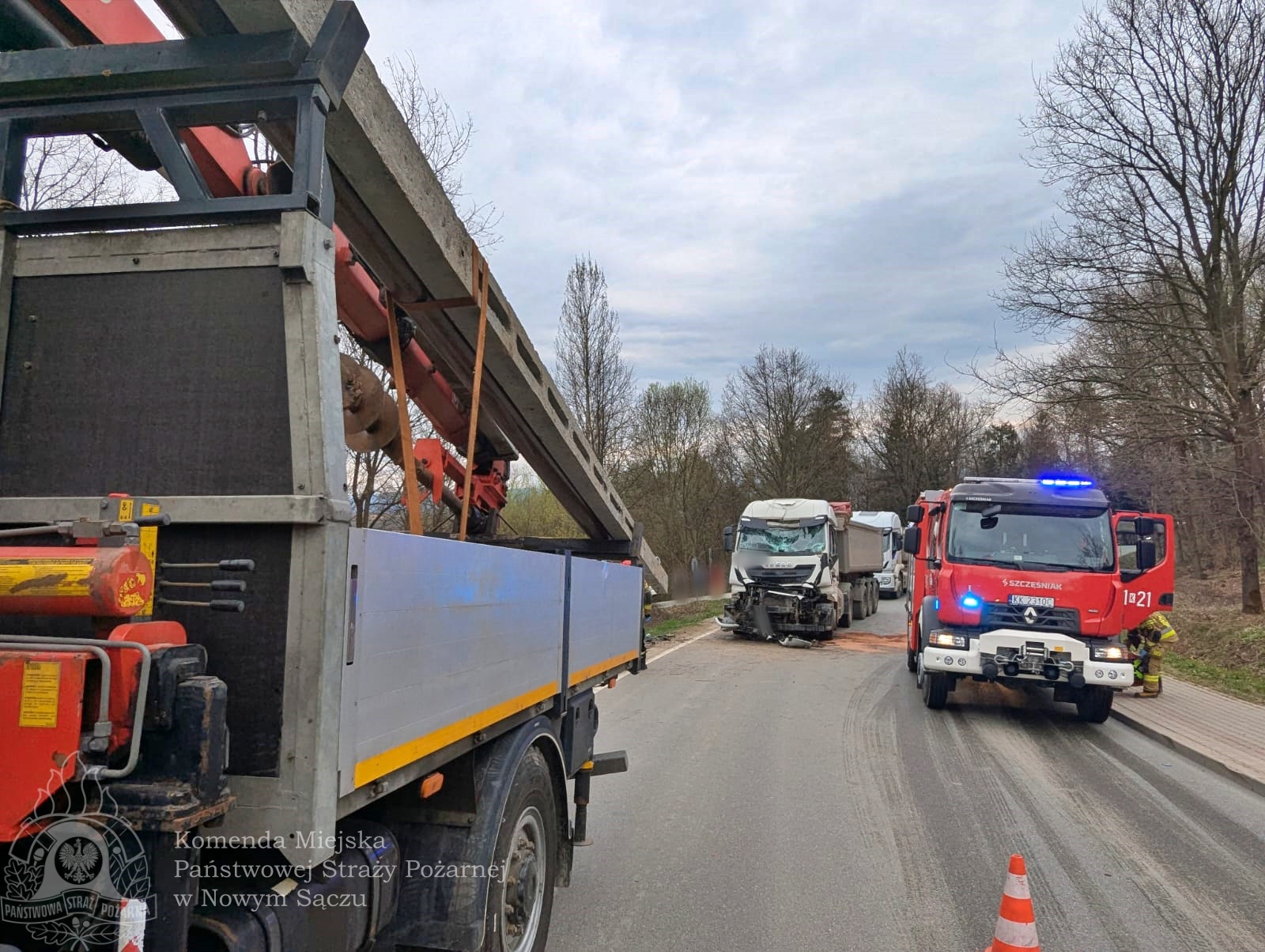 W dniu 14 kwietnia 2025 roku o godzinie 09:56 strażacy z Komendy Miejskiej PSP w Nowym Sączu zostali zadysponowani do zdarzenia drogowego na drodze powiatowej DP1551K w miejscowości Rdziostów. W zderzeniu brały udział dwa samochody ciężarowe – MAN oraz IVECO.
